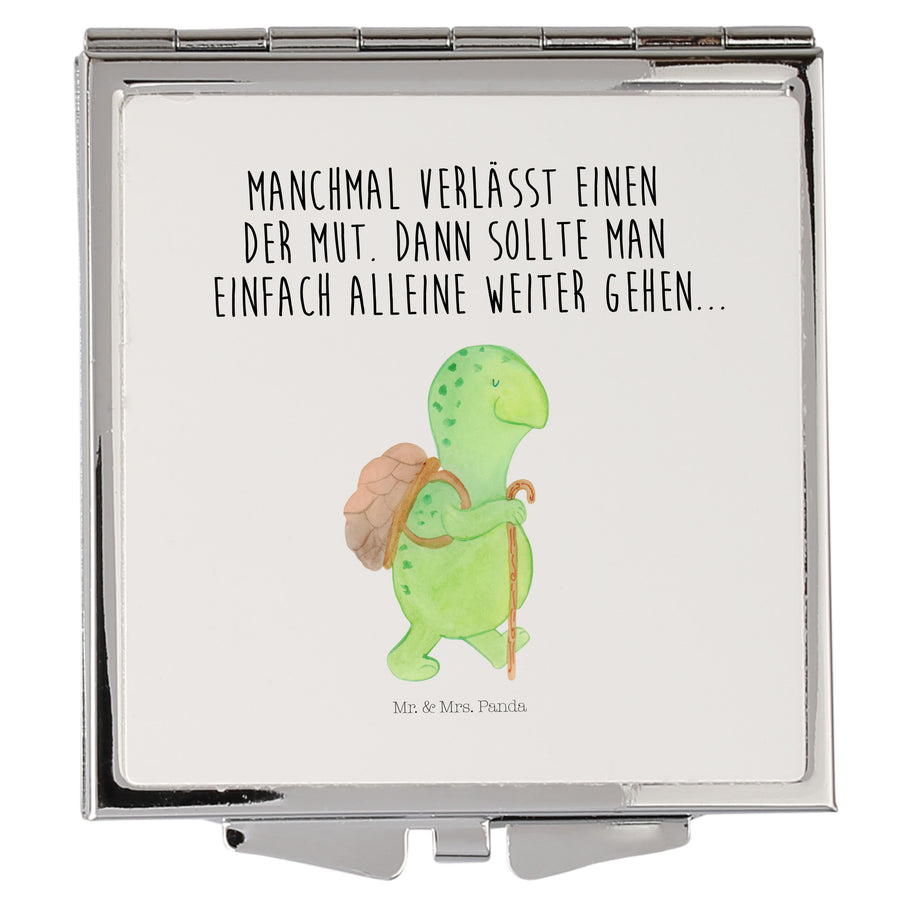 Handtaschenspiegel quadratisch Schildkröte Wanderer - mit Spruch - Weiß