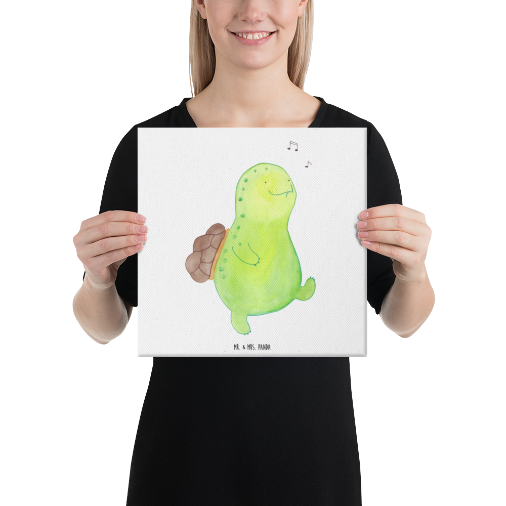 Leinwand Bild Schildkröte pfeift - 40 x 40 cm - mit Spruch