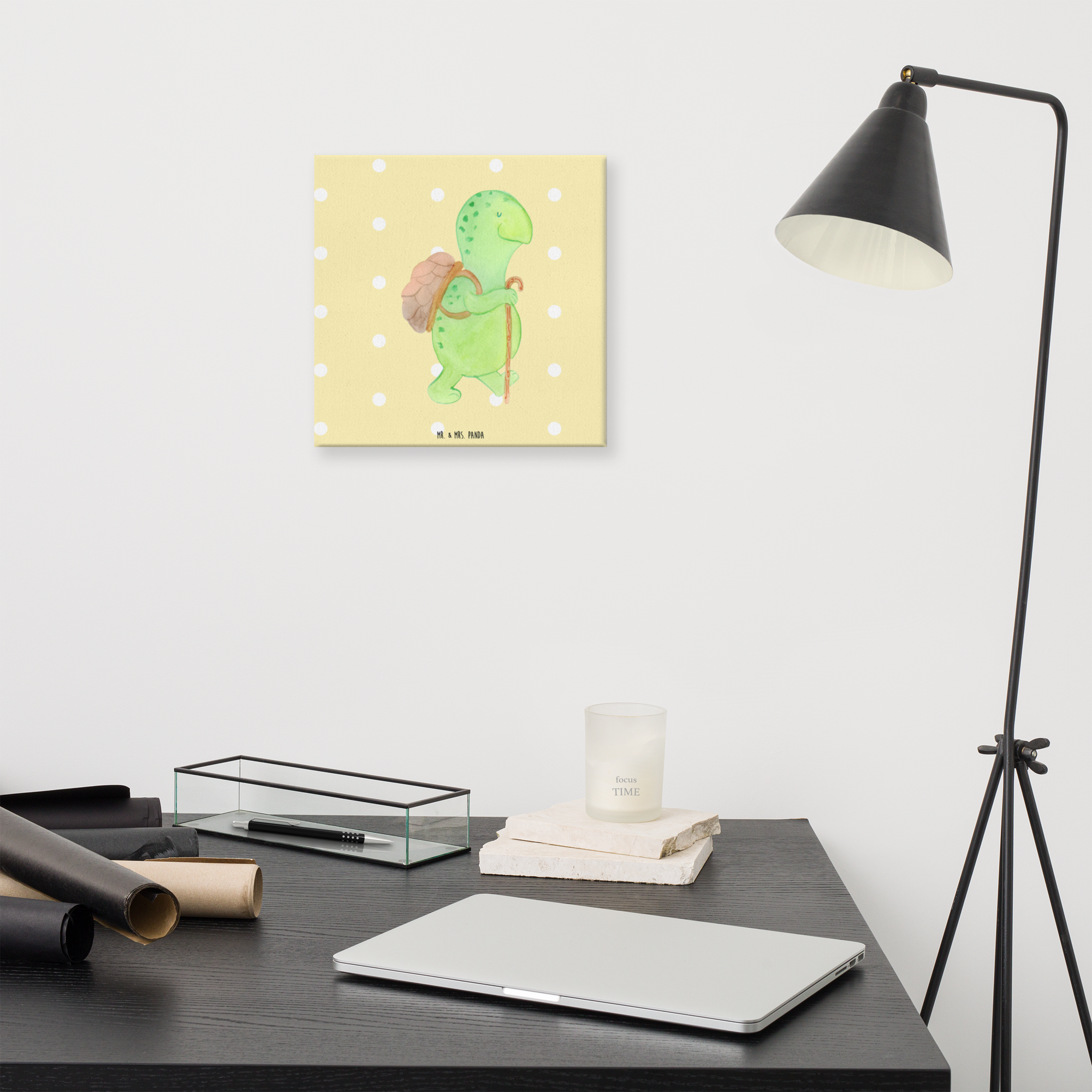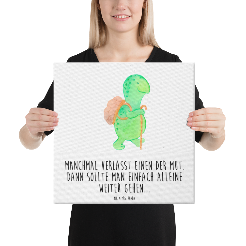Leinwand Bild Schildkröte Wanderer - 40 x 40 cm - mit Spruch