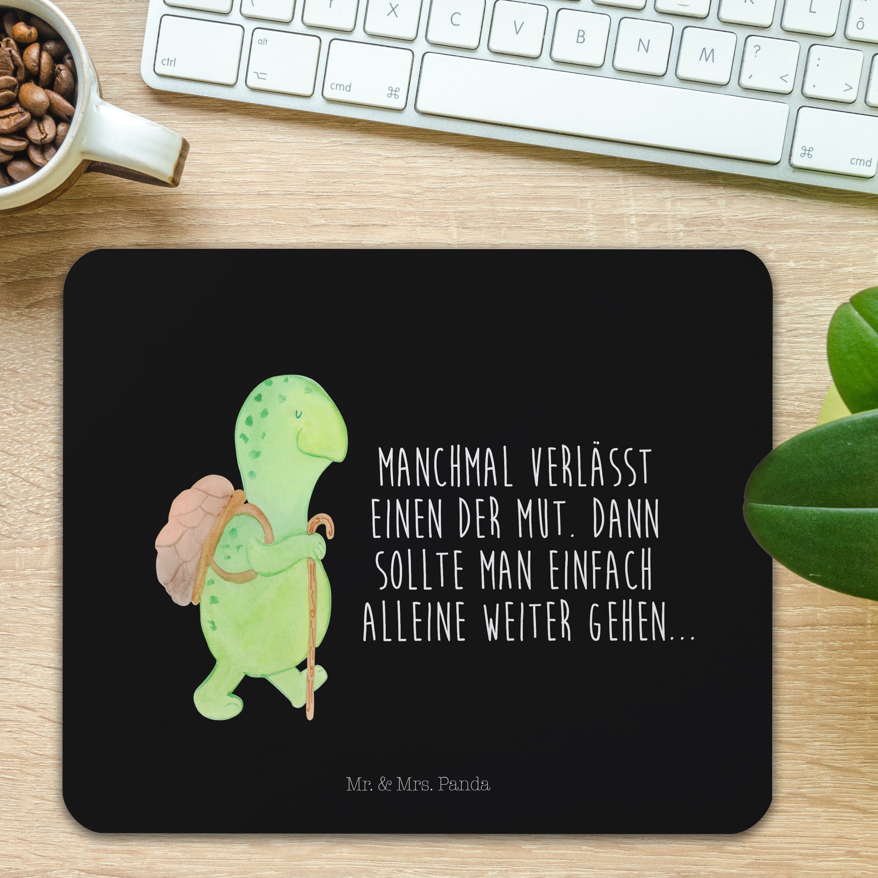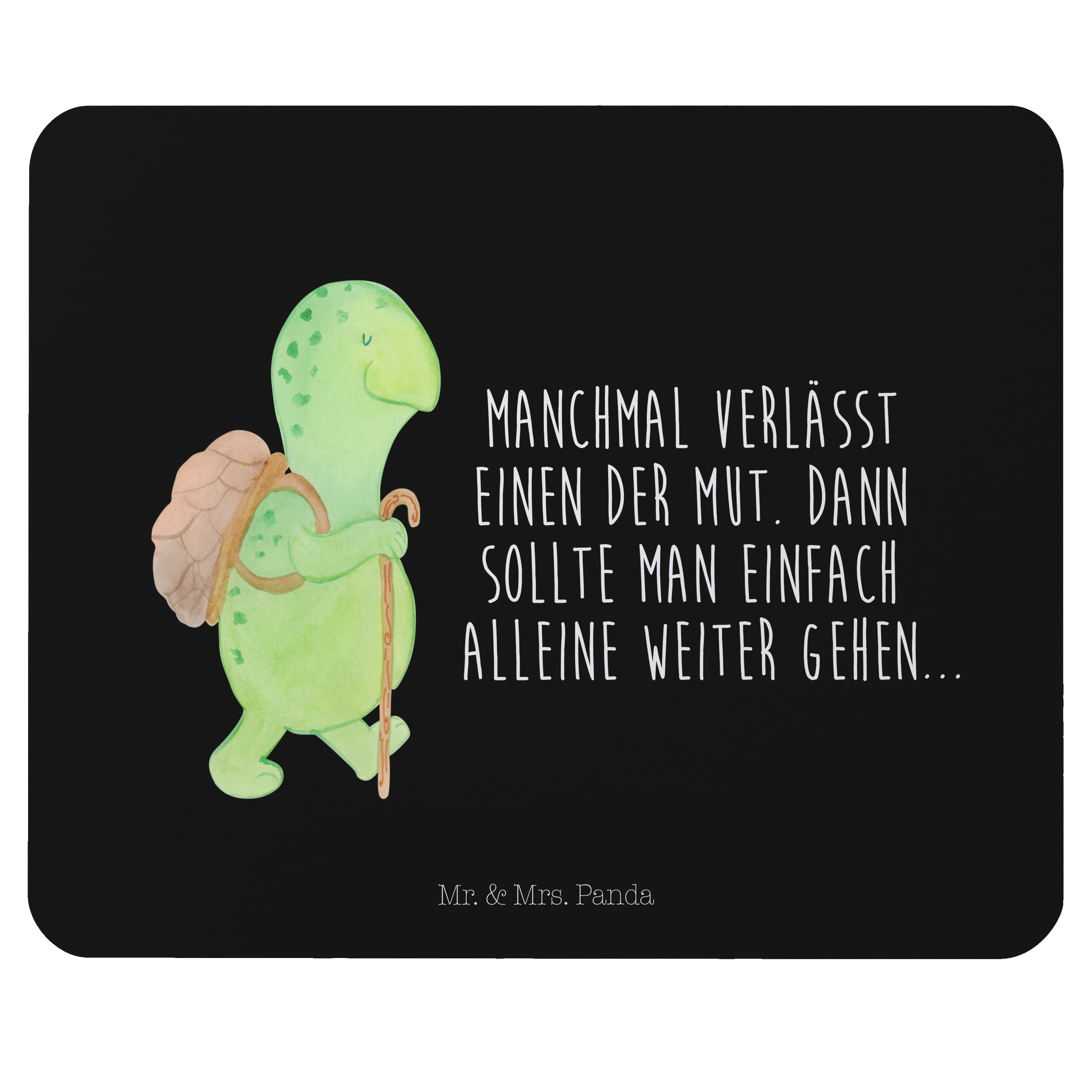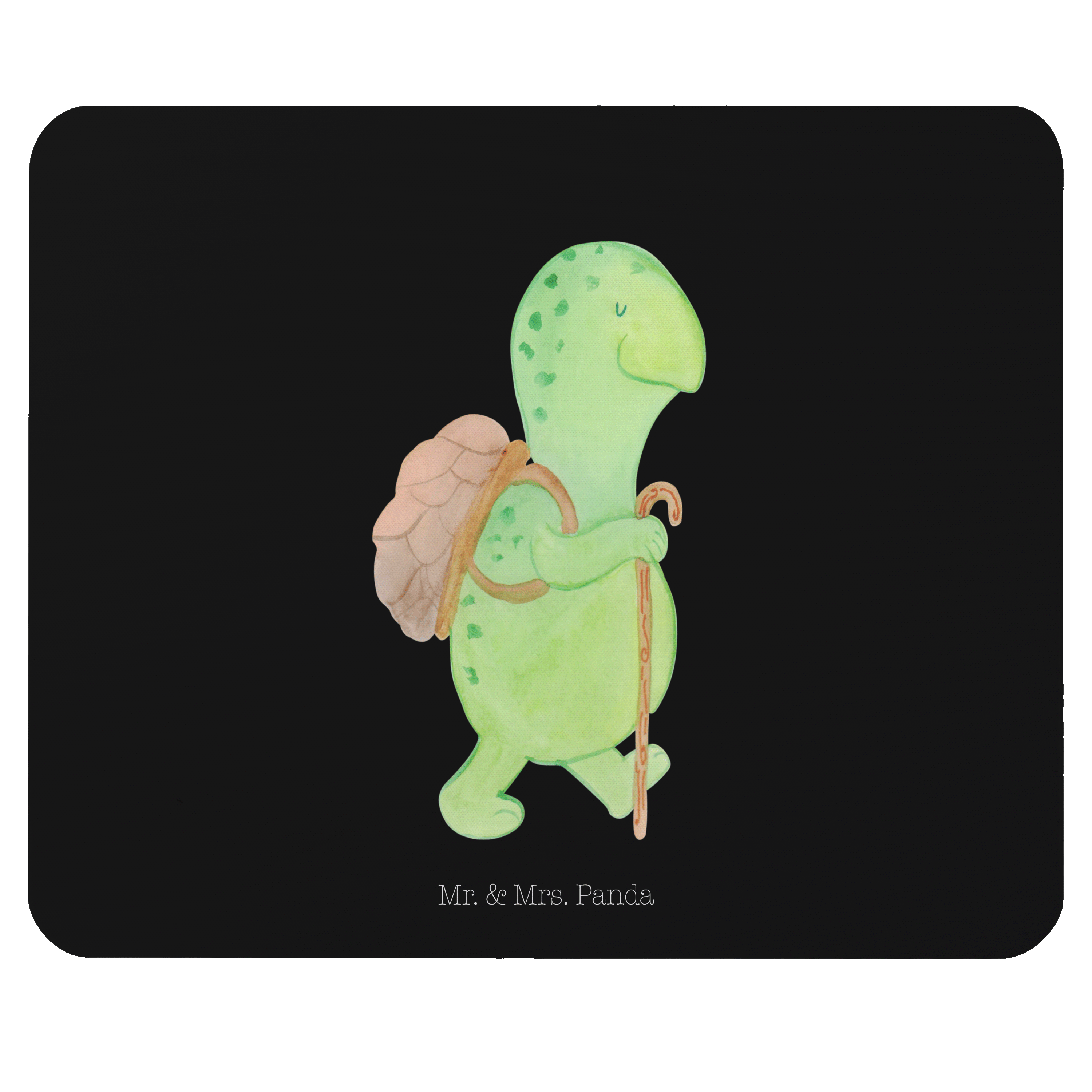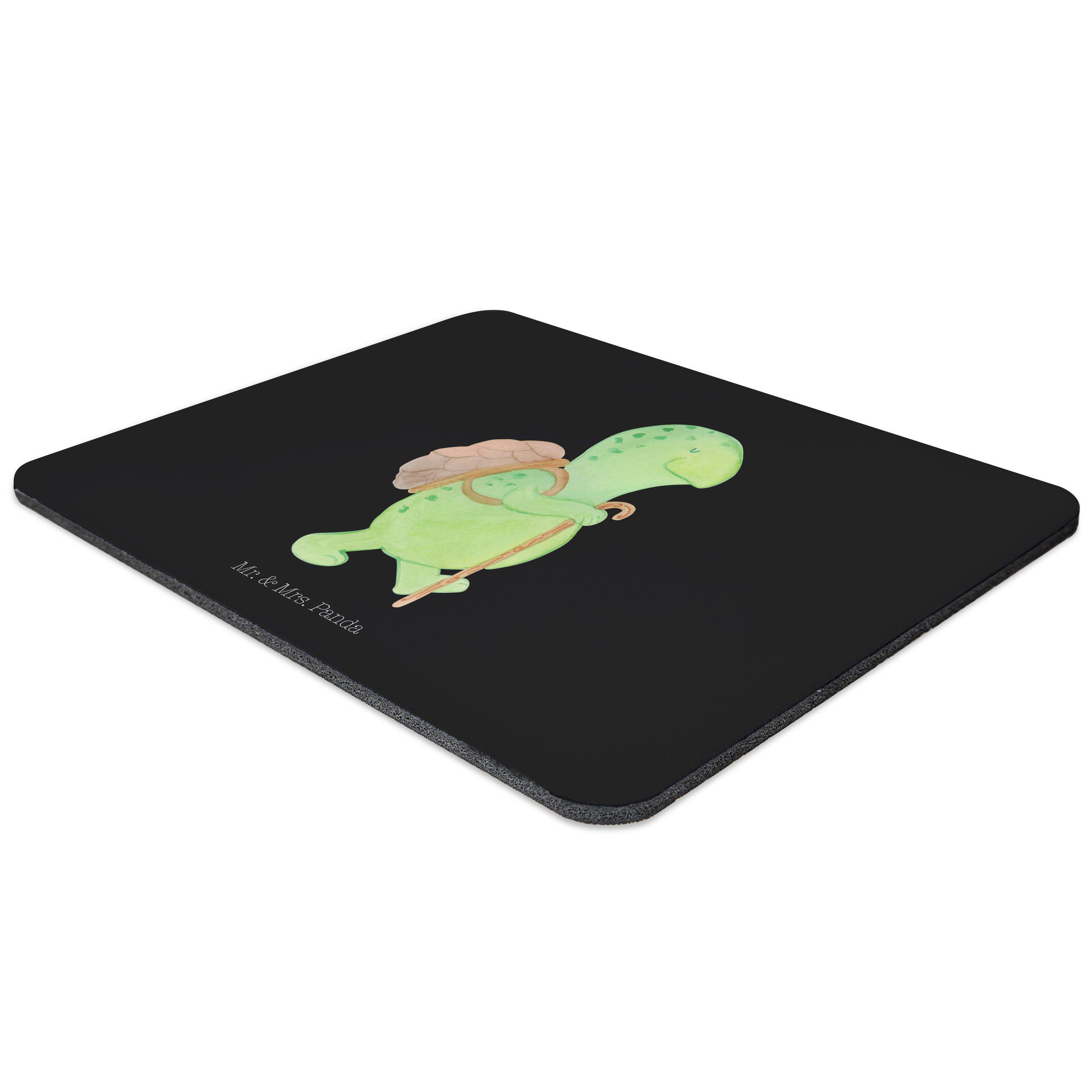 Mauspad Schildkröte Wanderer - mit Spruch - Schwarz