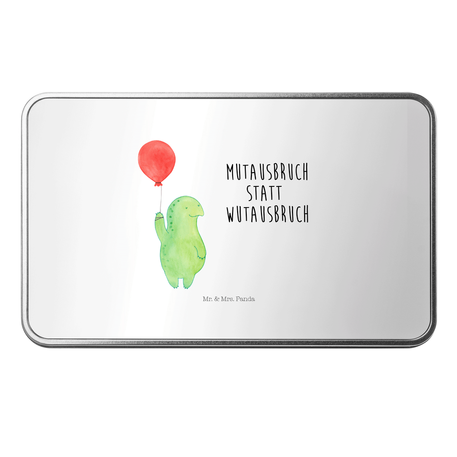 Metalldose rechteckig Schildkröte Luftballon - mit Spruch - Weiß
