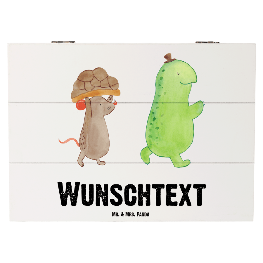 Personalisierte Holzkiste Schildkröte & Maus - 25 x 18 cm - Weiß
