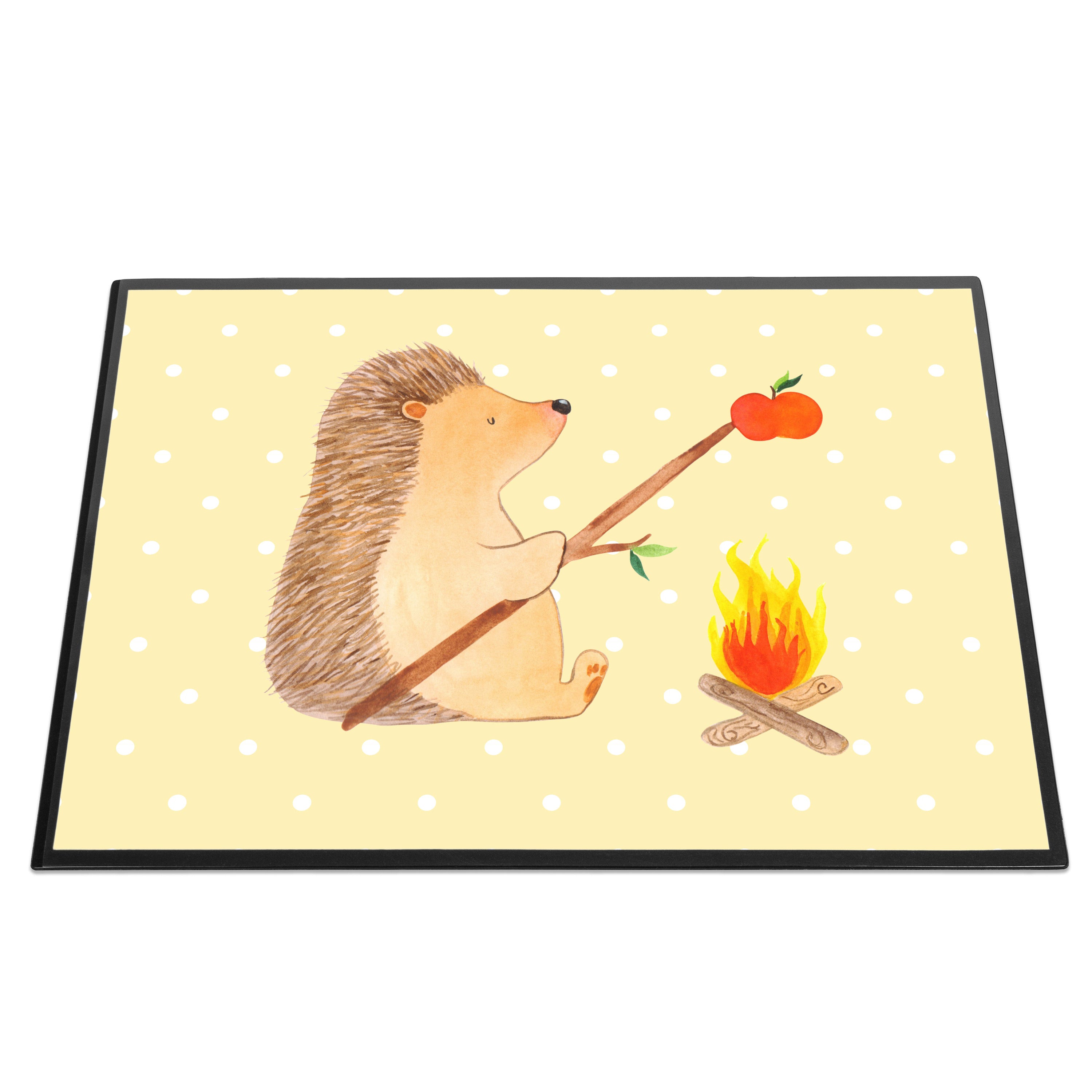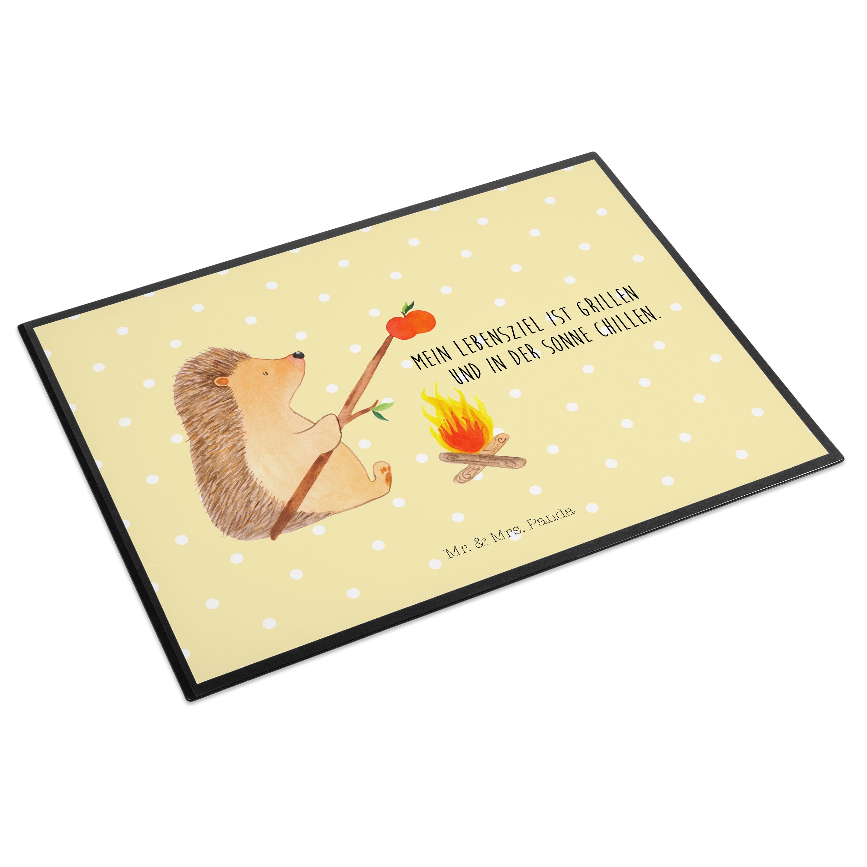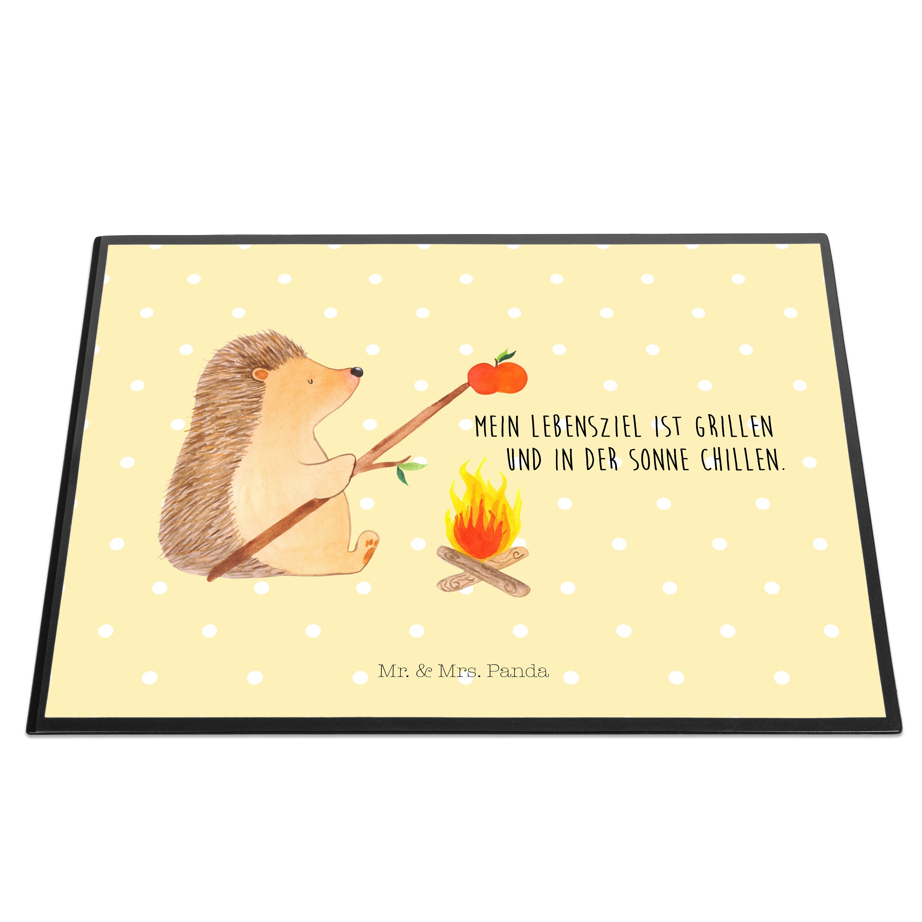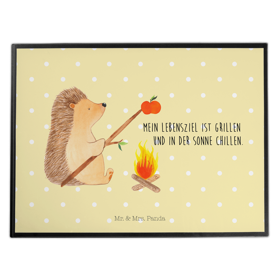 Schreibtischunterlage Igel grillt - mit Spruch - Gelb Pastell
