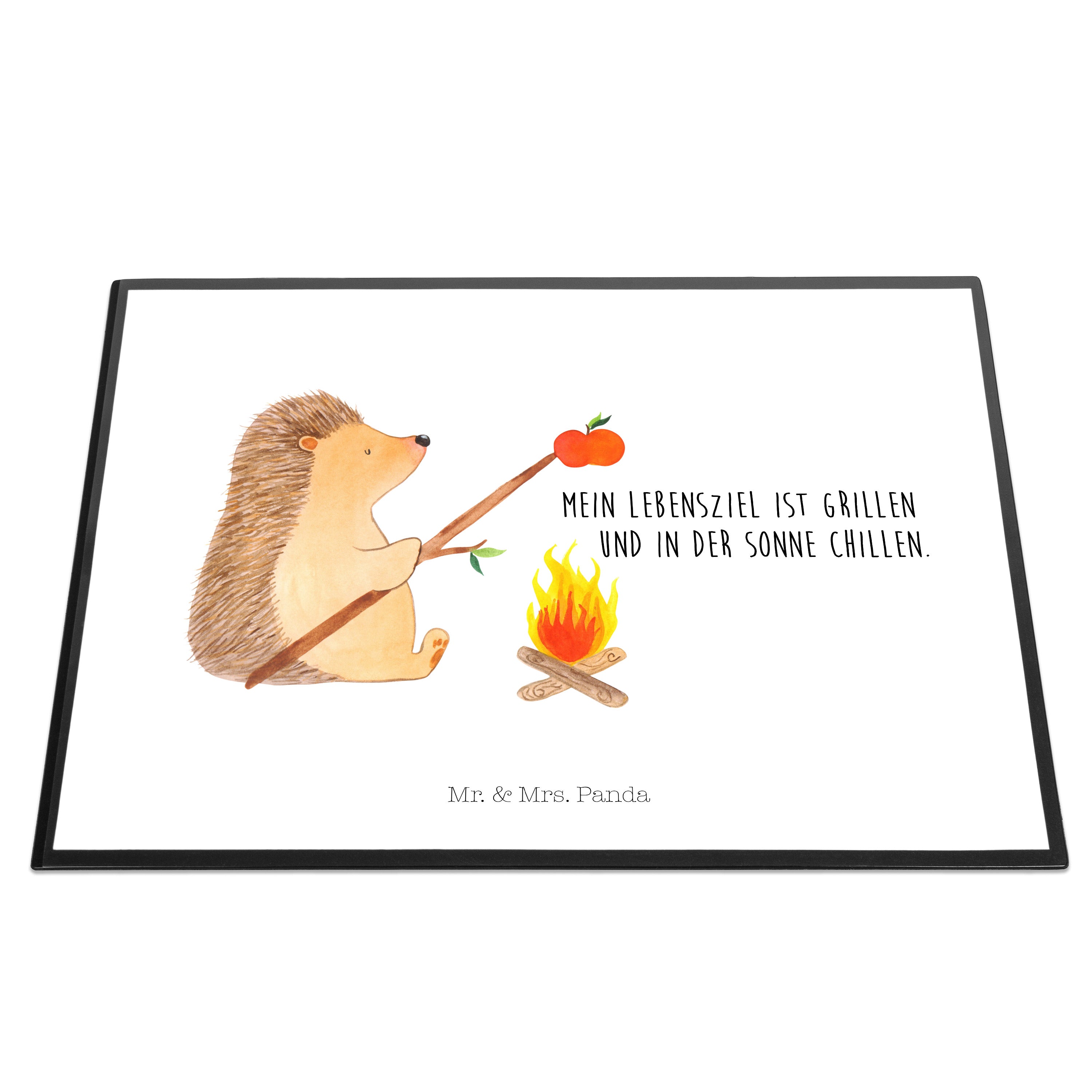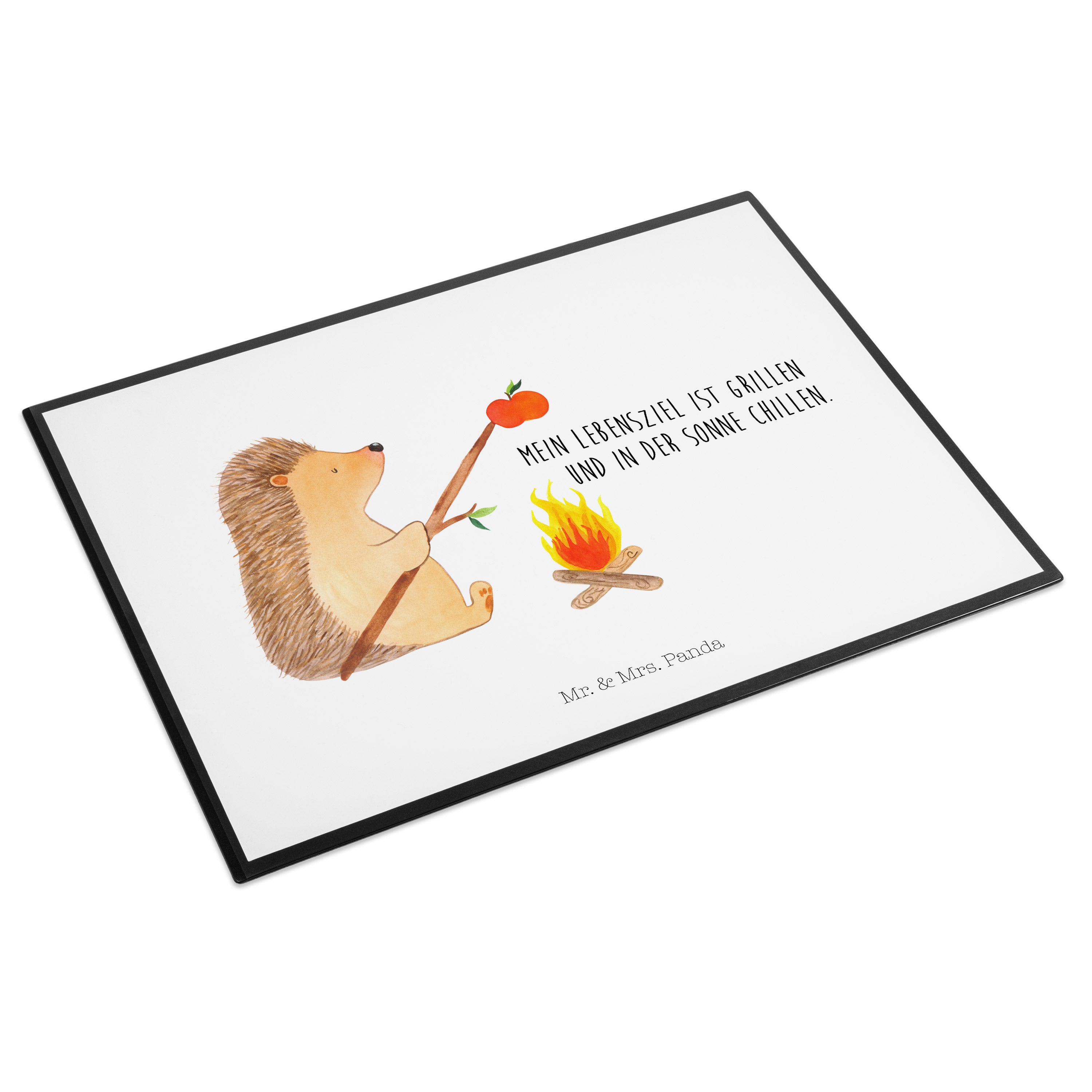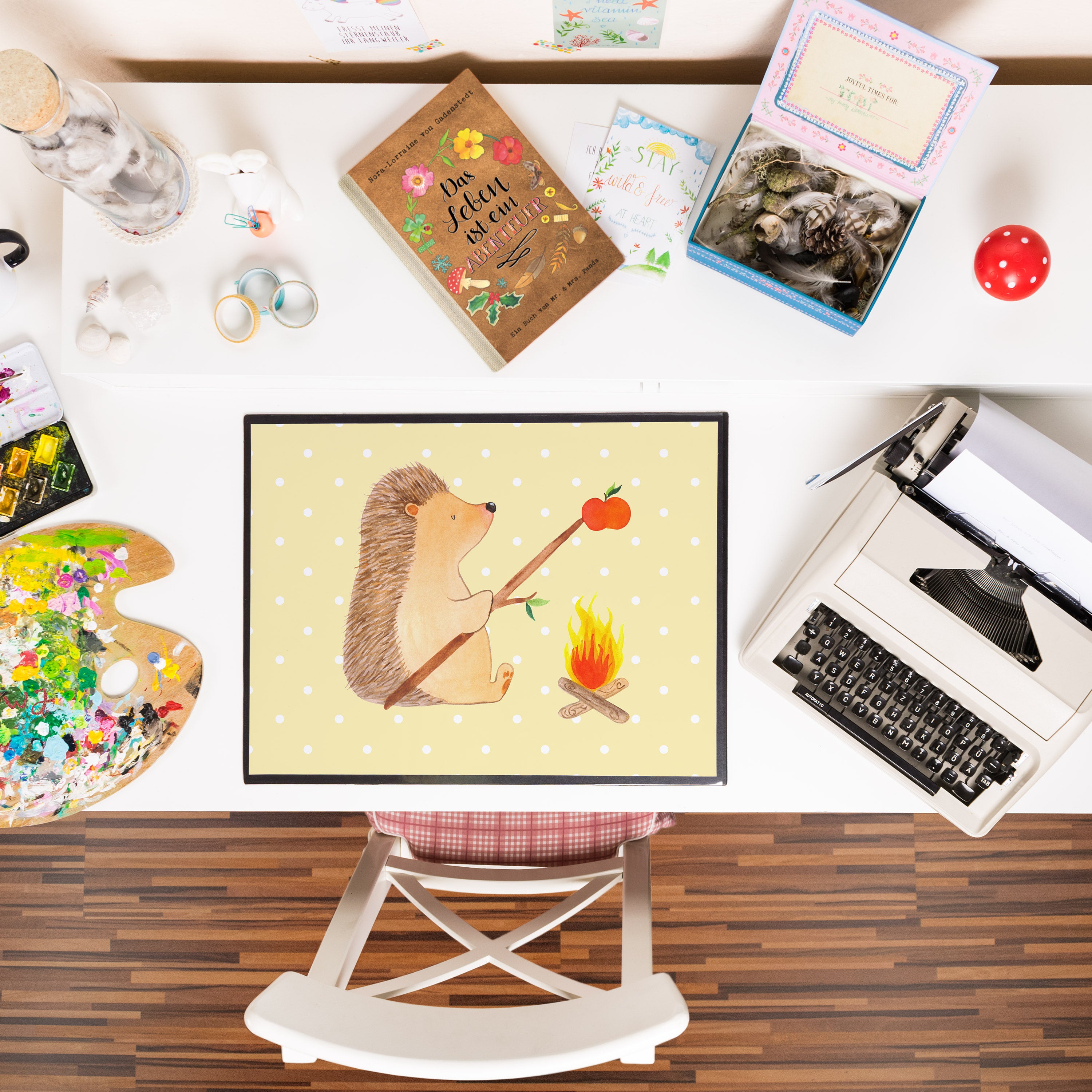 Schreibtischunterlage Igel grillt - mit Spruch - Gelb Pastell