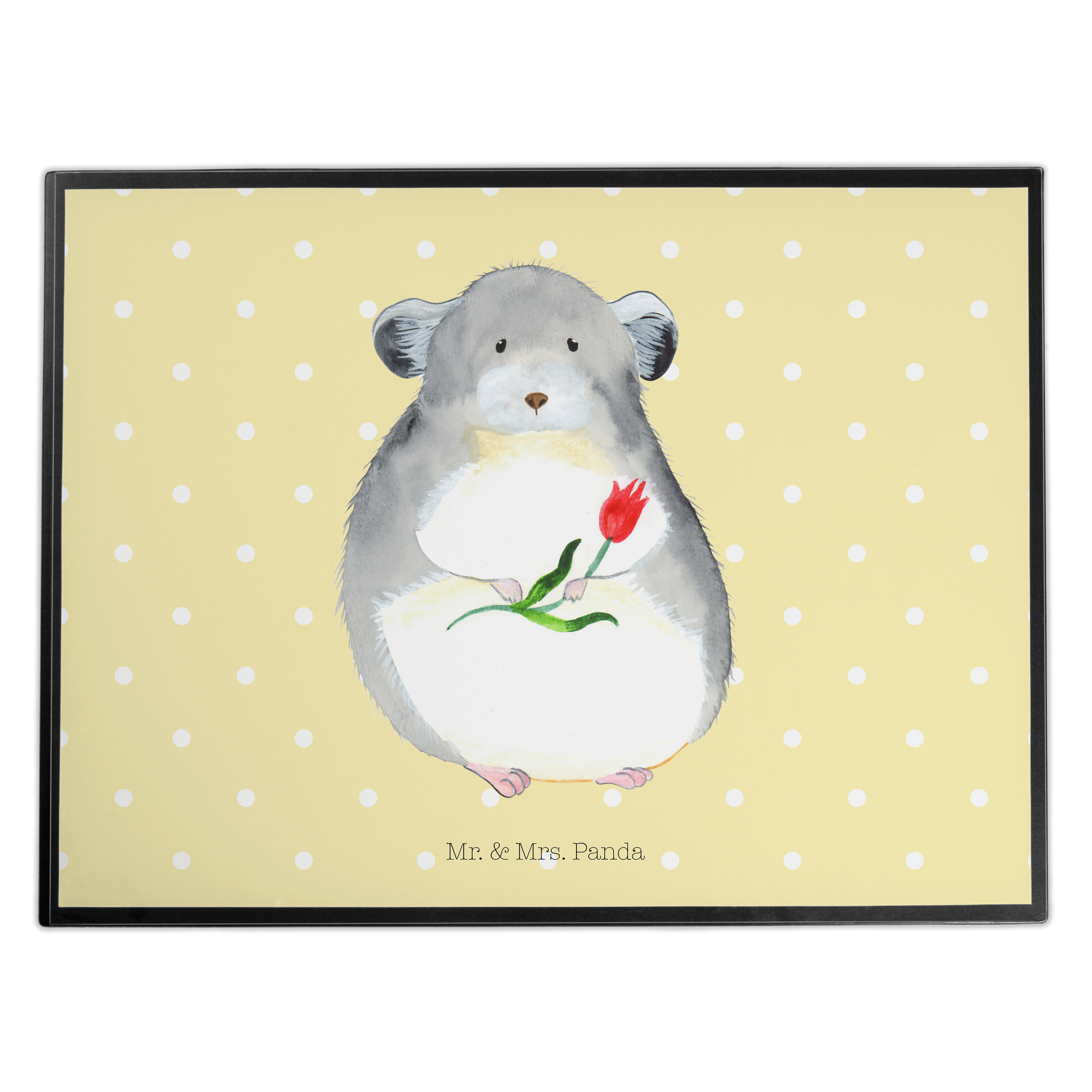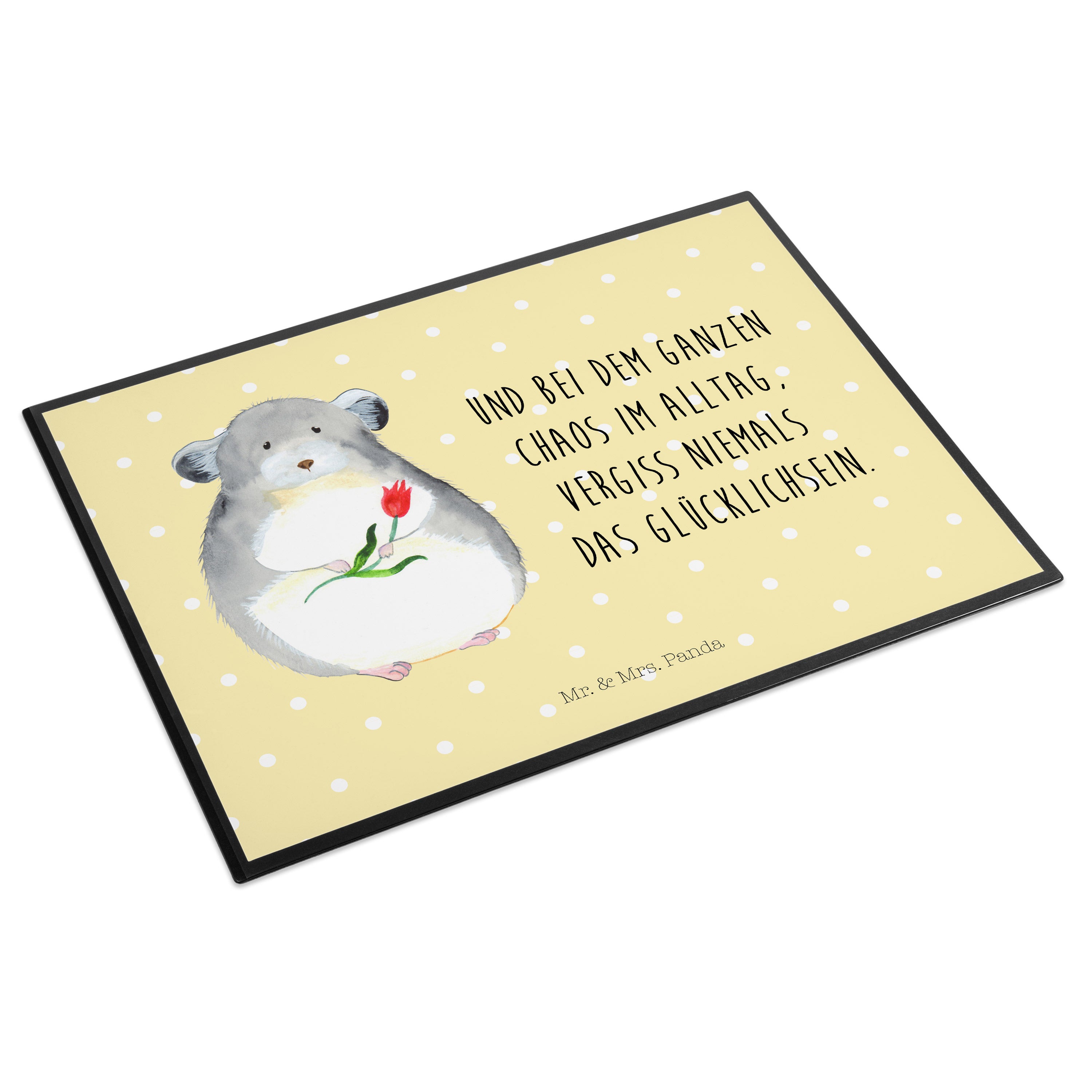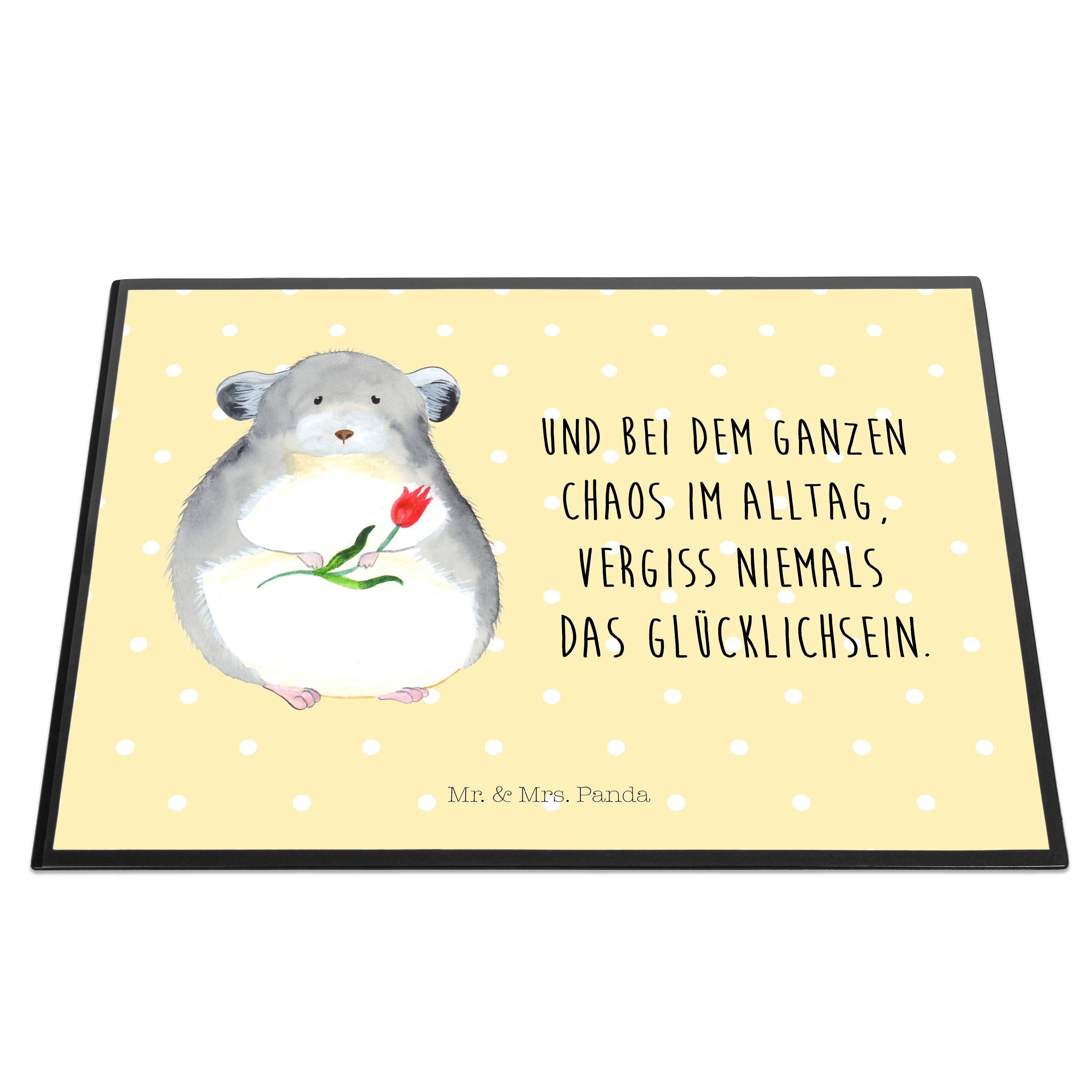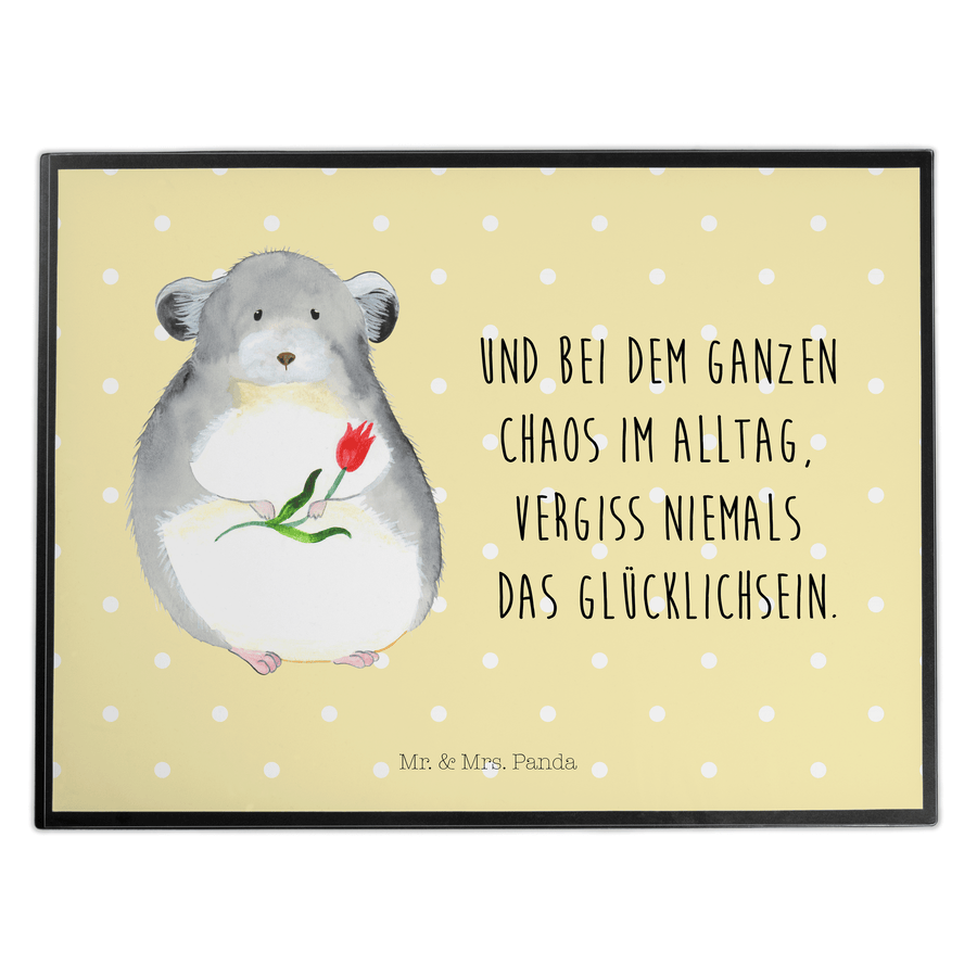 Schreibtischunterlage Chinchilla mit Blume - mit Spruch - Gelb Pastell