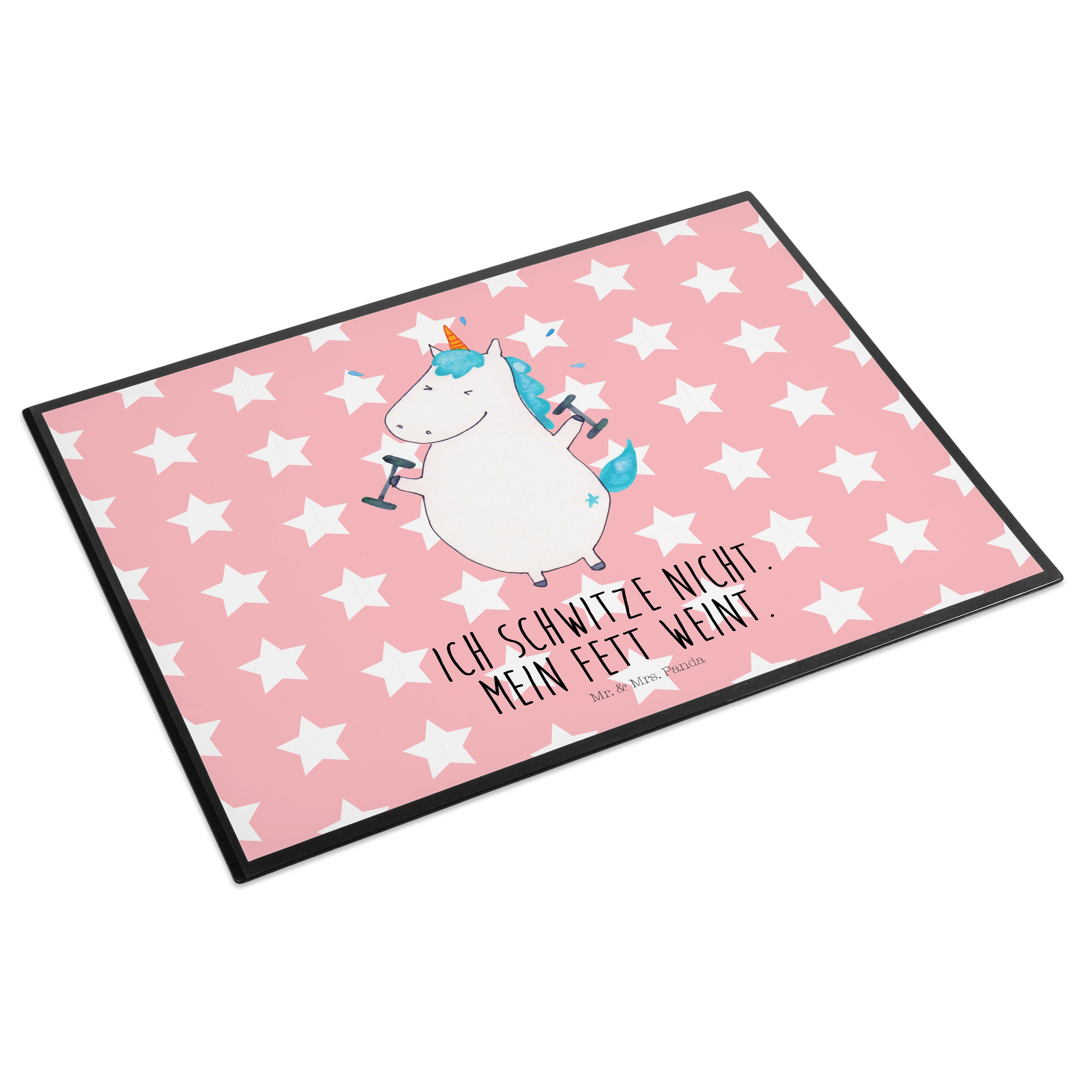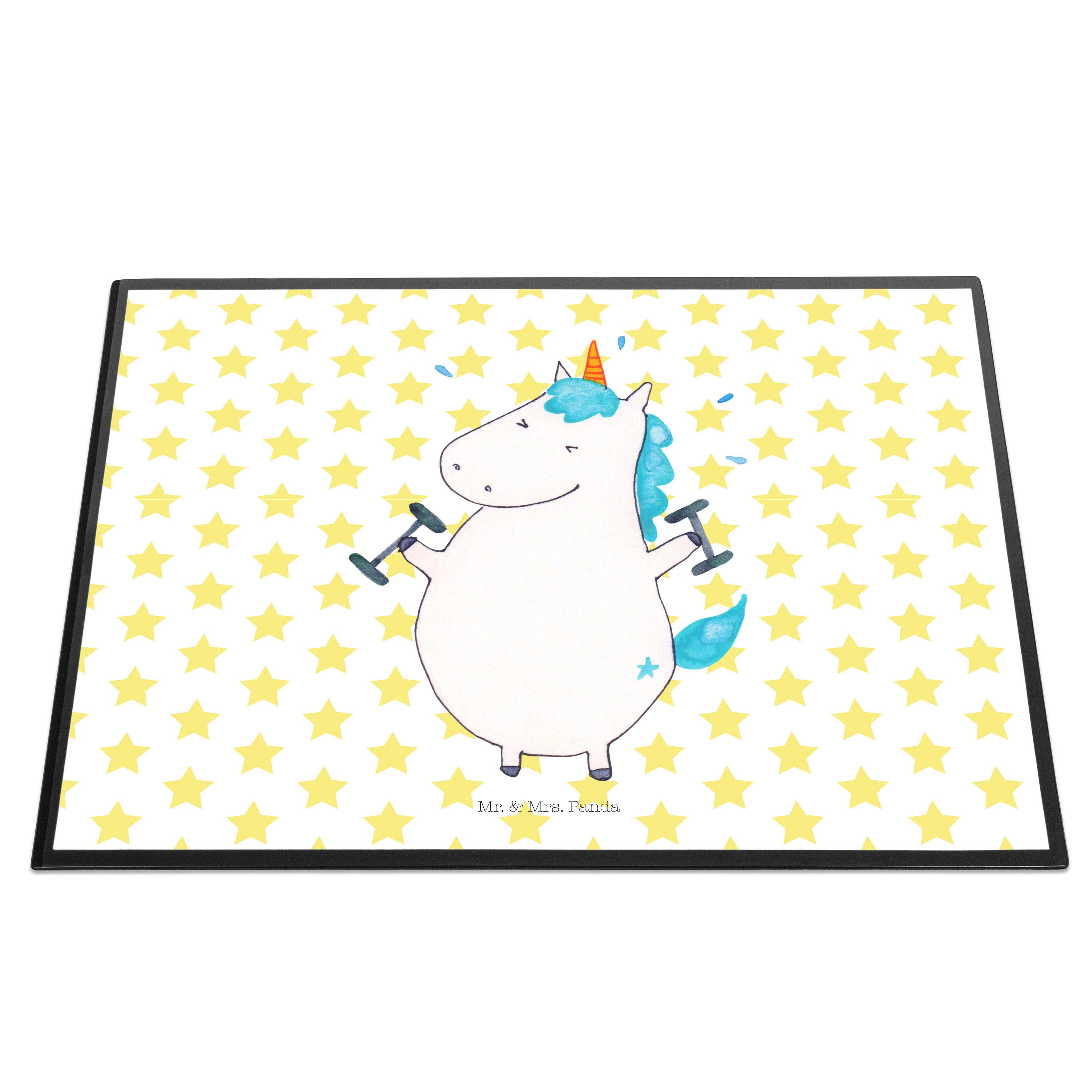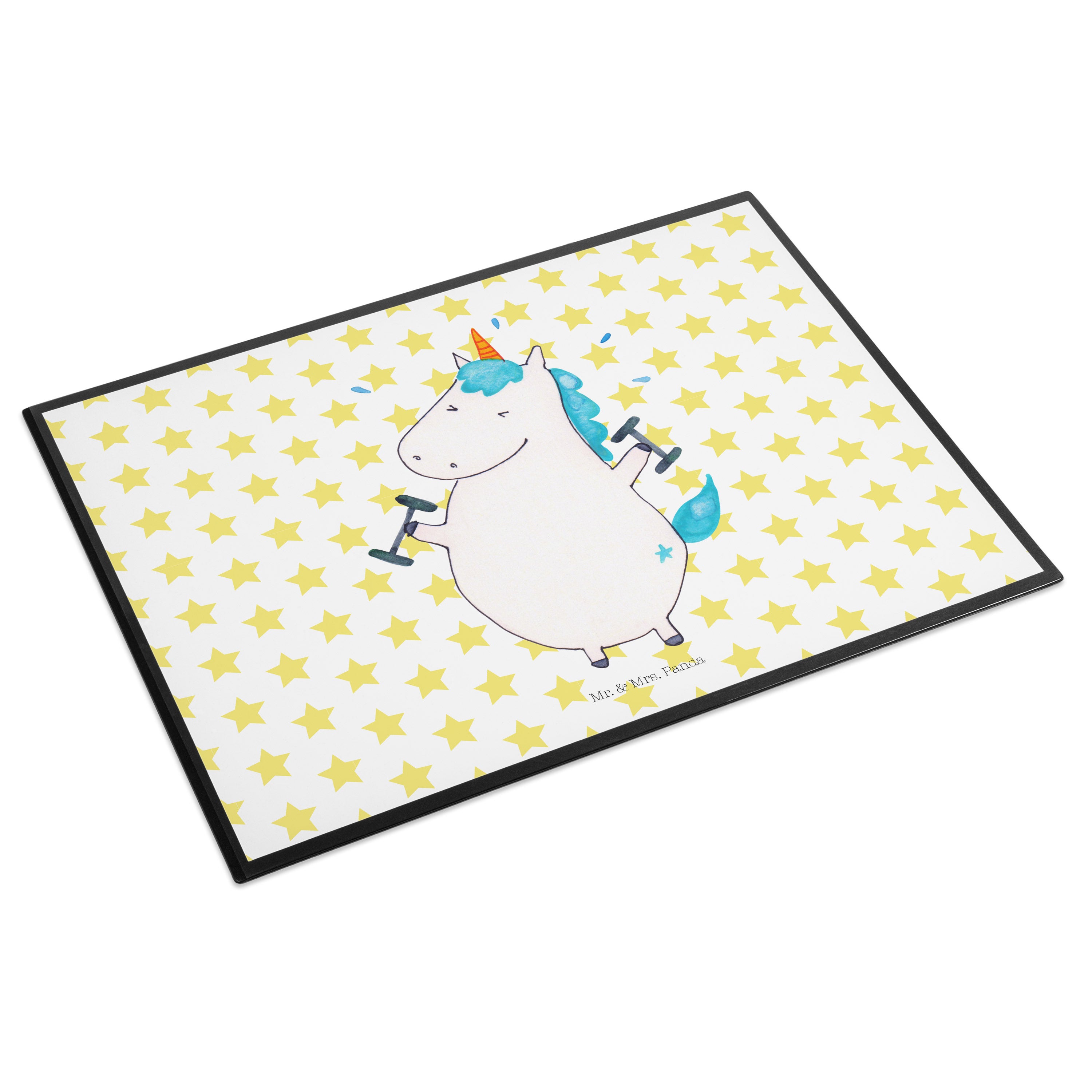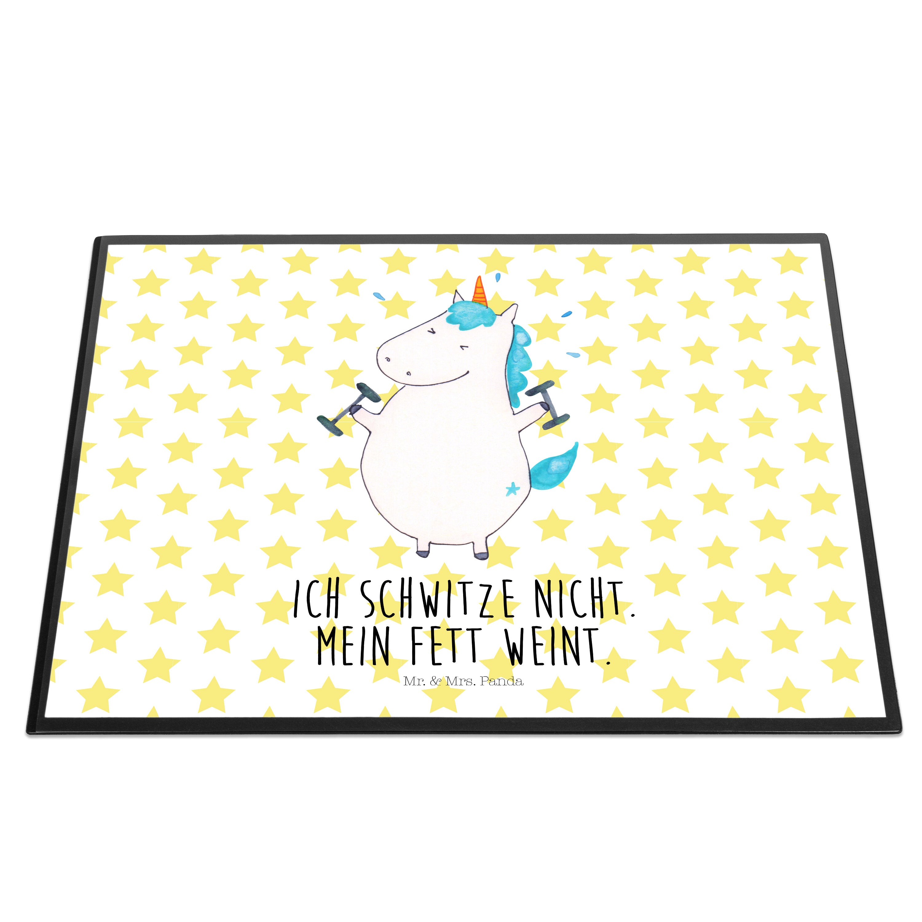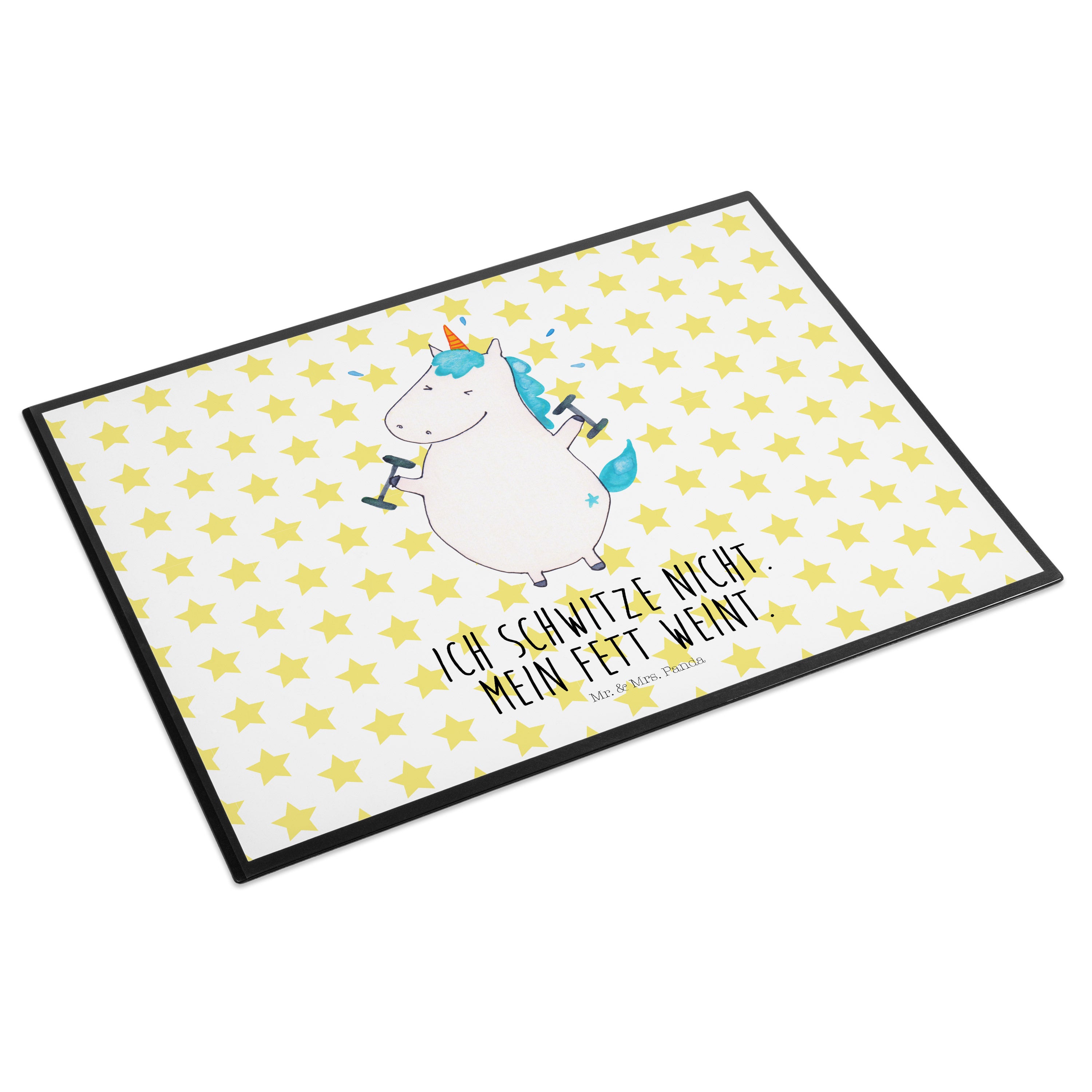 Schreibtischunterlage Einhorn Fitness - mit Spruch - Weiß