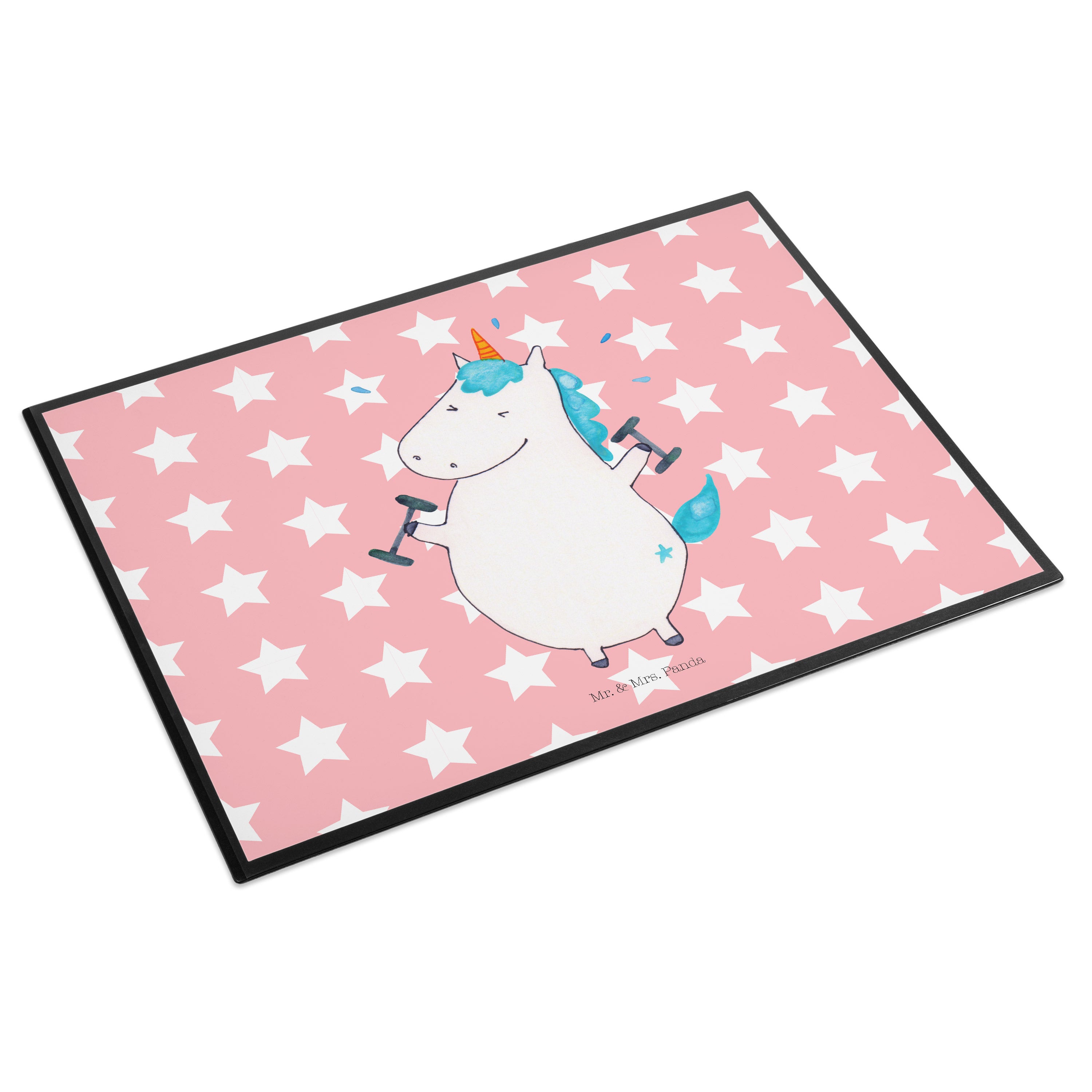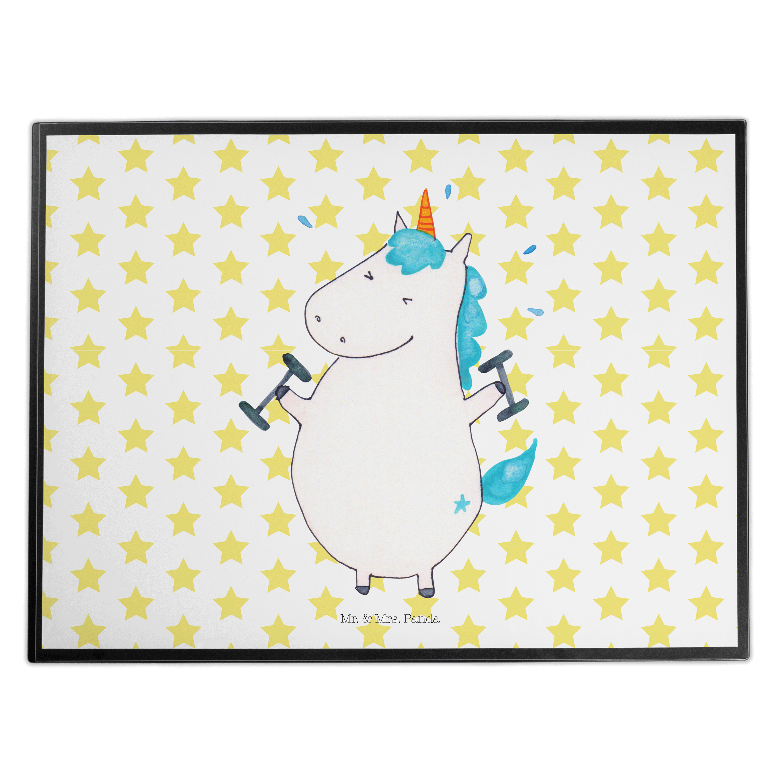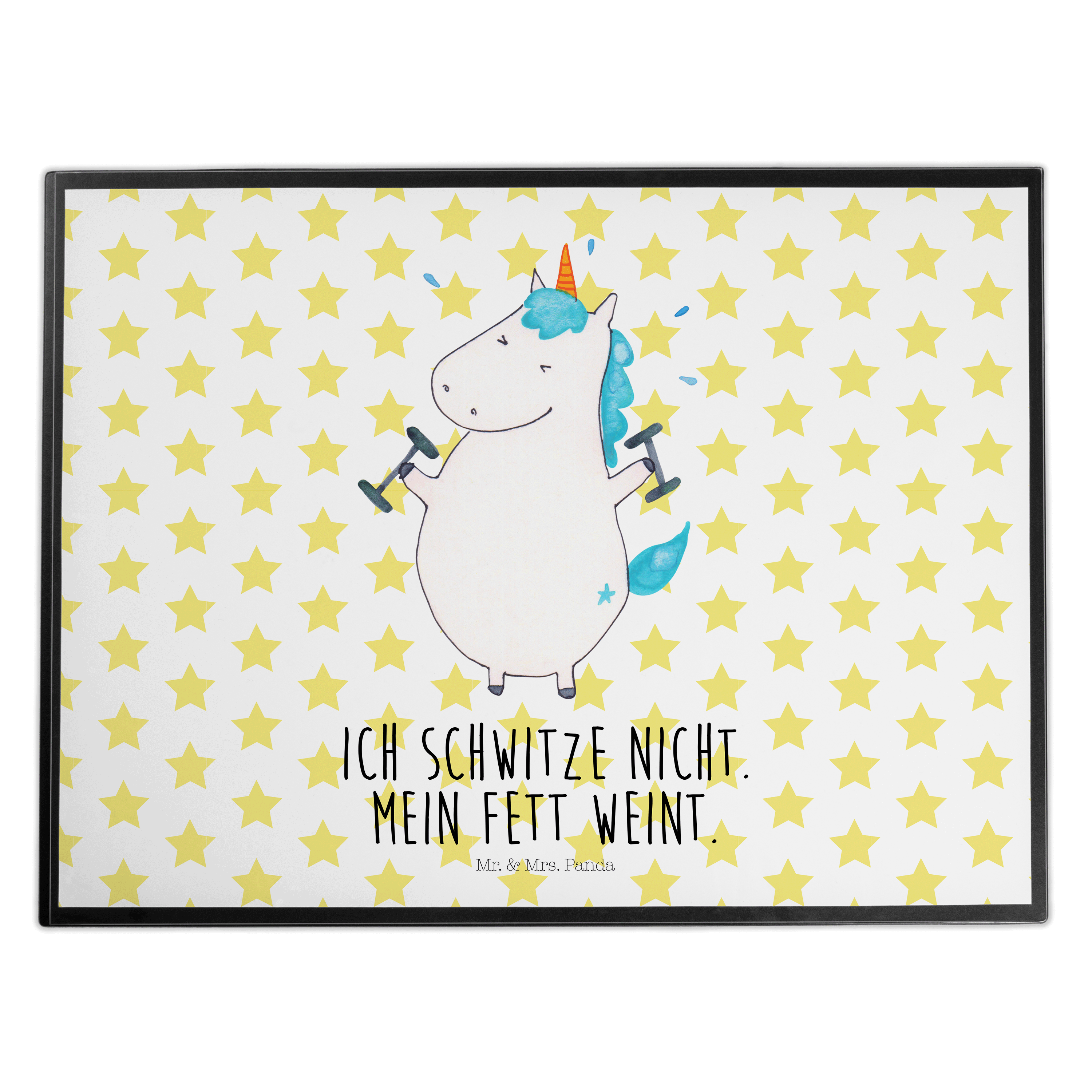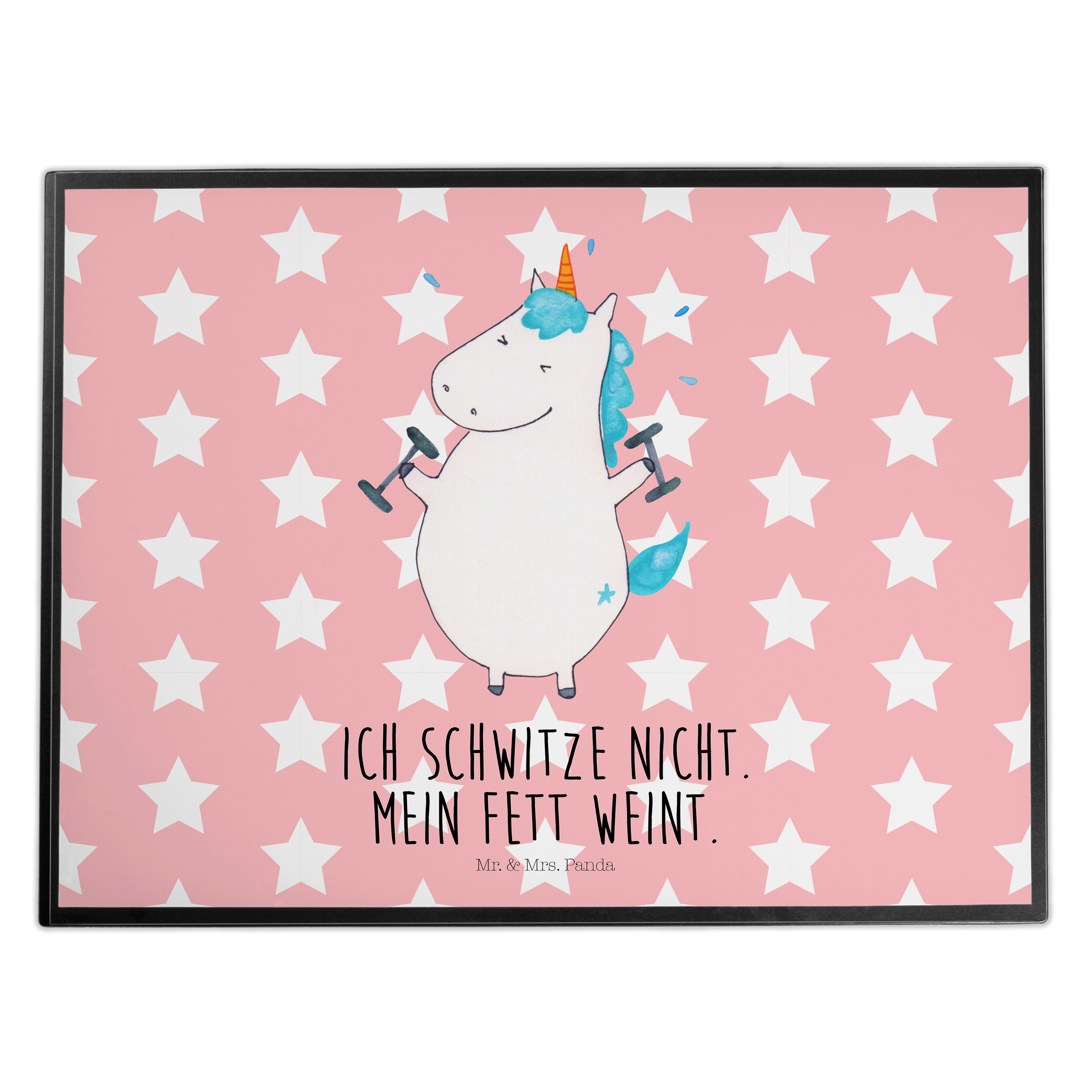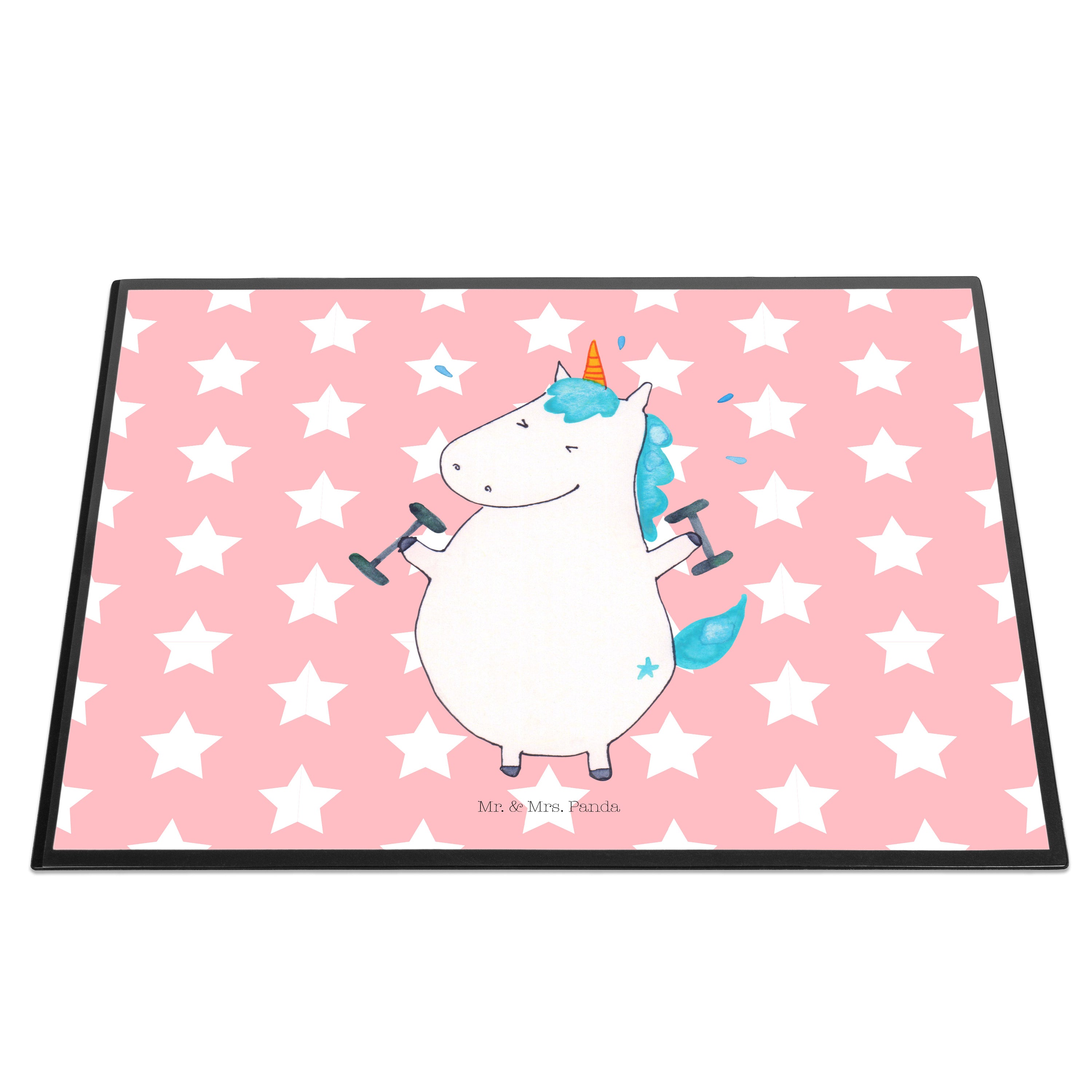 Schreibtischunterlage Einhorn Fitness - mit Spruch - Weiß
