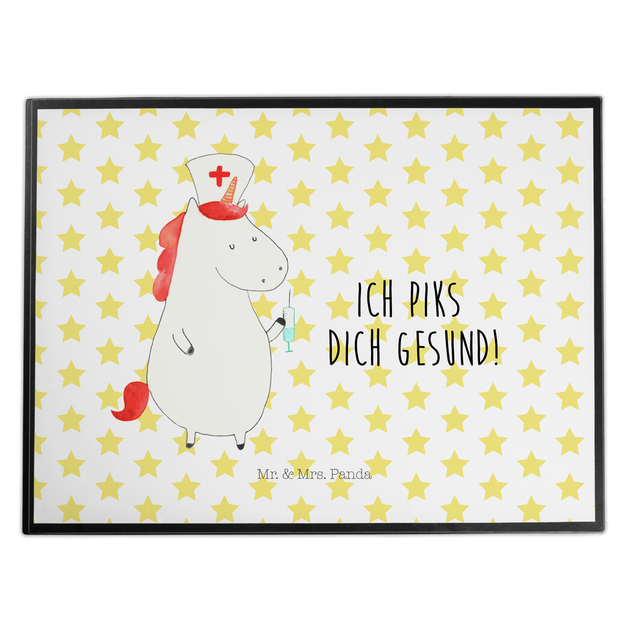 Schreibtischunterlage Einhorn Krankenschwester - mit Spruch - Weiß