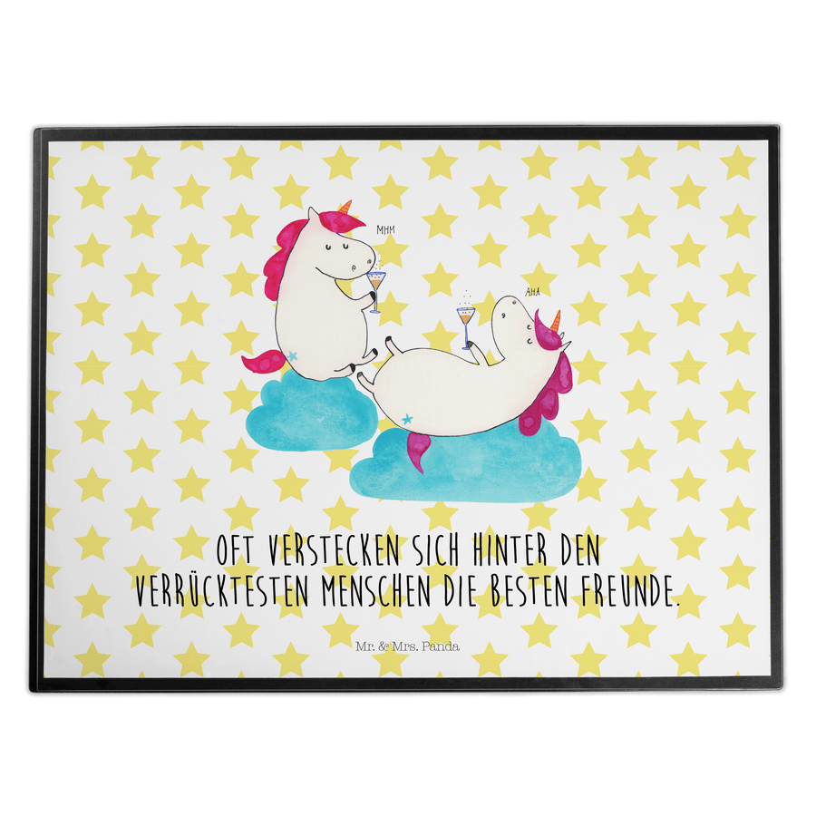 Schreibtischunterlage Einhörner Sekt - mit Spruch - Weiß