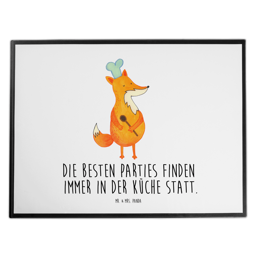Schreibtischunterlage Fuchs Koch - mit Spruch - Weiß