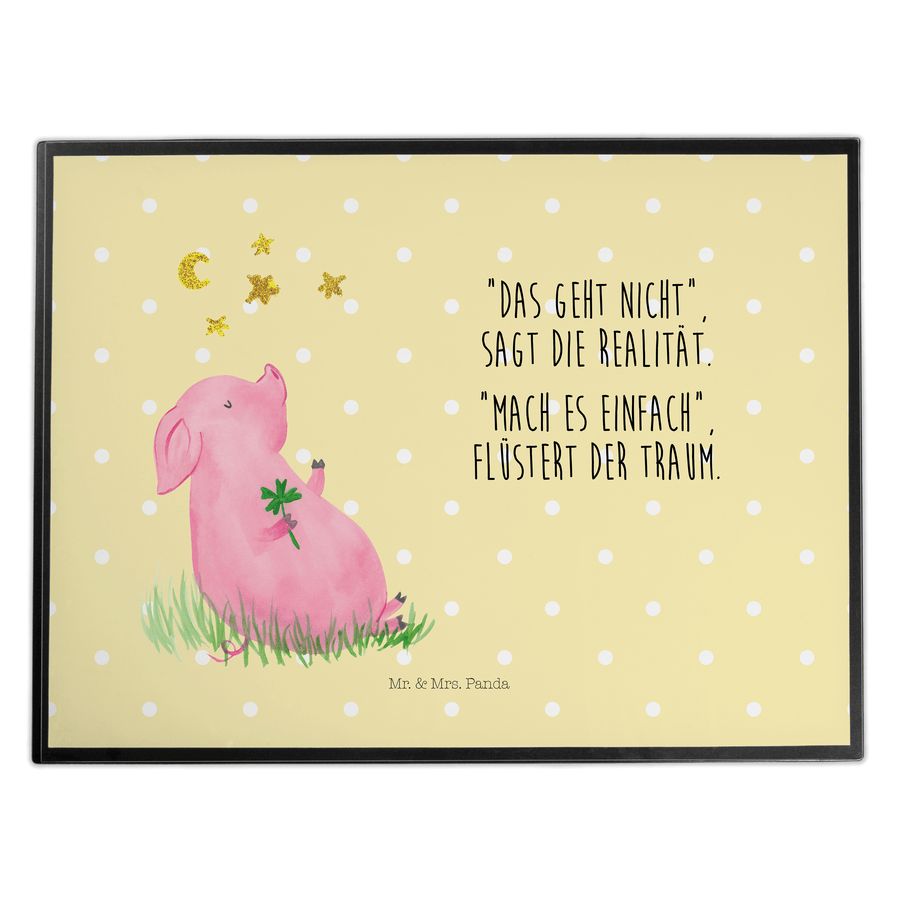 Schreibtischunterlage Glücksschwein - mit Spruch - Gelb Pastell
