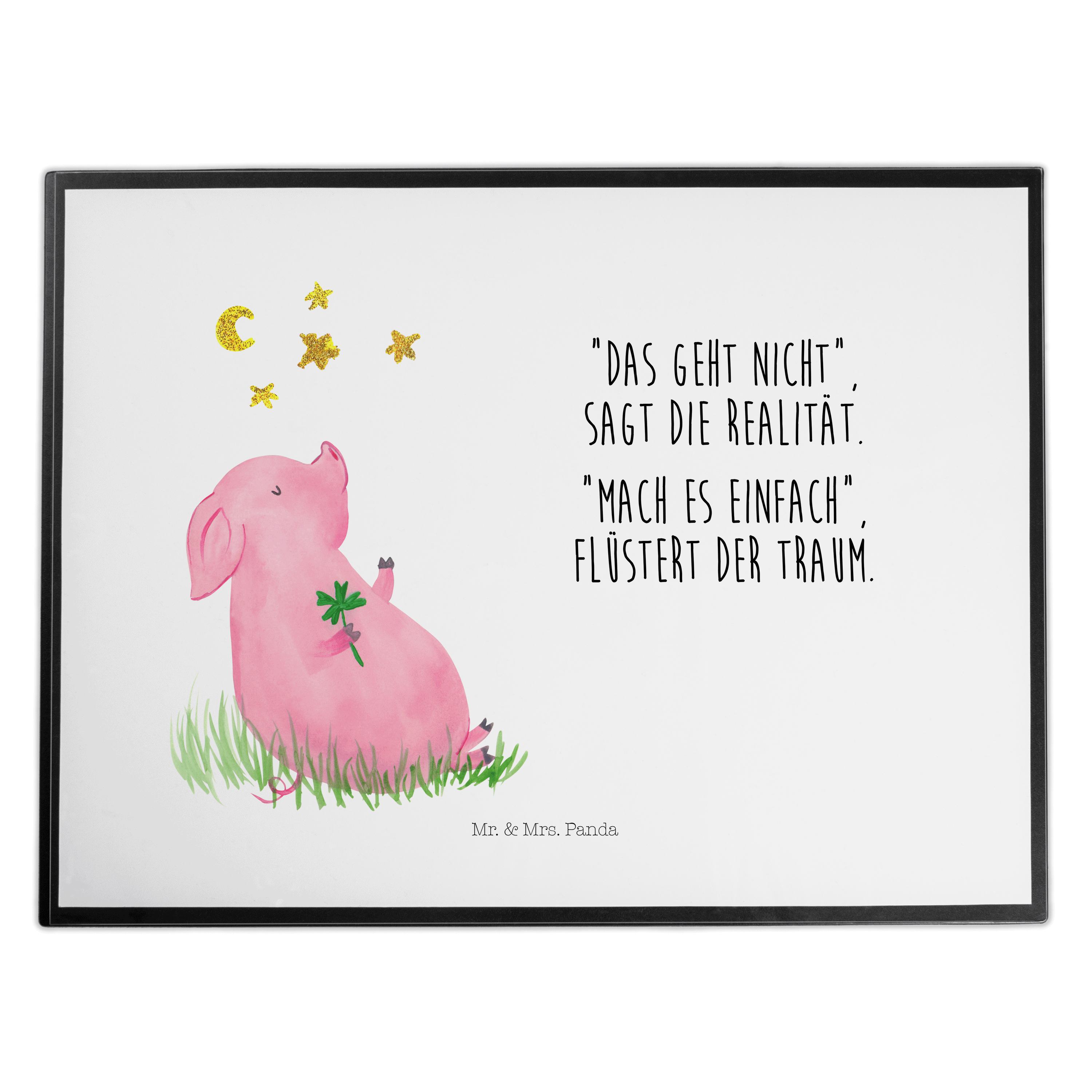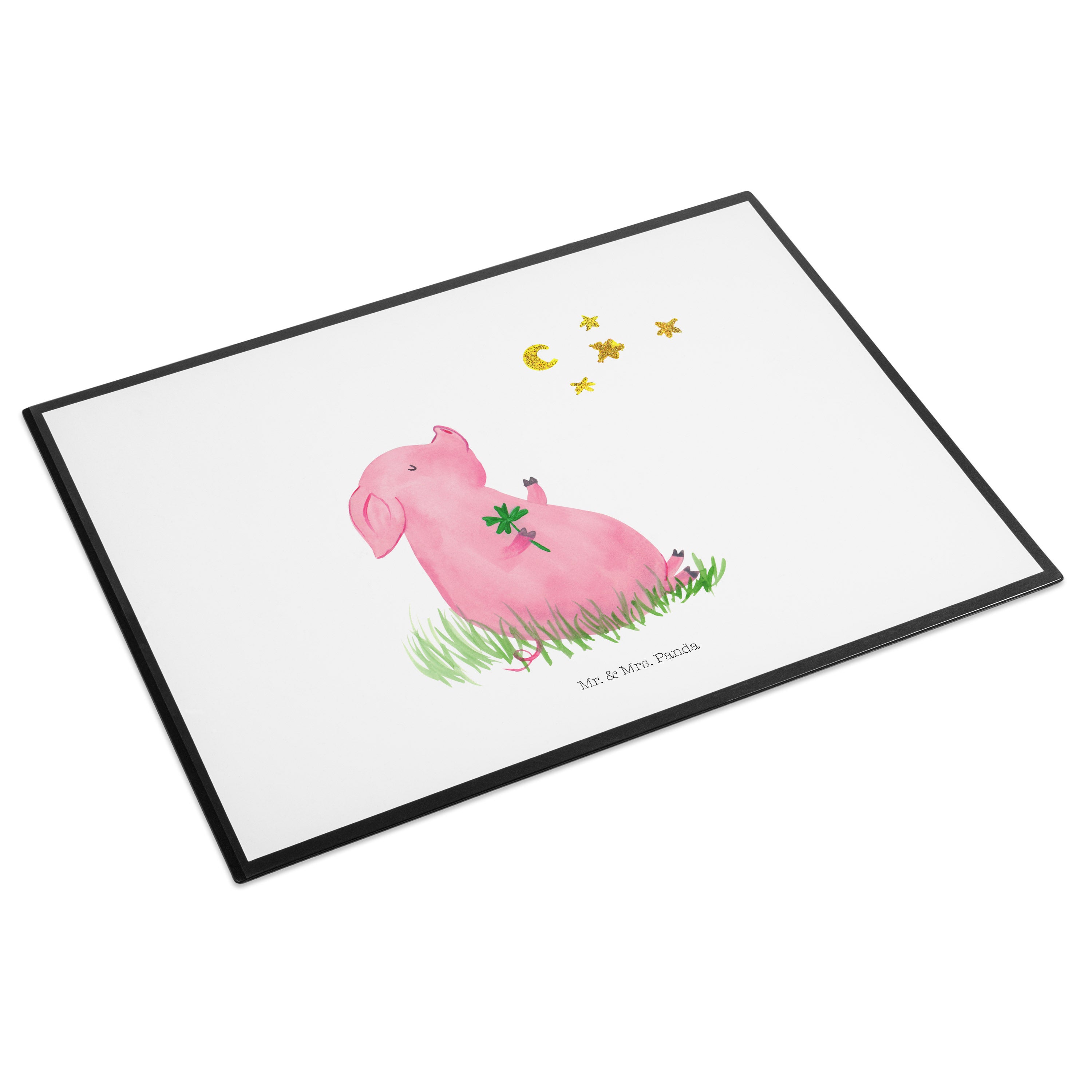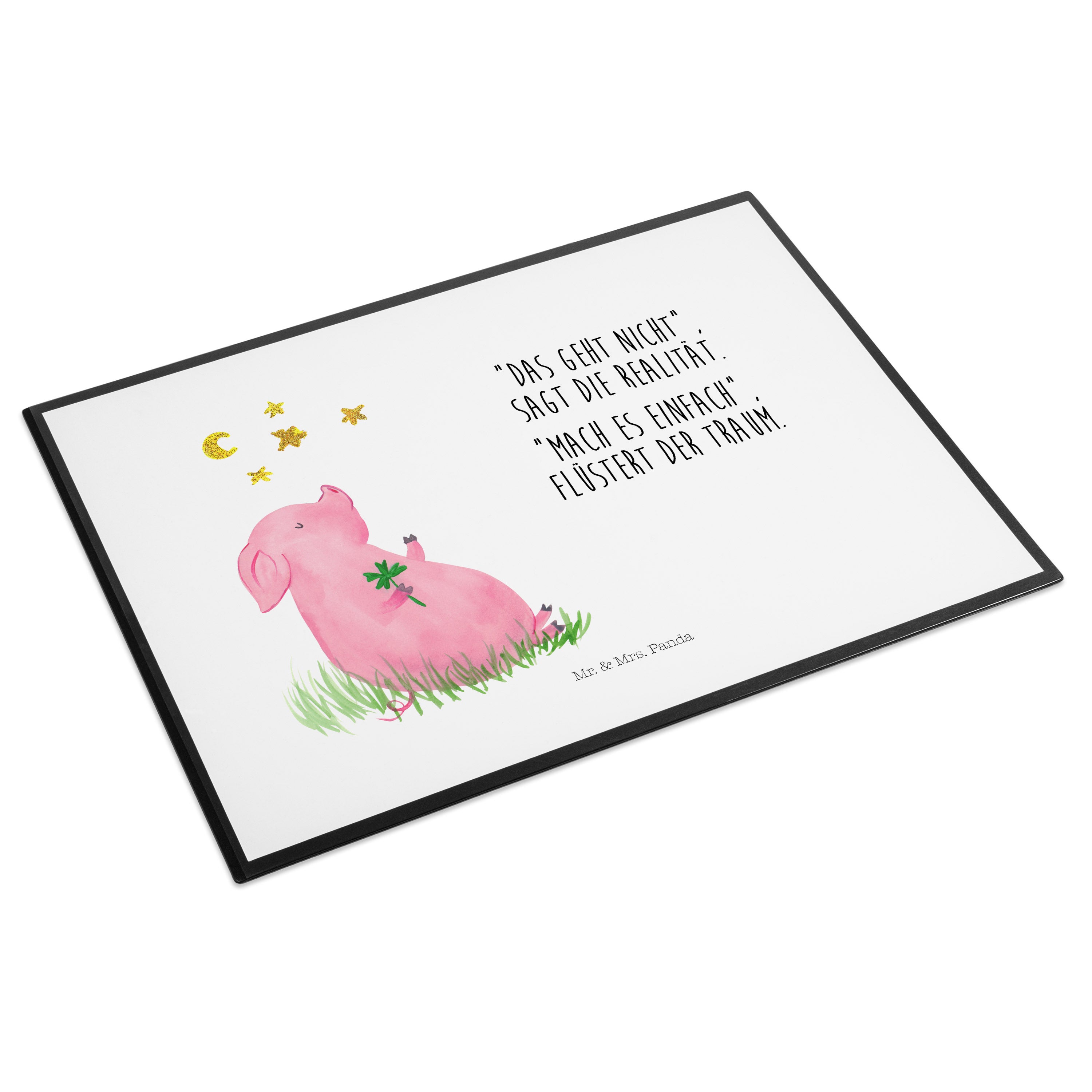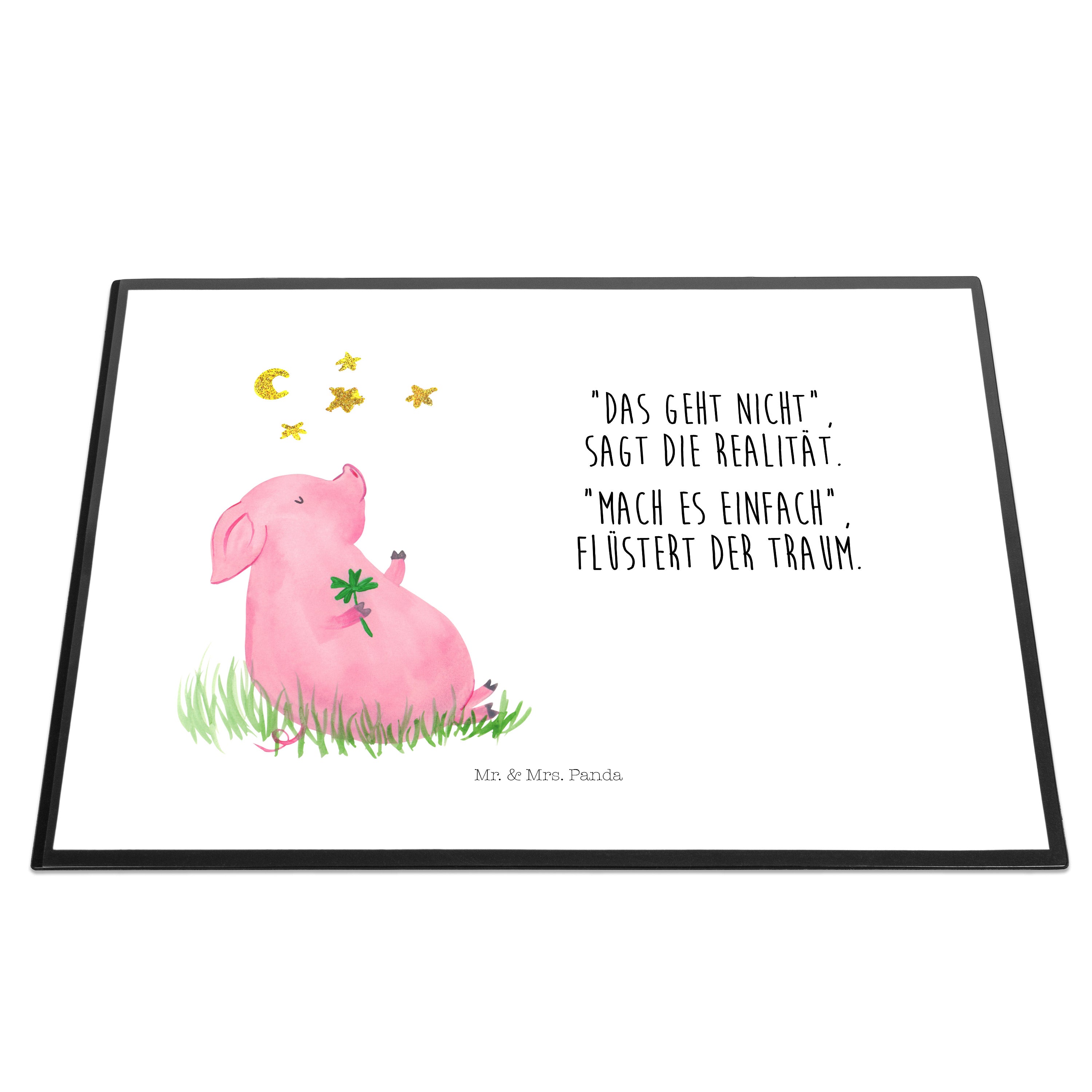 Schreibtischunterlage Glücksschwein - mit Spruch - Weiß