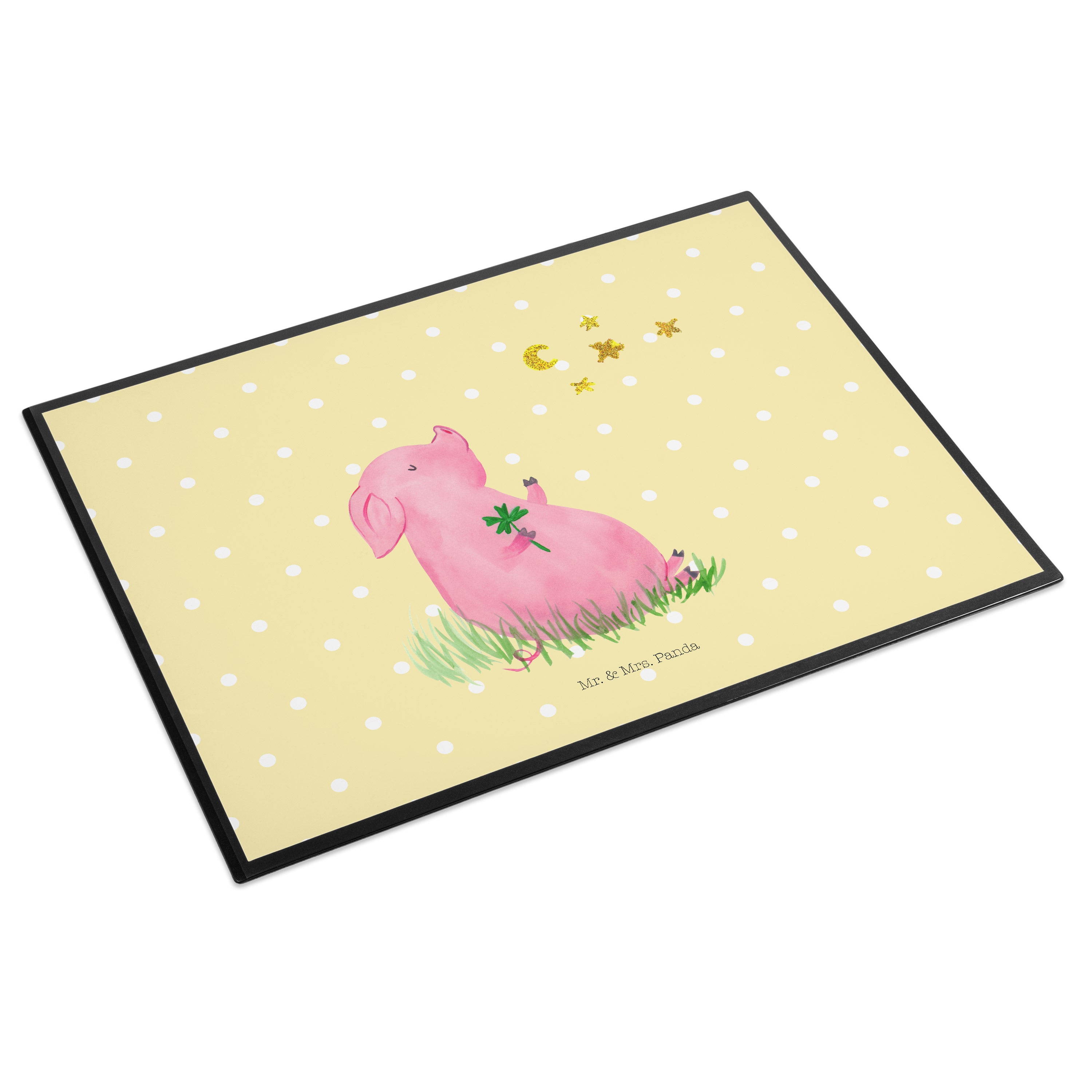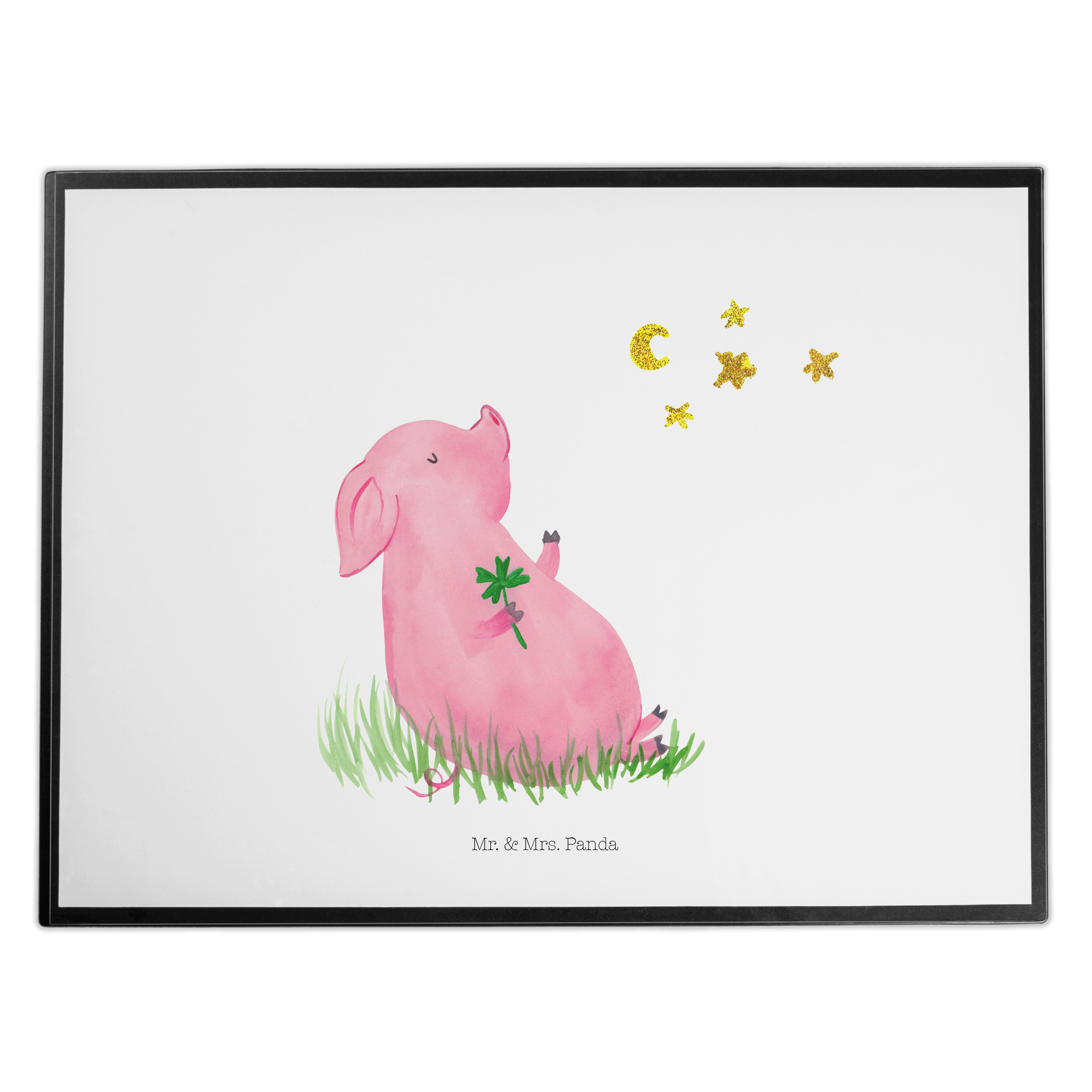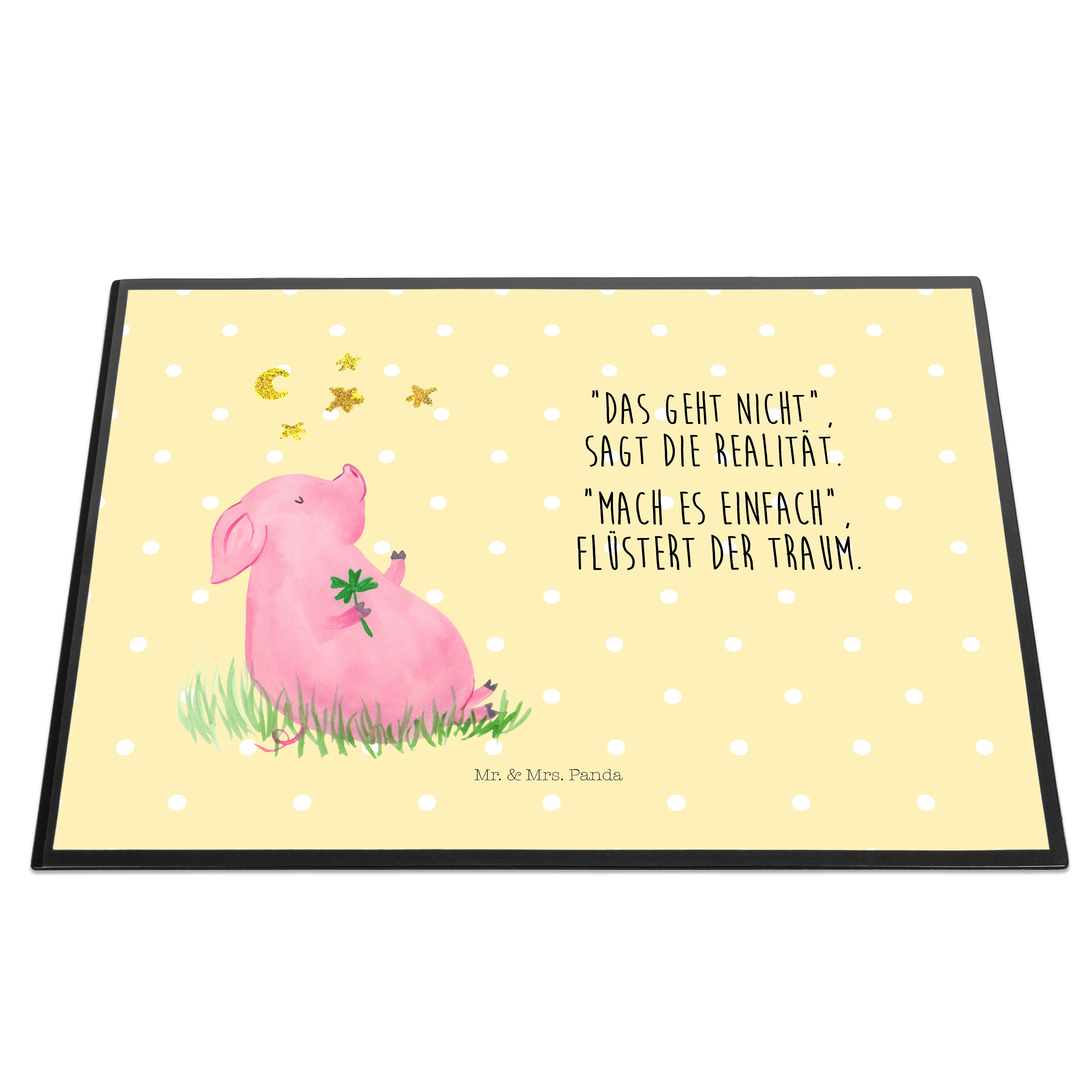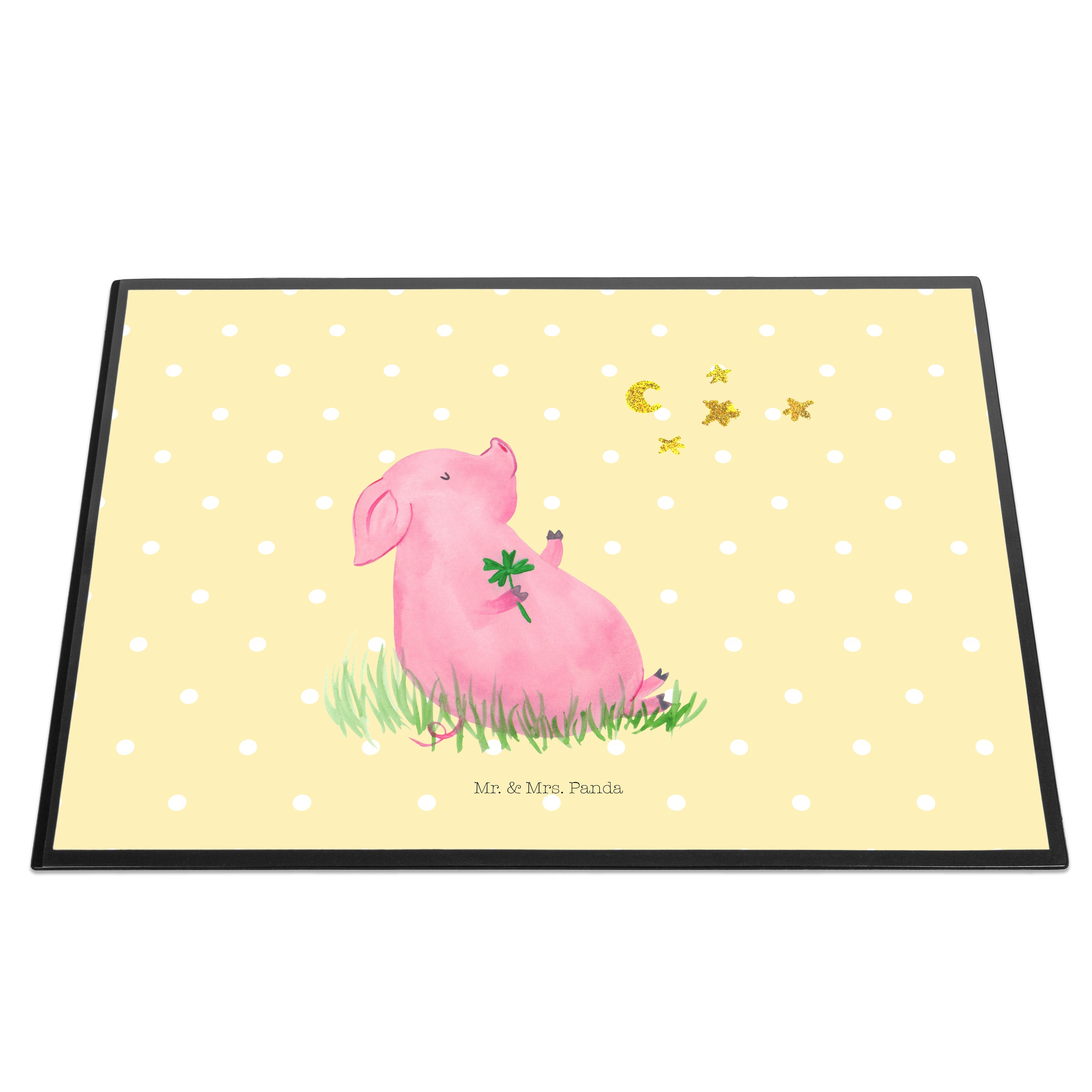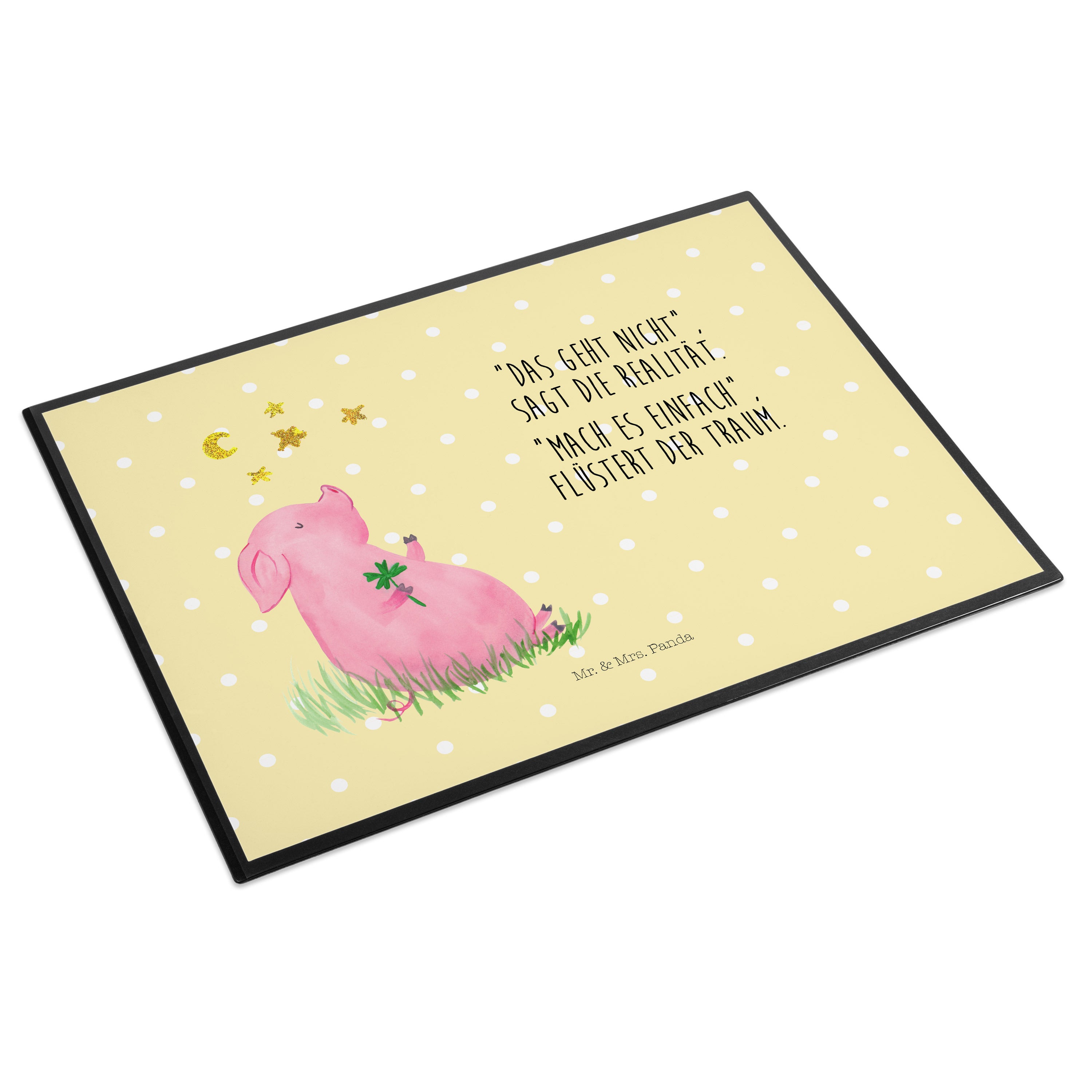 Schreibtischunterlage Glücksschwein - mit Spruch - Weiß