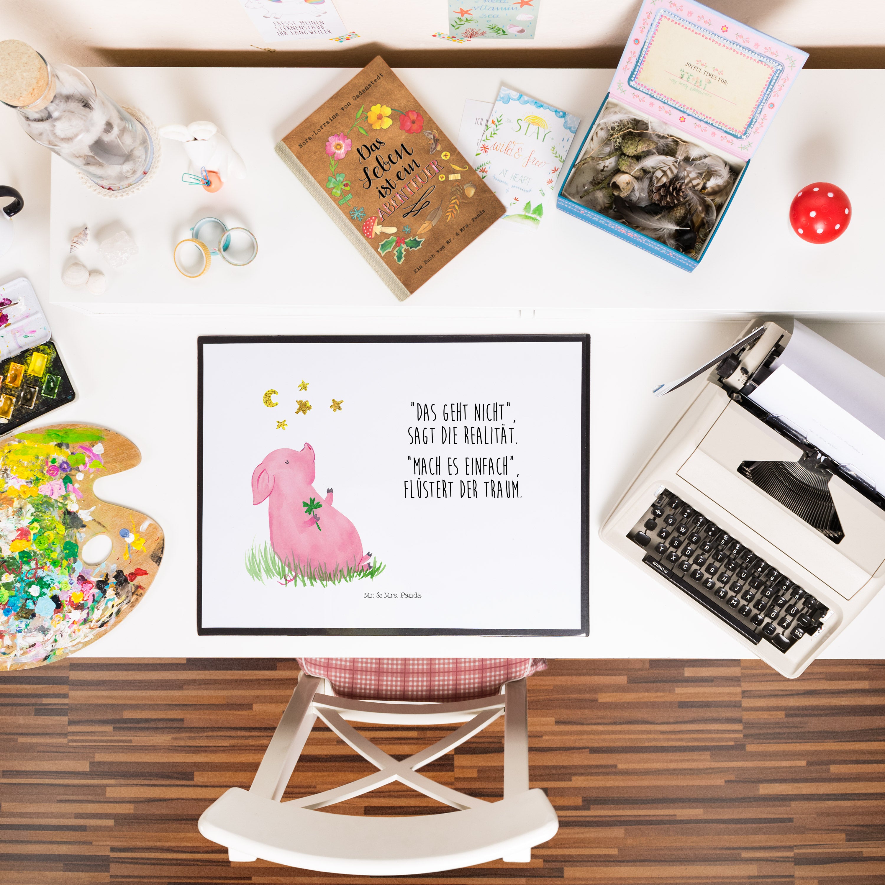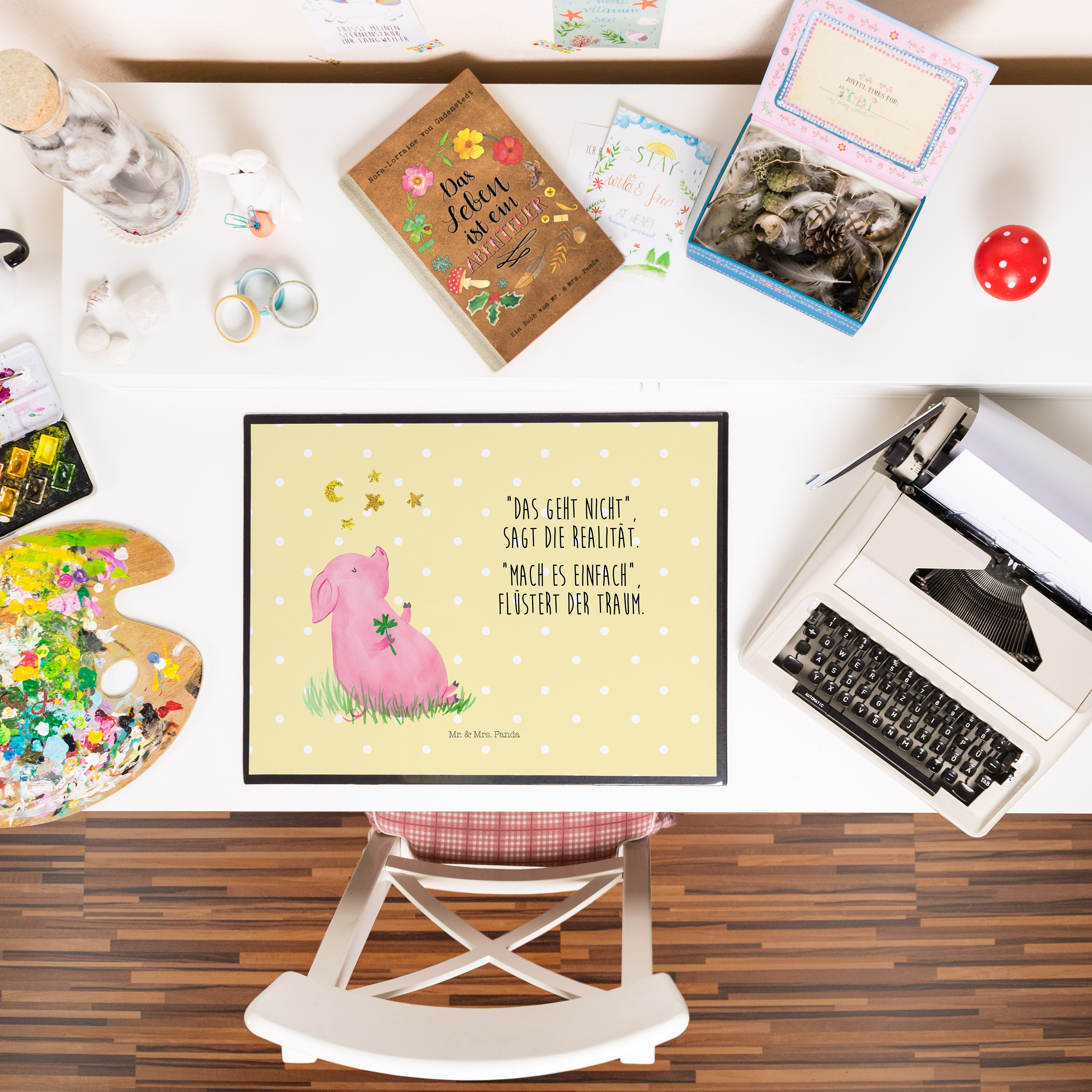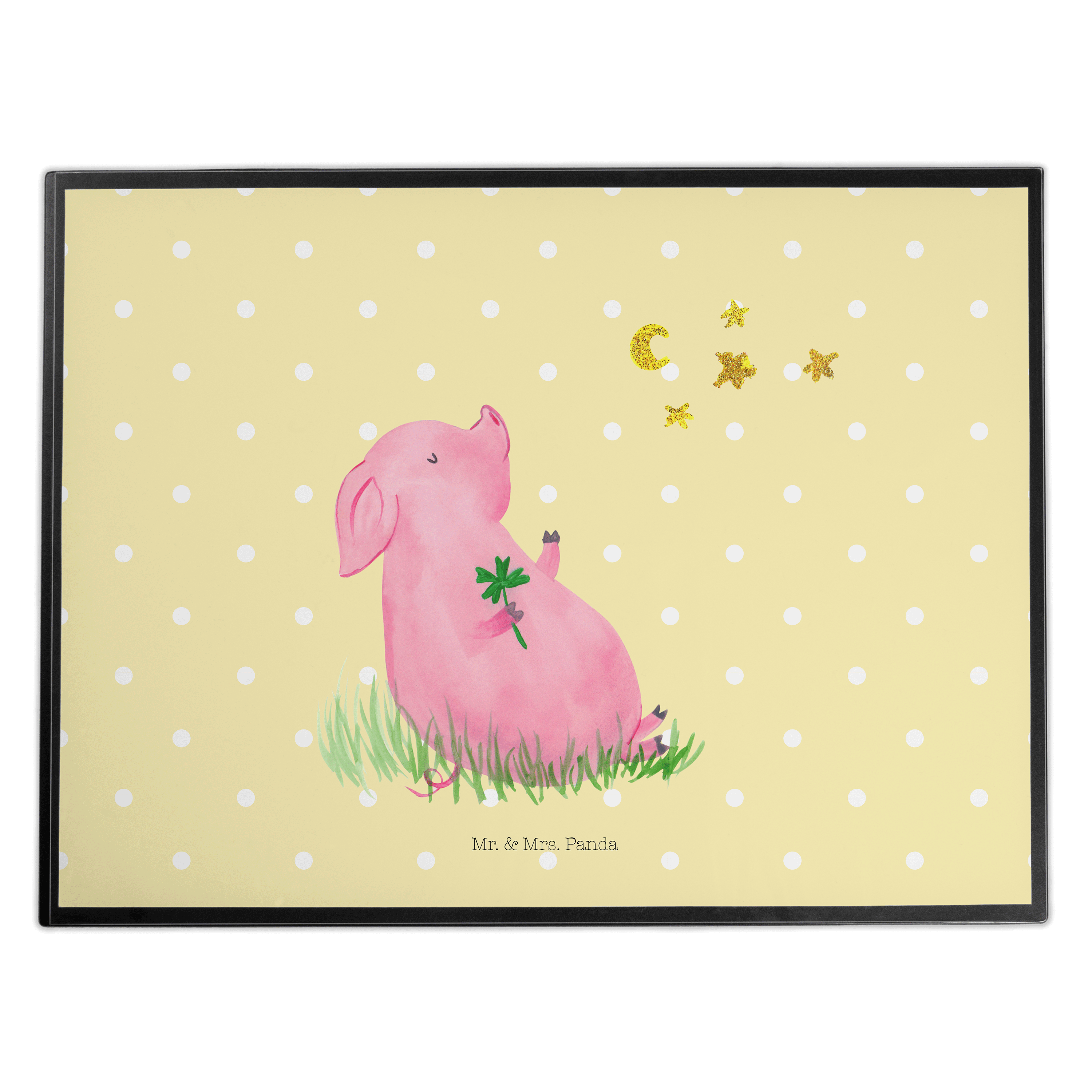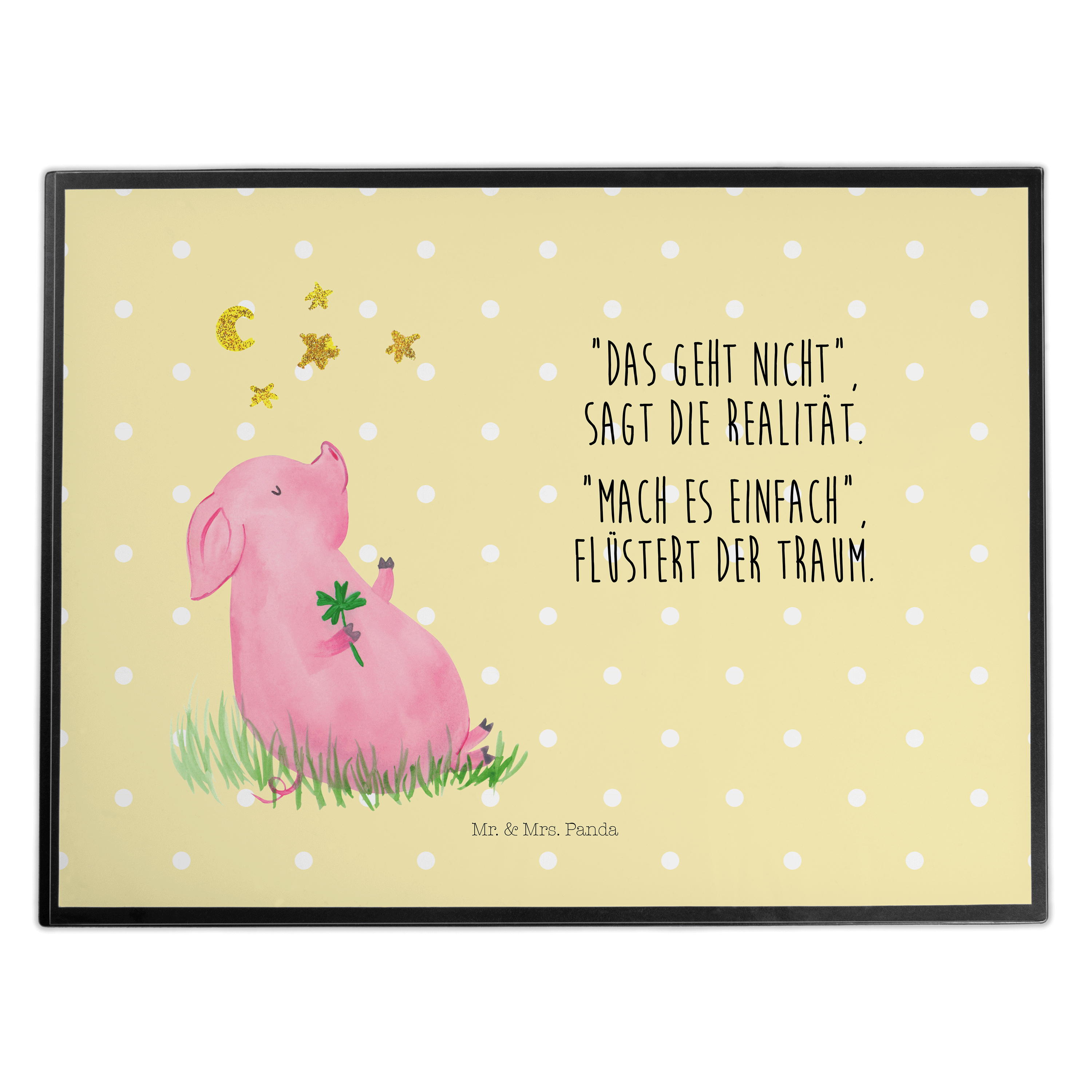 Schreibtischunterlage Glücksschwein - mit Spruch - Weiß