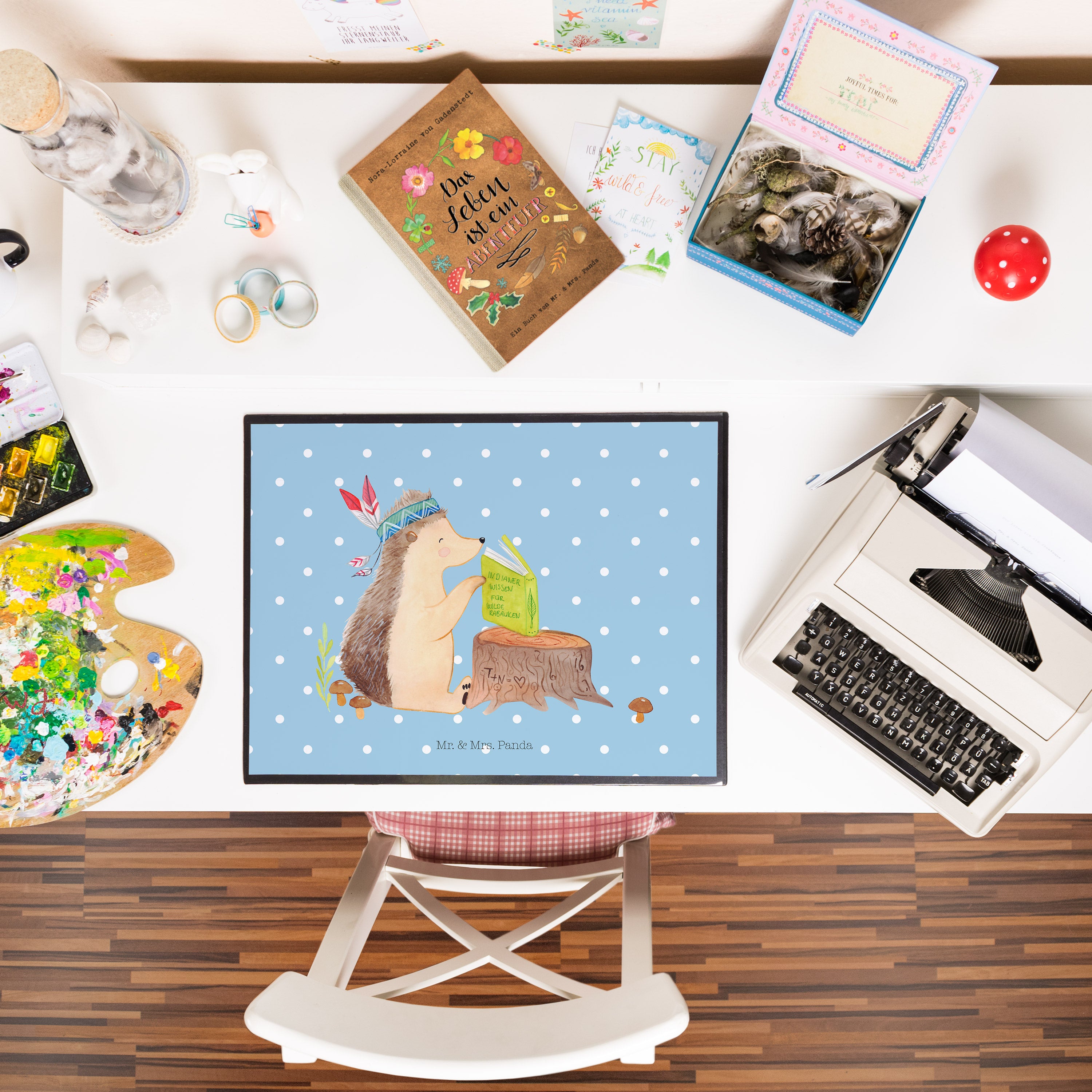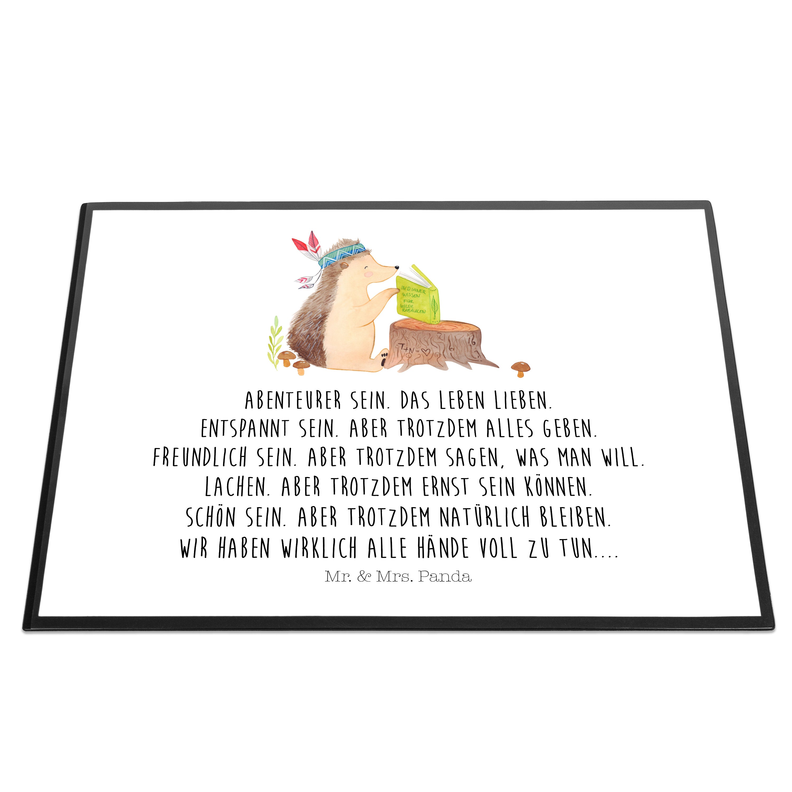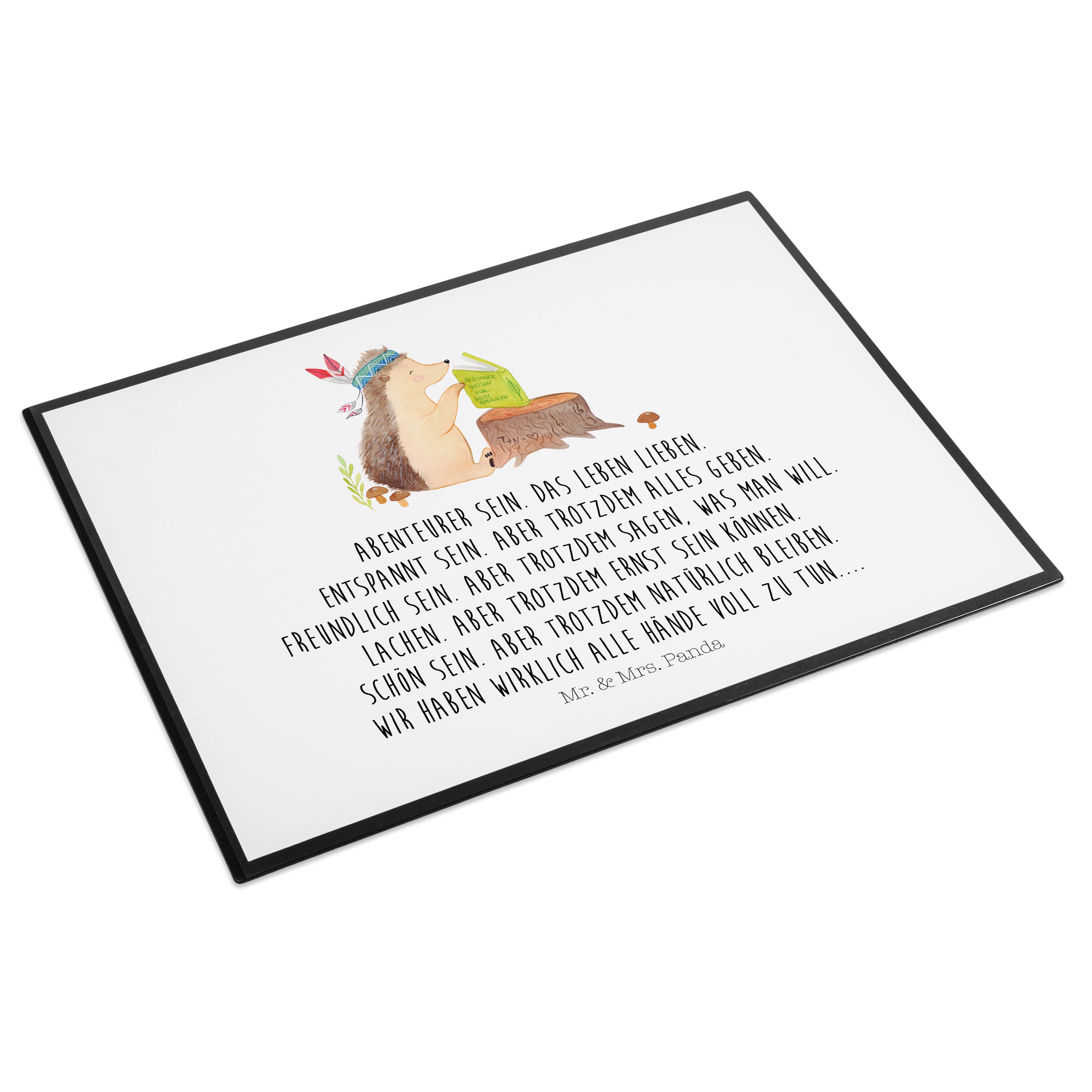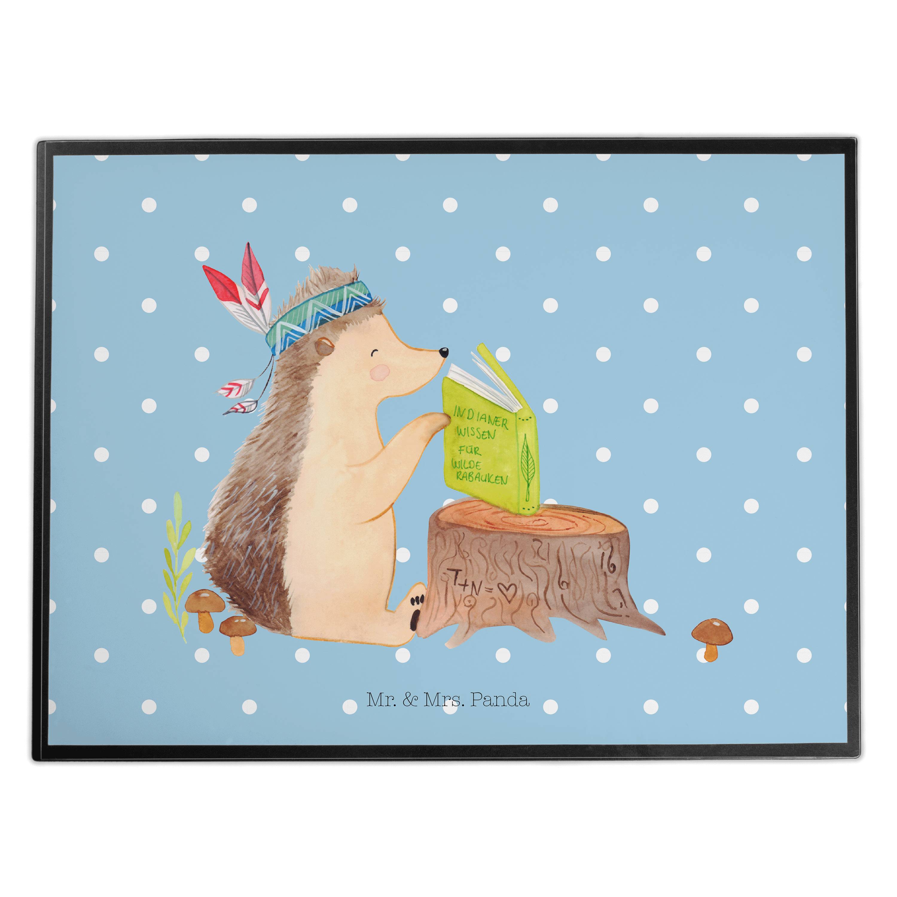 Schreibtischunterlage Igel Indianer - mit Spruch - Blau Pastell