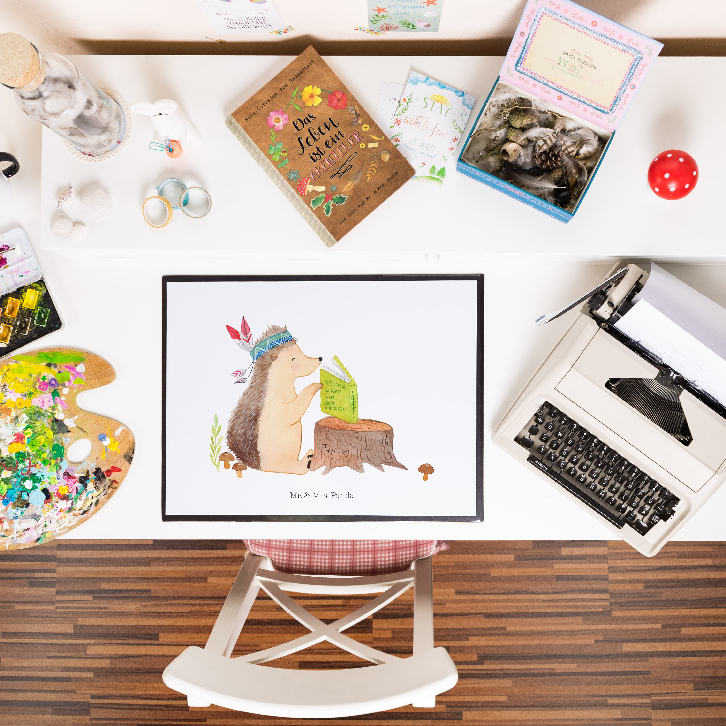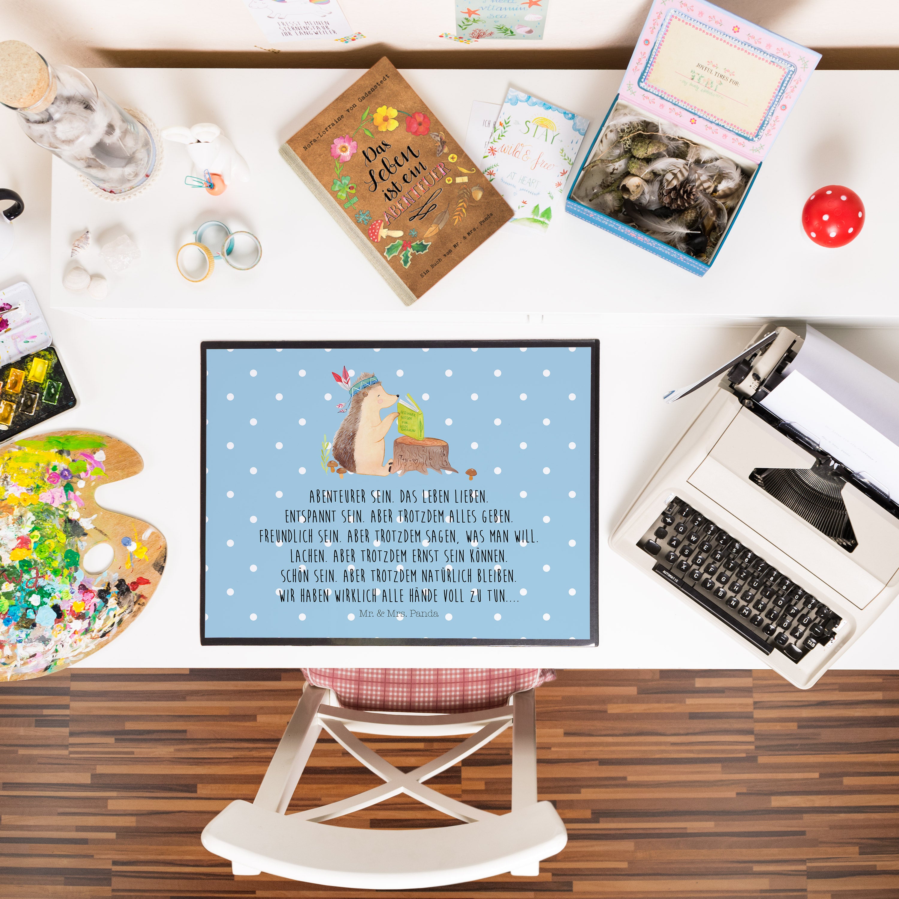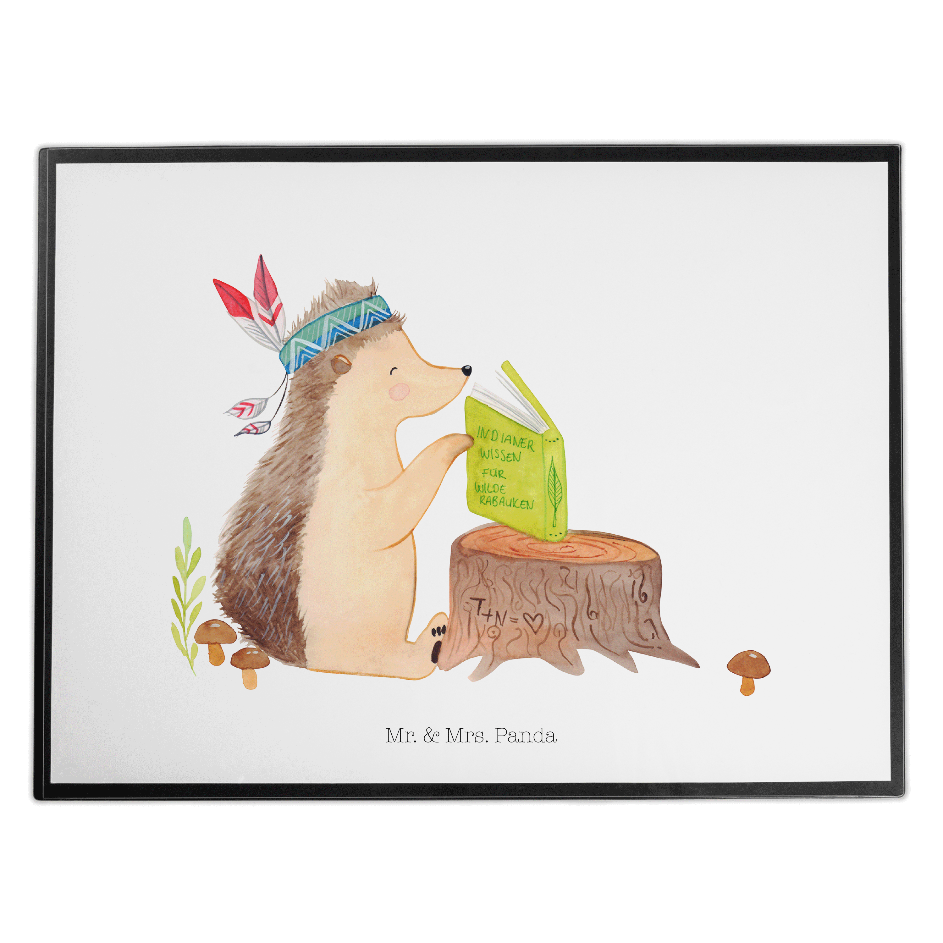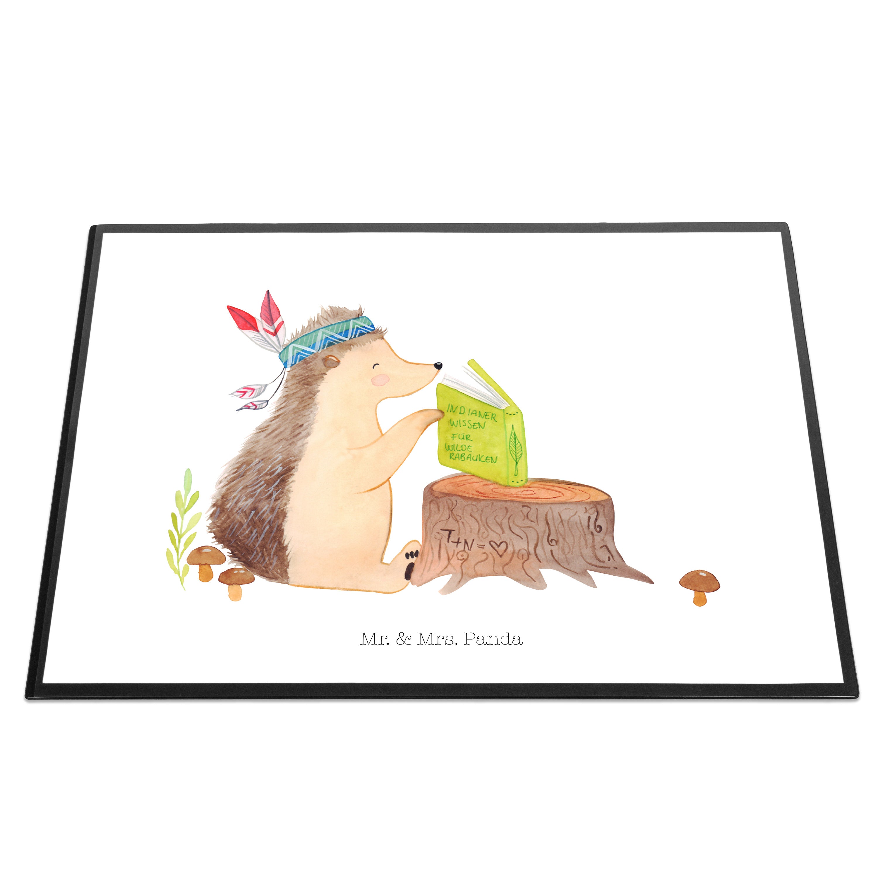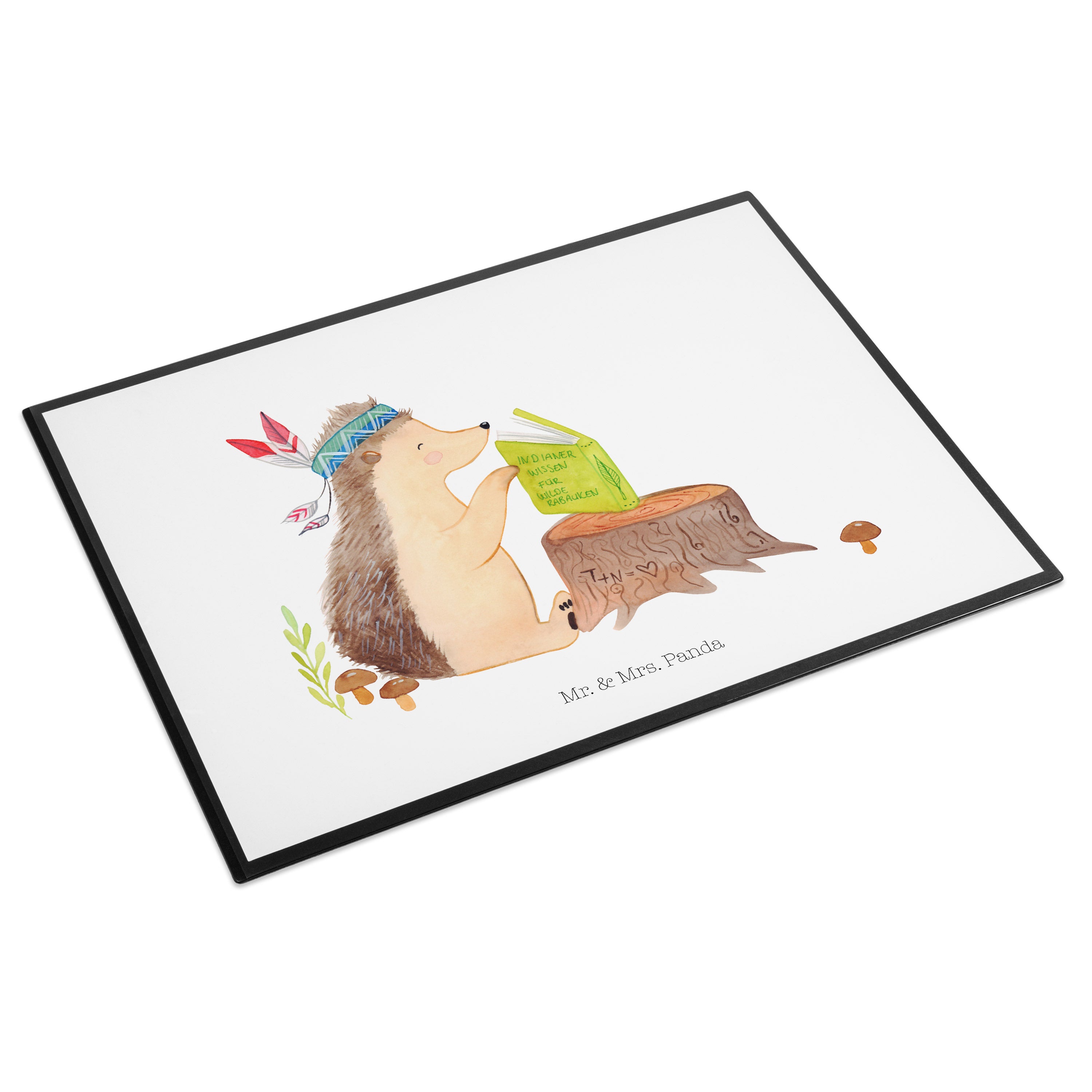 Schreibtischunterlage Igel Indianer - mit Spruch - Blau Pastell