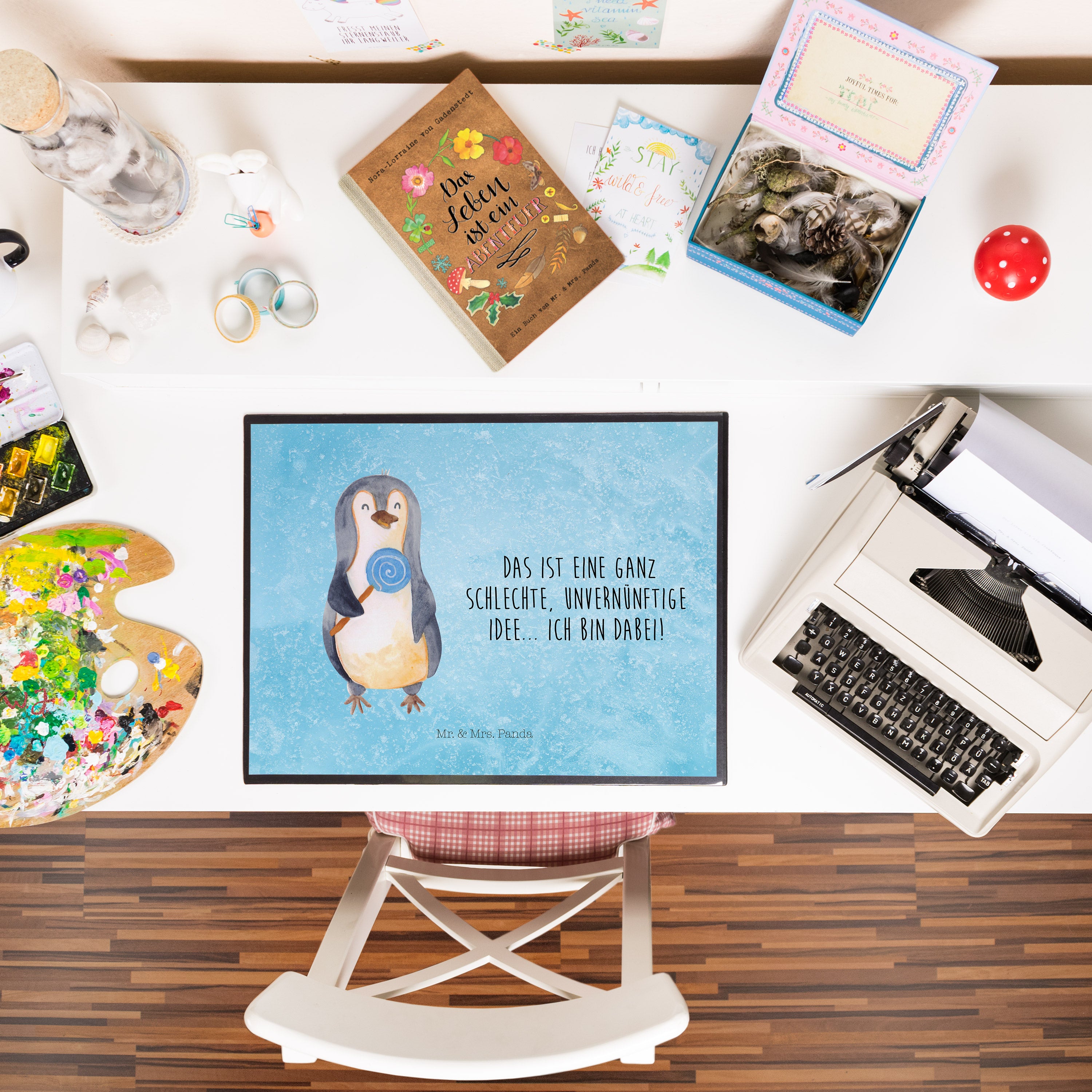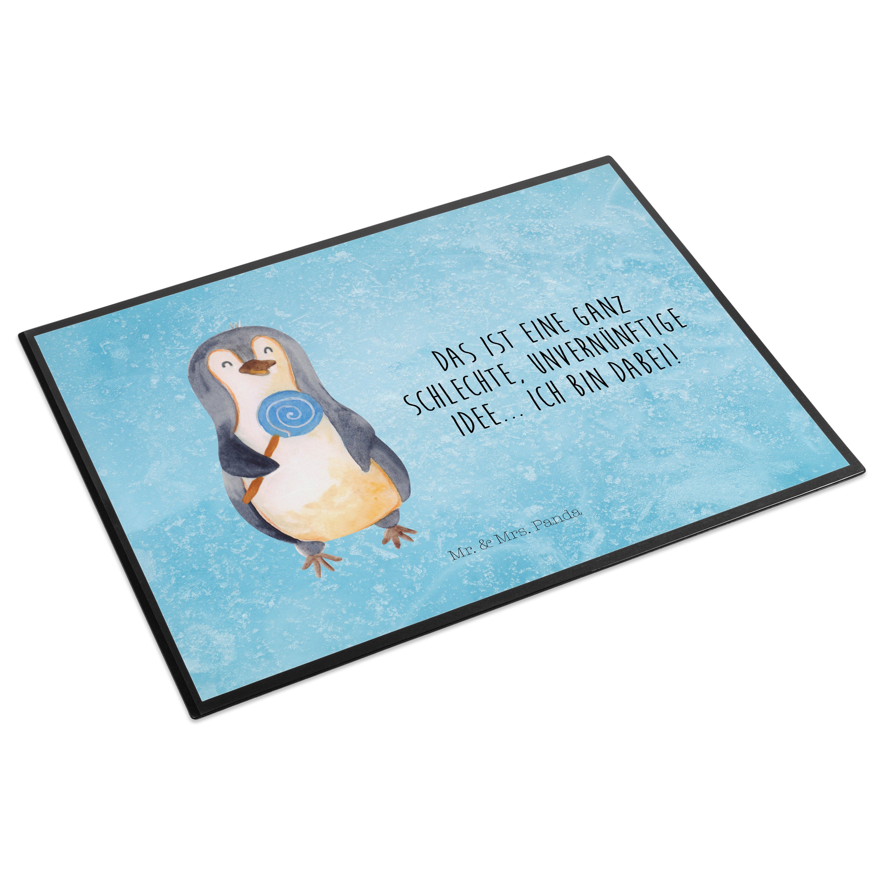 Schreibtischunterlage Pinguin Lolli - ohne Spruch - Eisblau