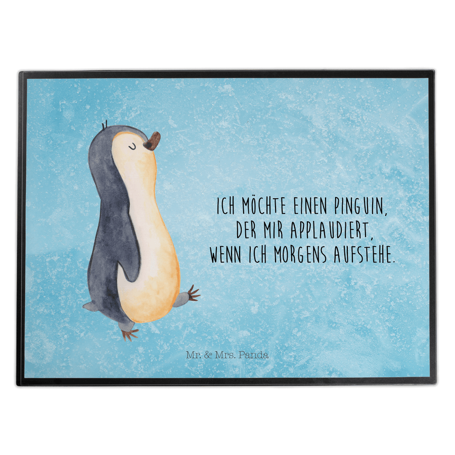 Schreibtischunterlage Pinguin marschierend - mit Spruch - Eisblau