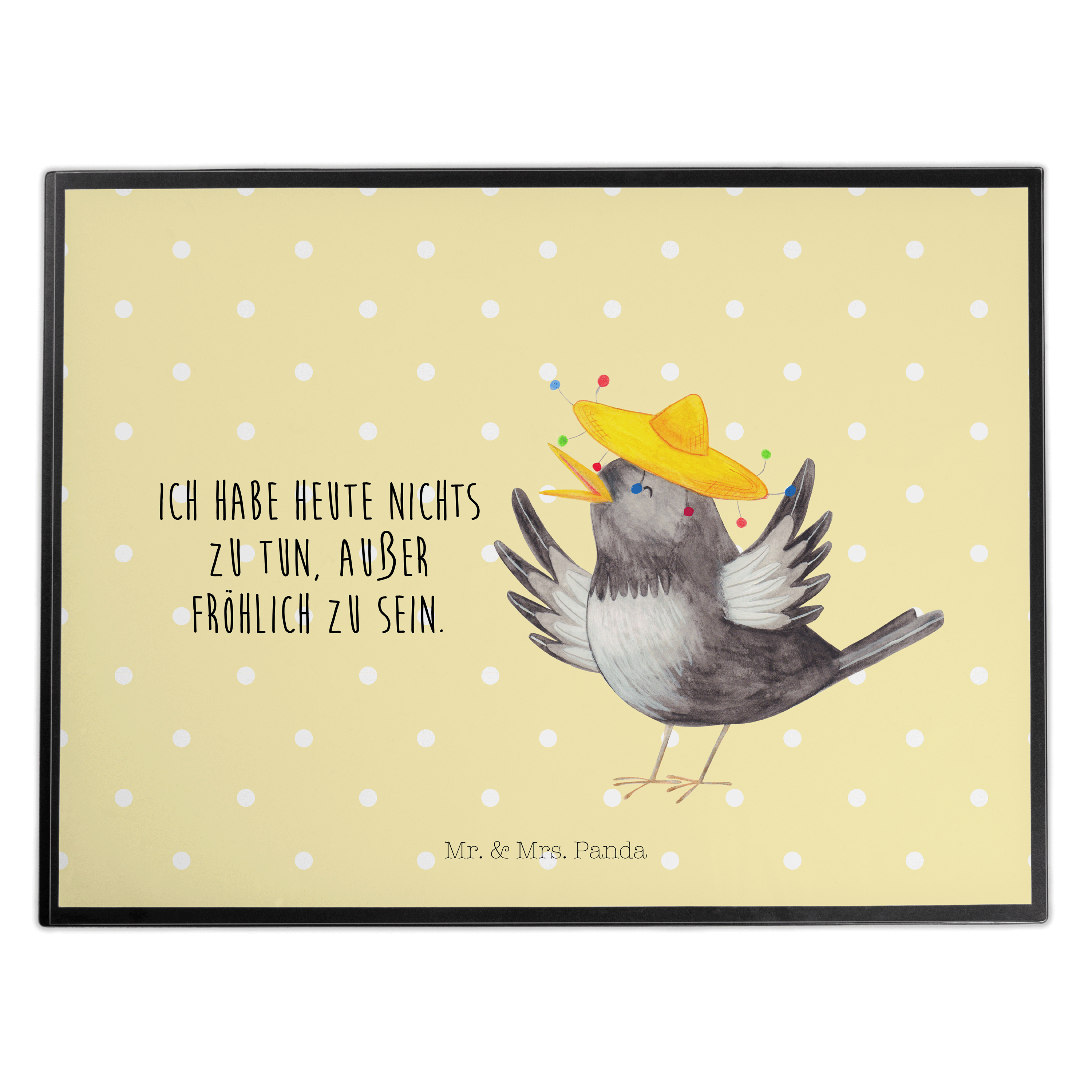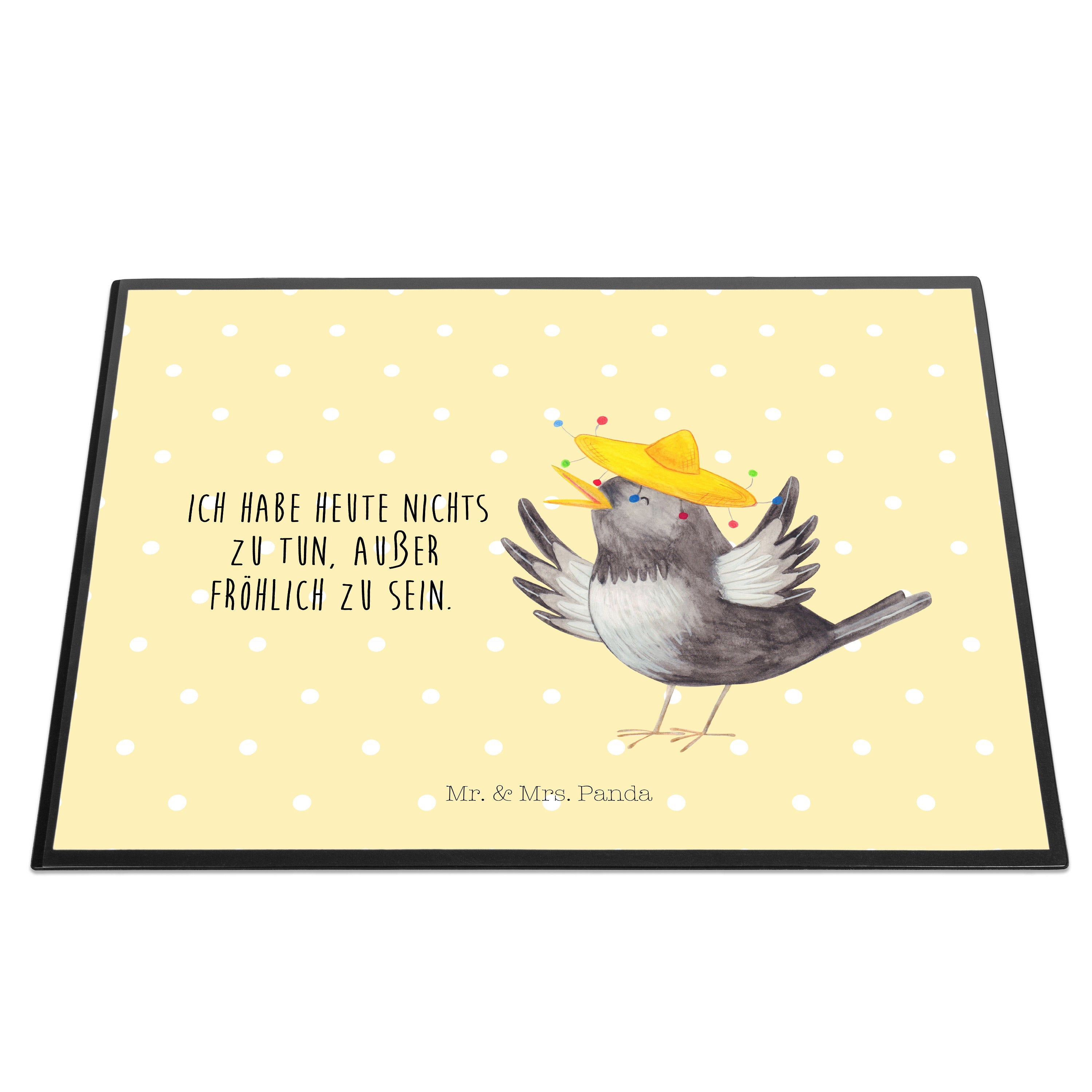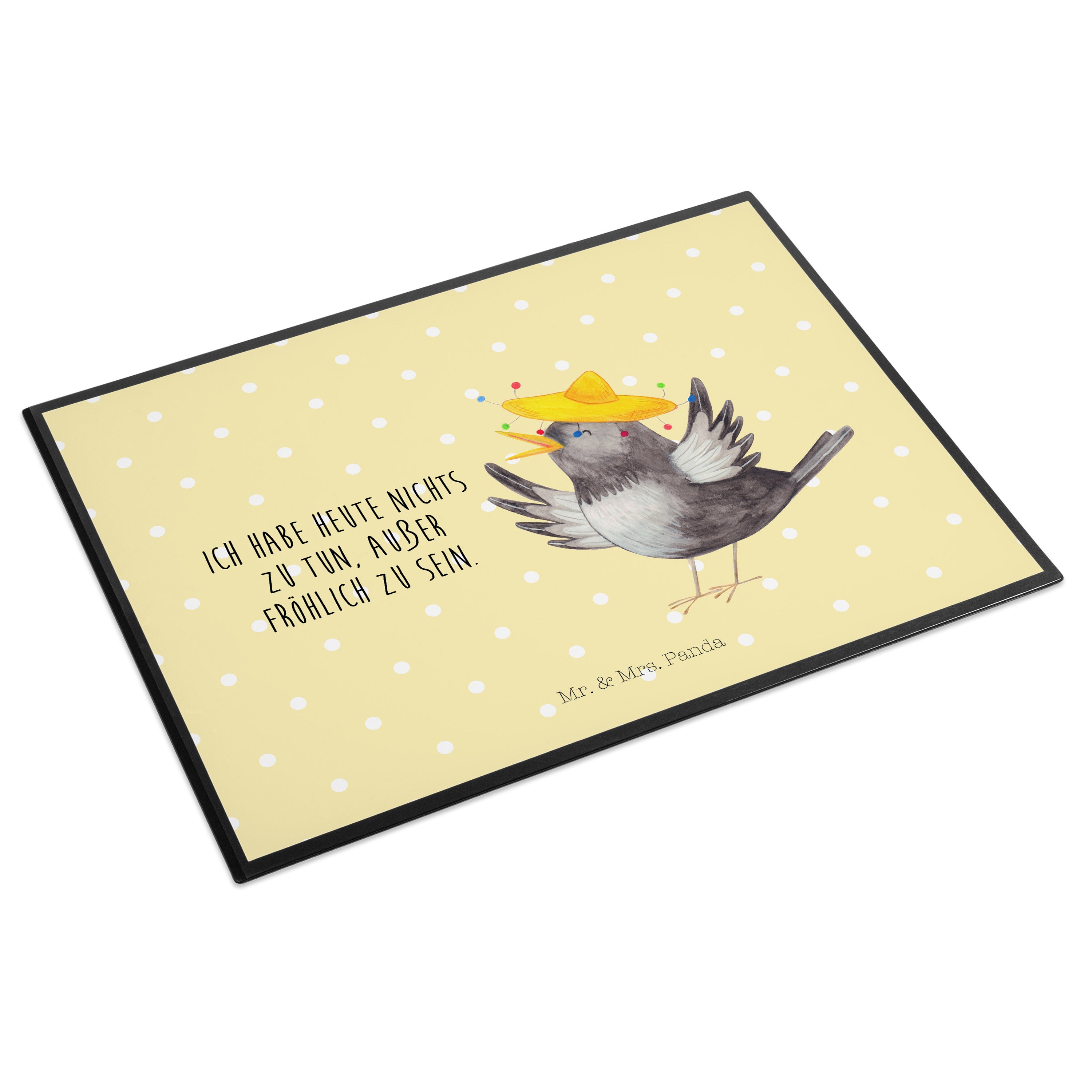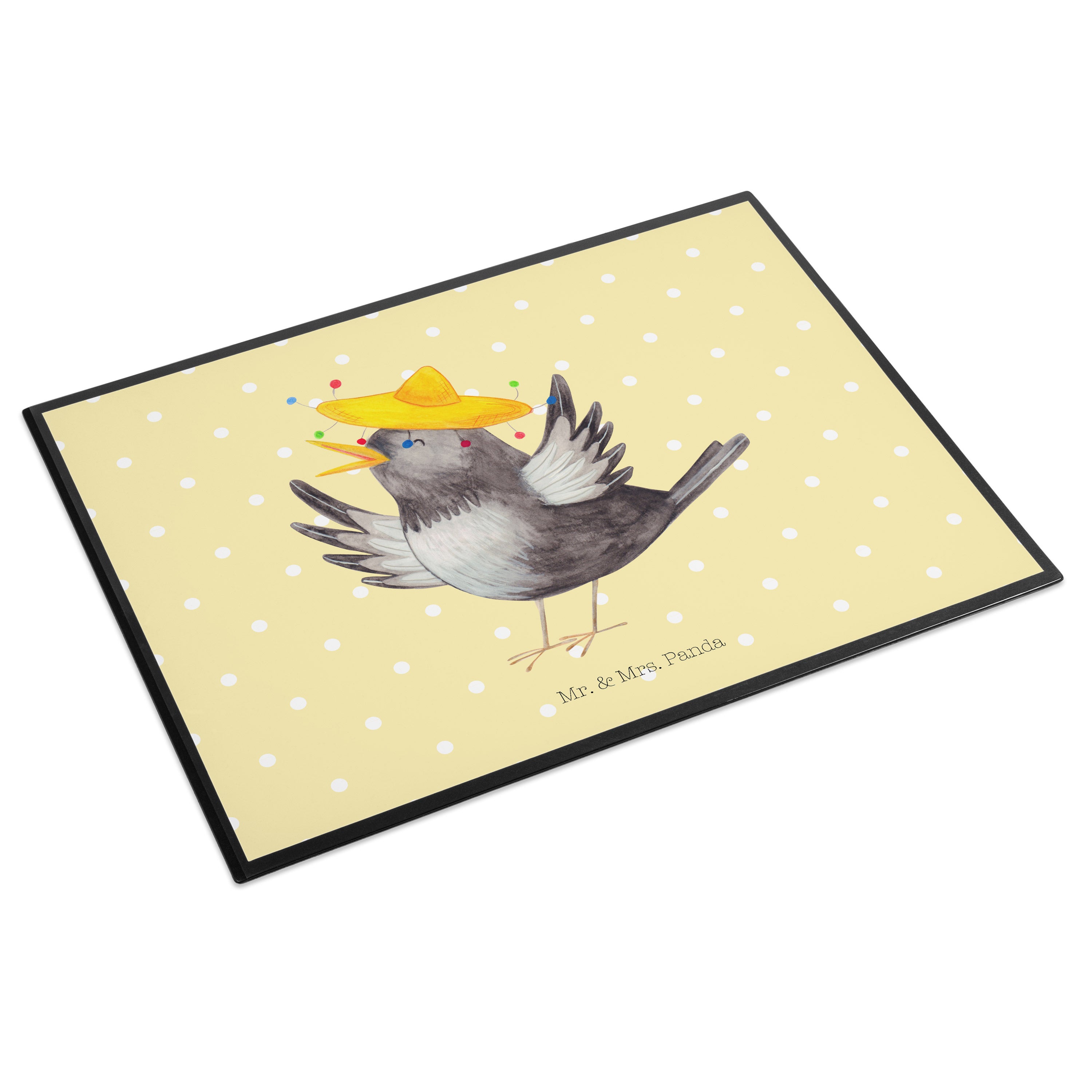 Schreibtischunterlage Rabe mit Sombrero - mit Spruch - Gelb Pastell