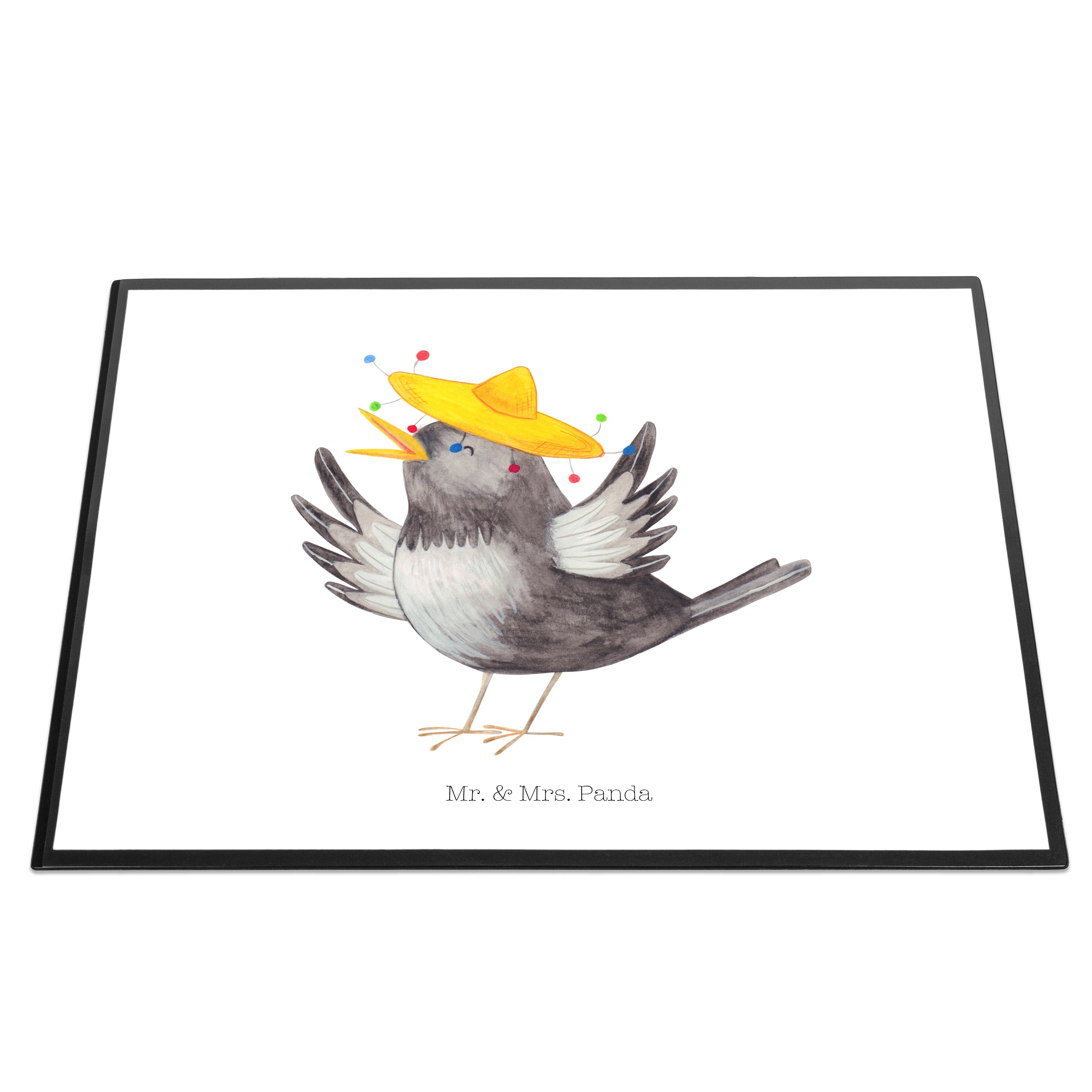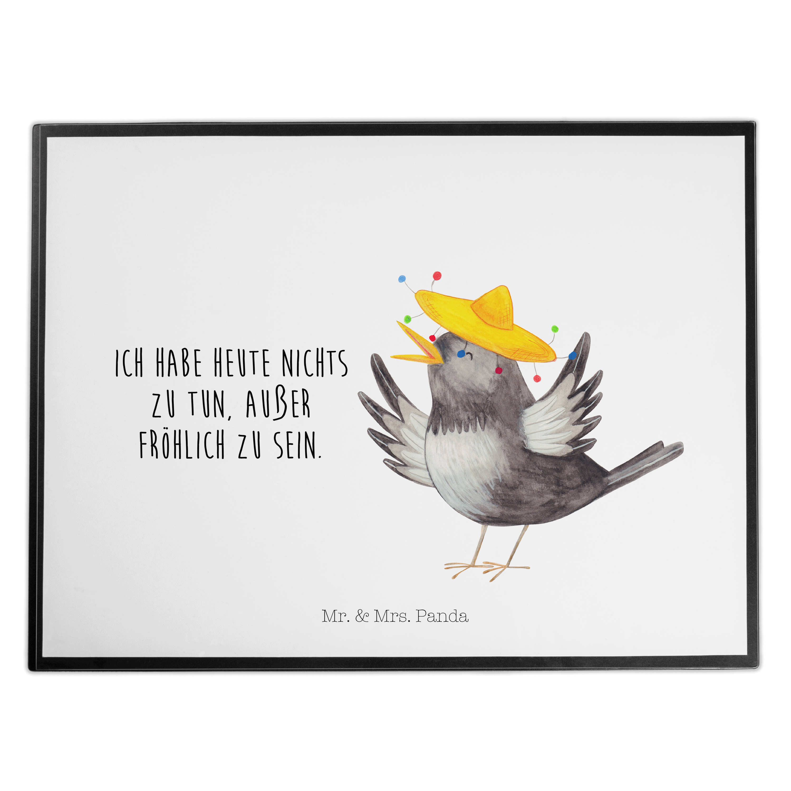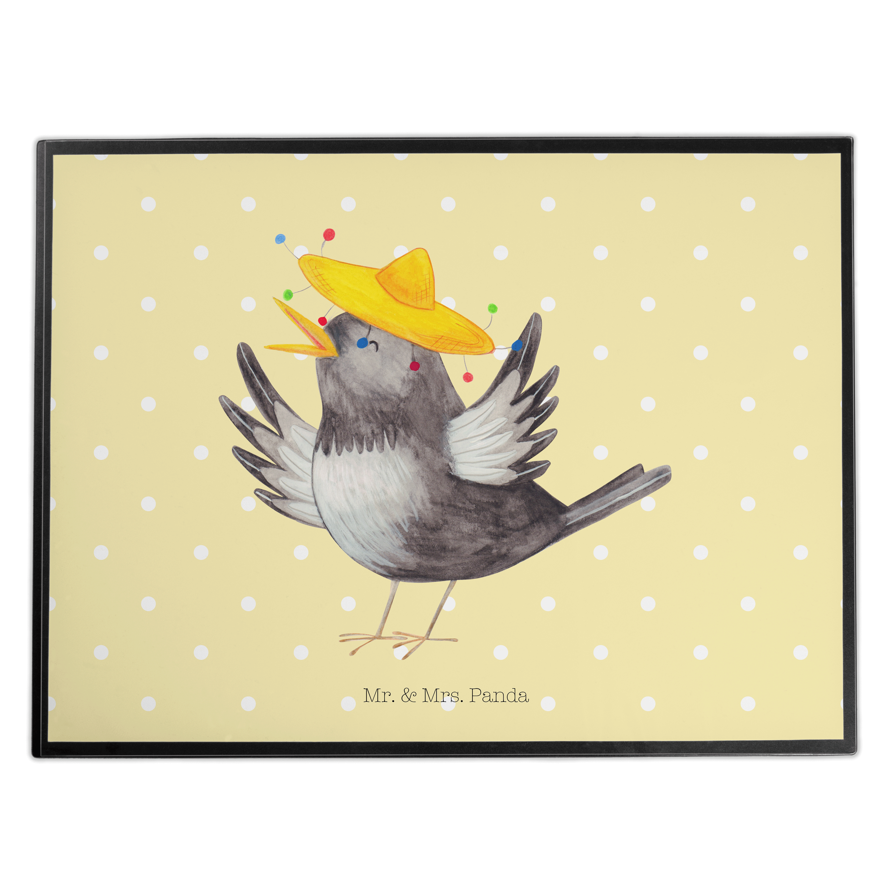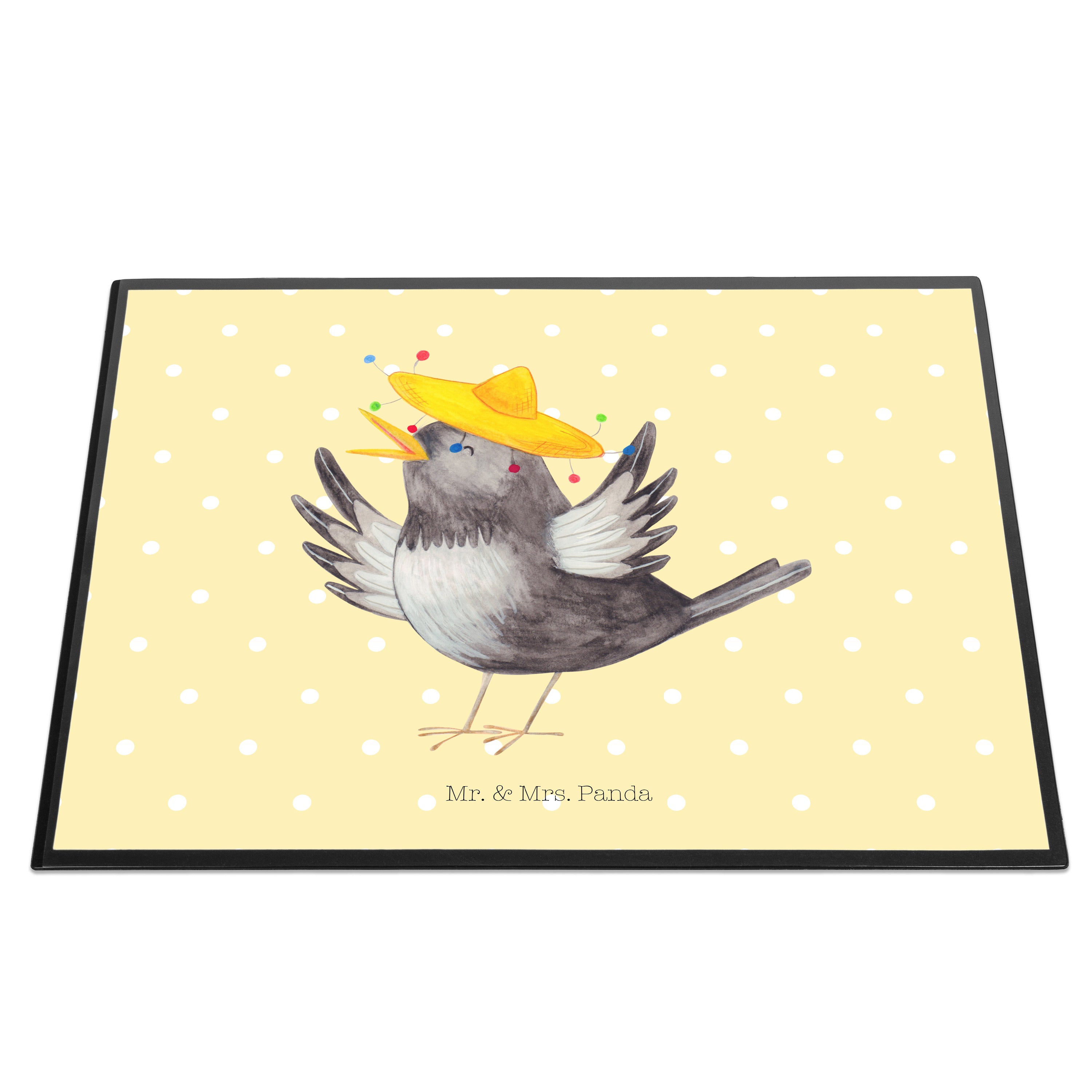 Schreibtischunterlage Rabe mit Sombrero - mit Spruch - Gelb Pastell