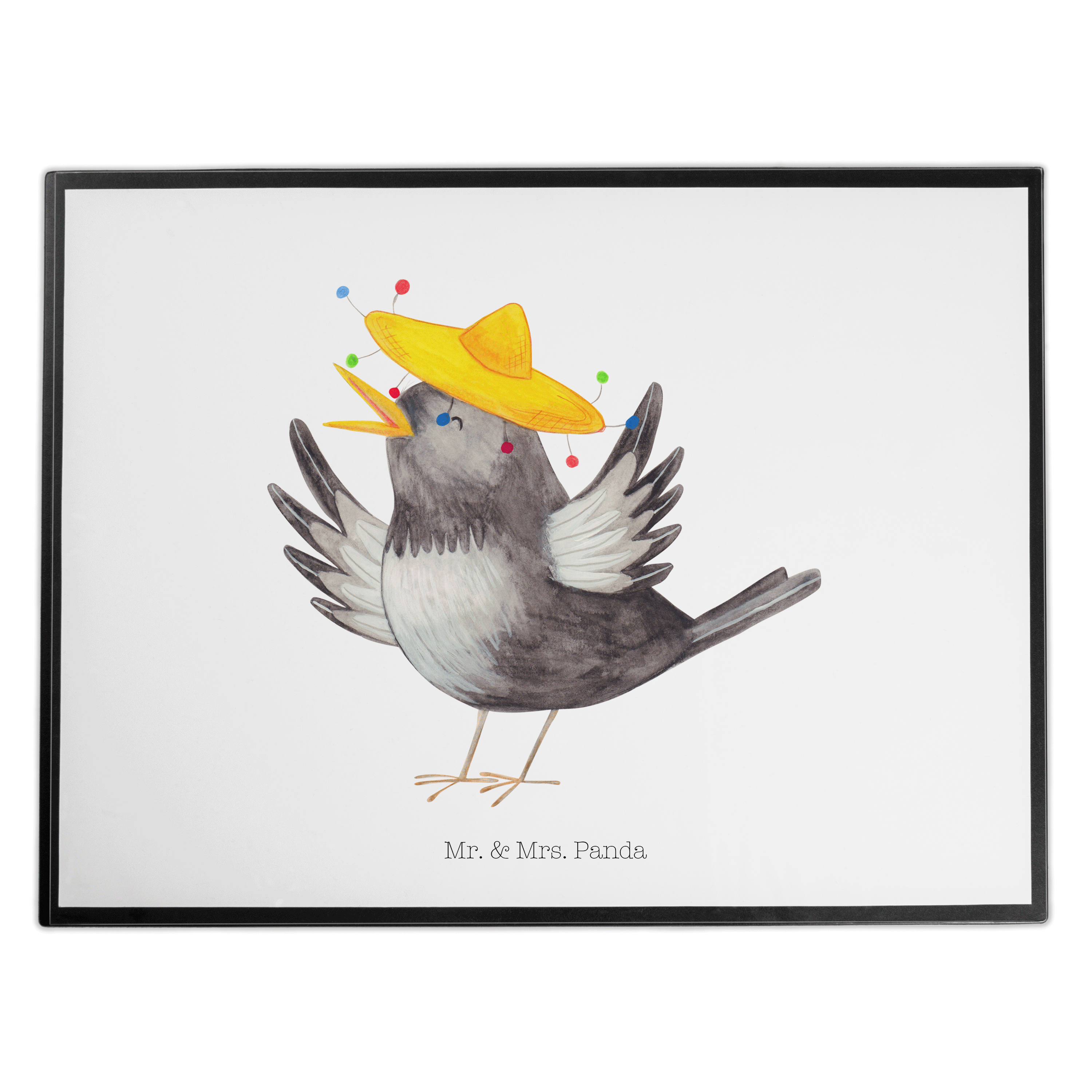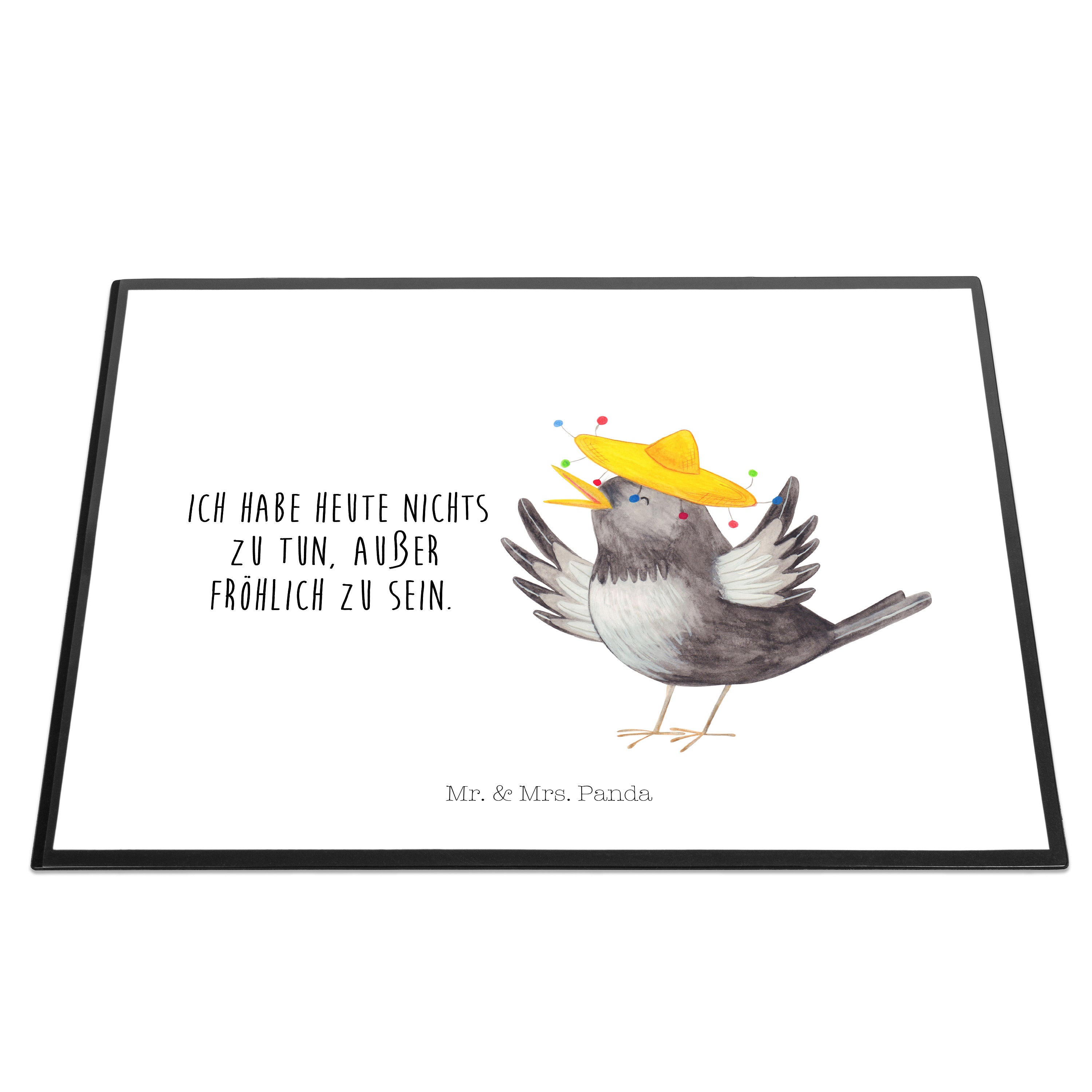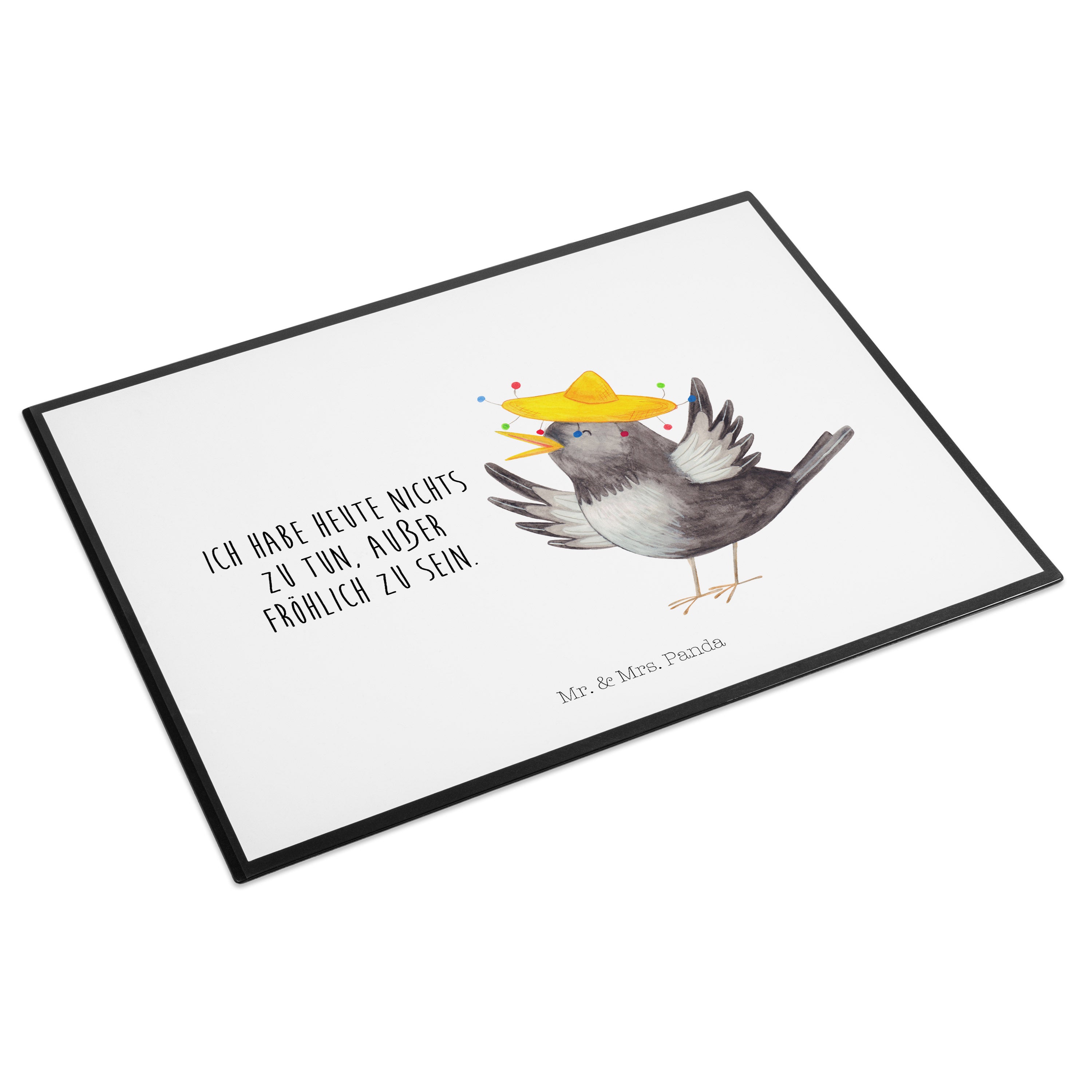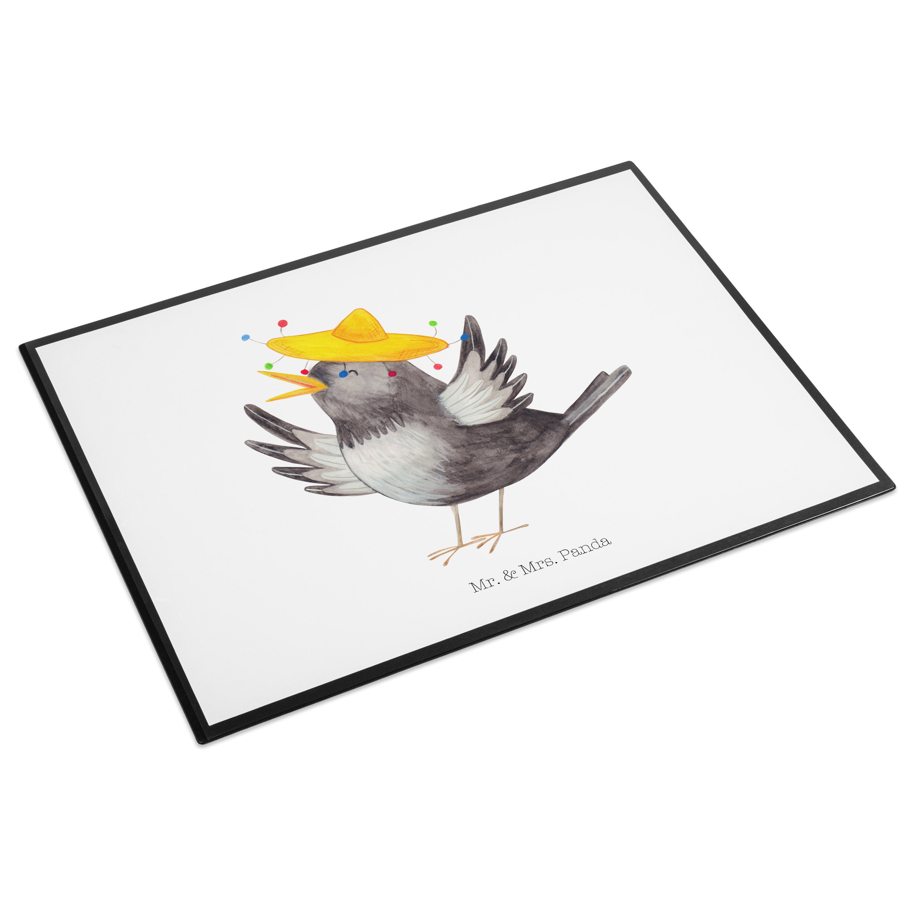 Schreibtischunterlage Rabe mit Sombrero - mit Spruch - Gelb Pastell