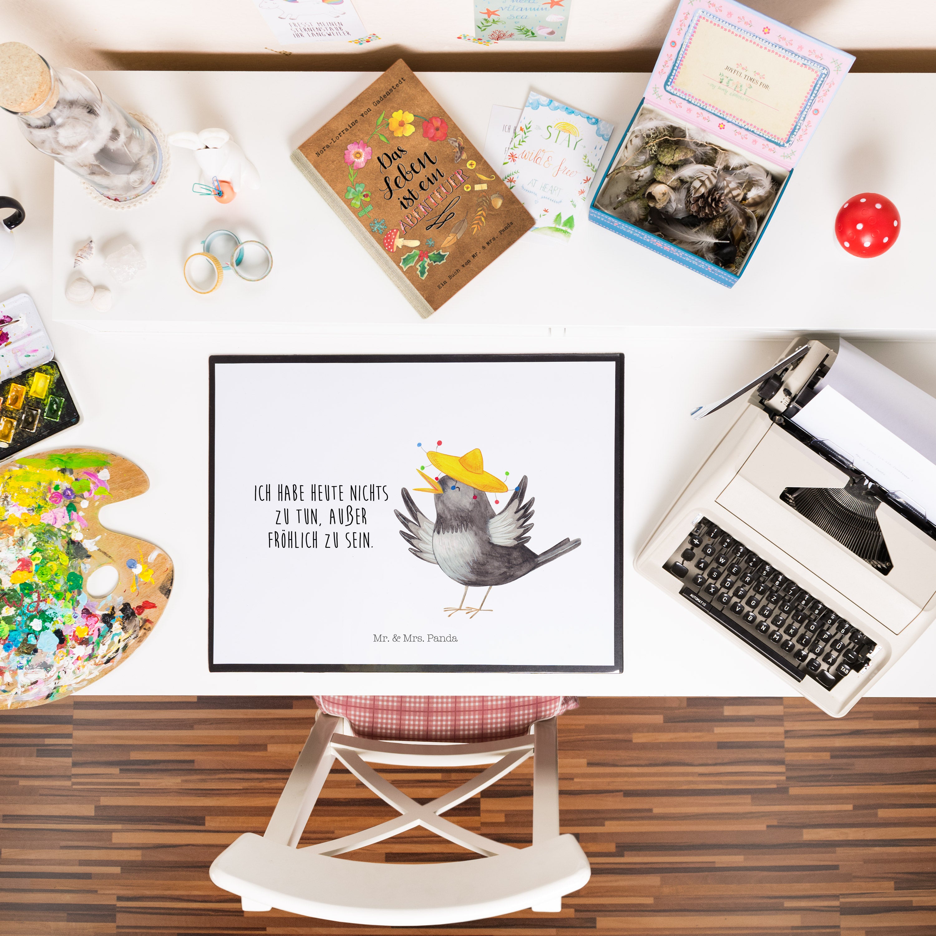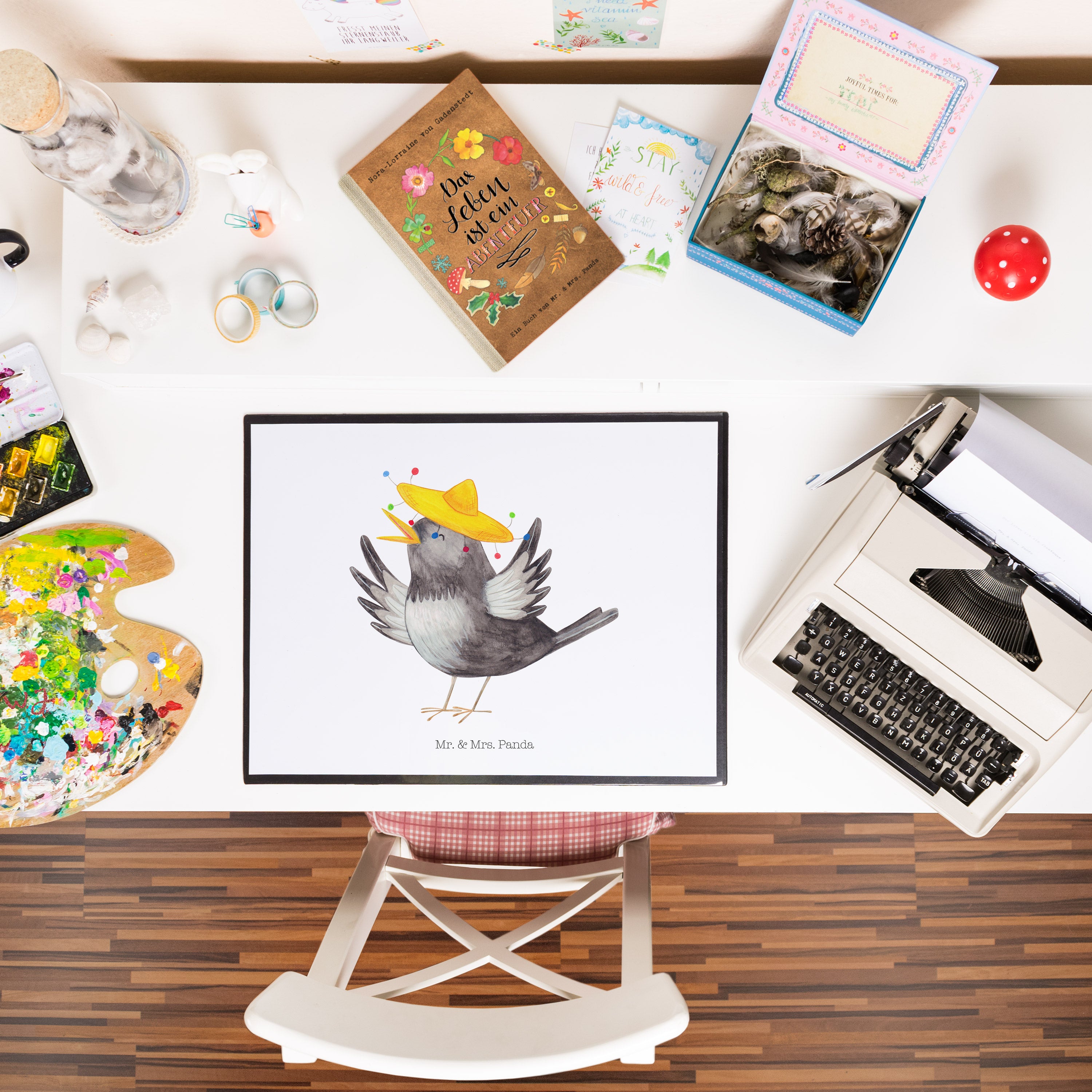 Dieser putzige Rabe mit einem lustigen Sombrero auf dem Kopf lässt dein Herz höher schlagen. Mit seinen freudigen Tanzbewegungen verbreitet er sofort gute Laune bei dir und lädt zum Schmunzeln ein. Die Zeichnung des liebenswerten Motivs "Rabe mit Sombrero" von Mr. & Mrs. Panda versprüht Lebensfreude und sorgt für ein grinsen in deinem Gesicht.