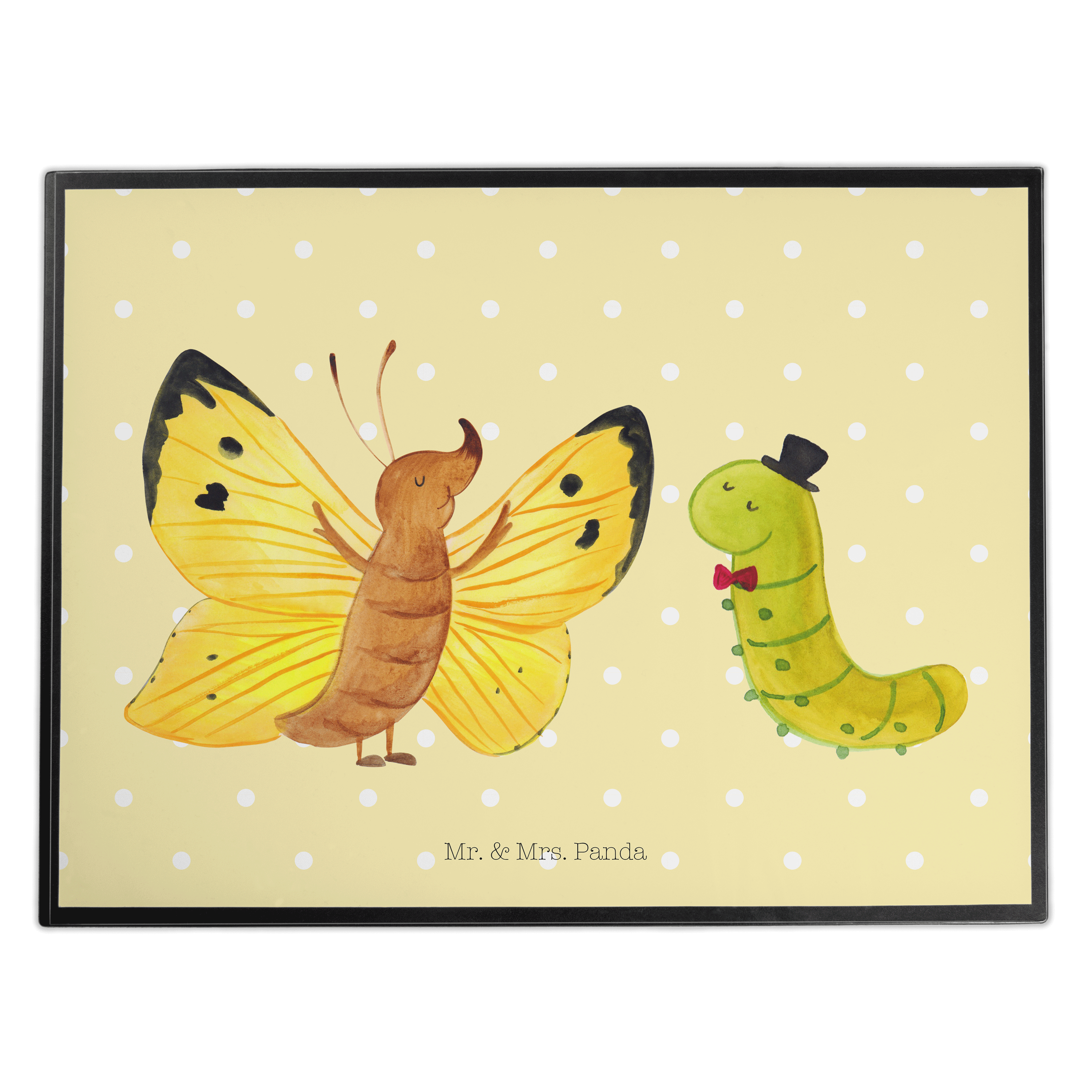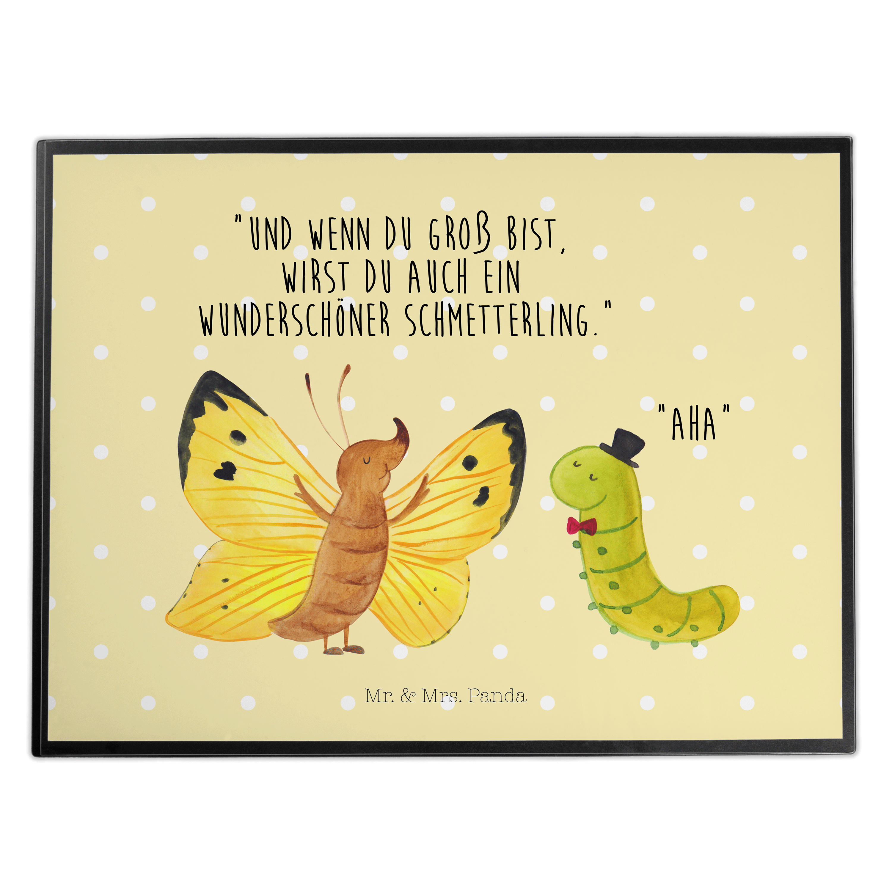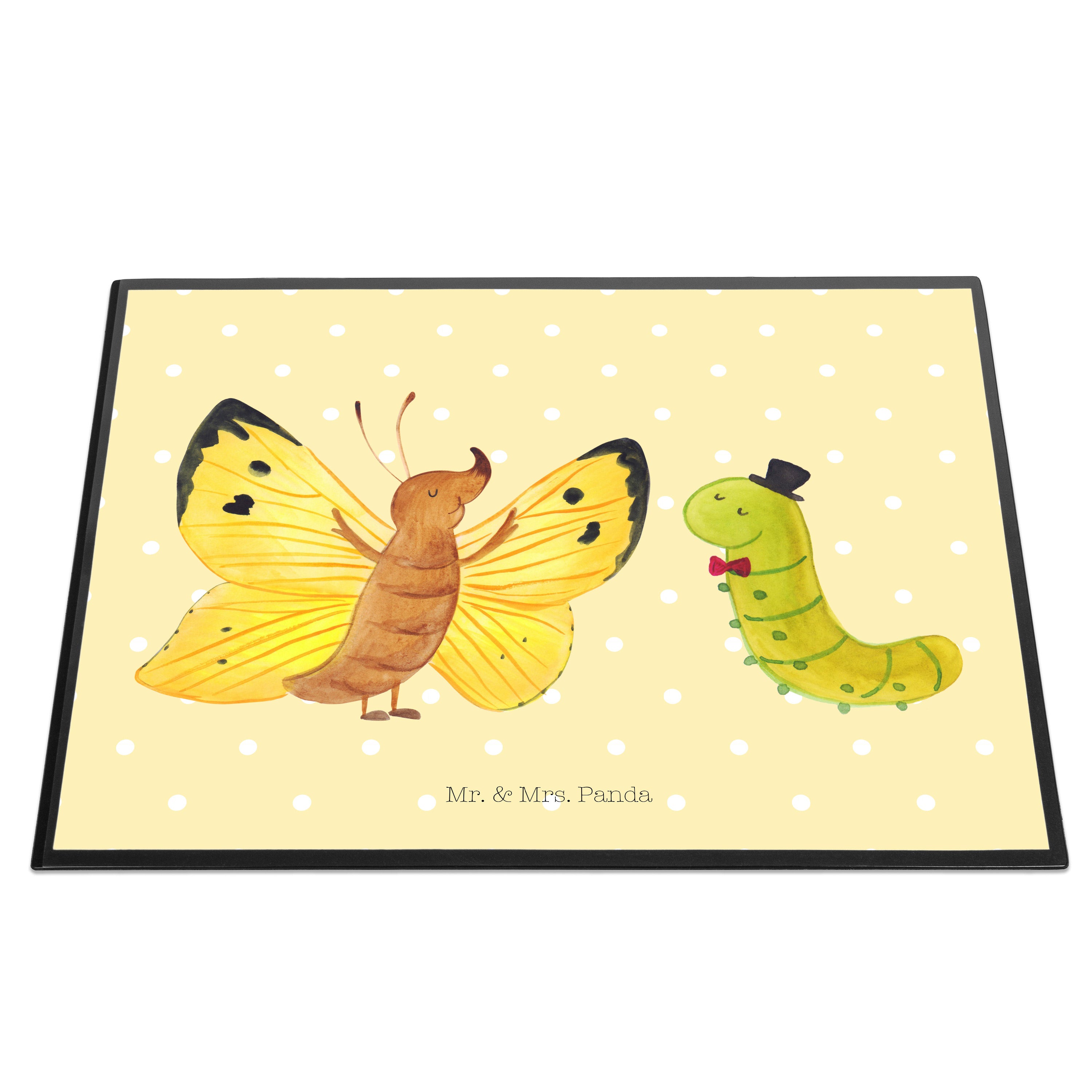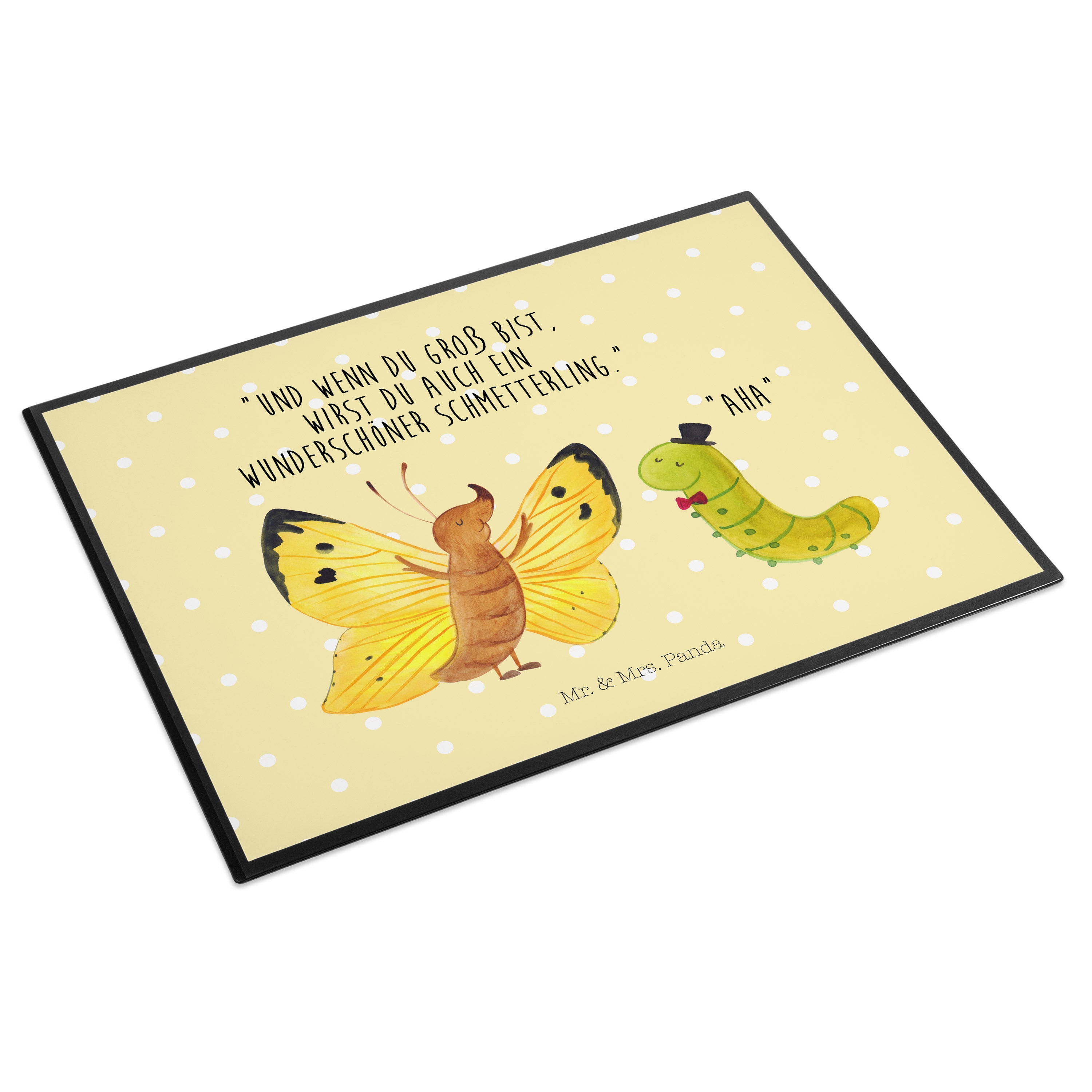 Schreibtischunterlage Raupe & Schmetterling - mit Spruch - Gelb Pastell