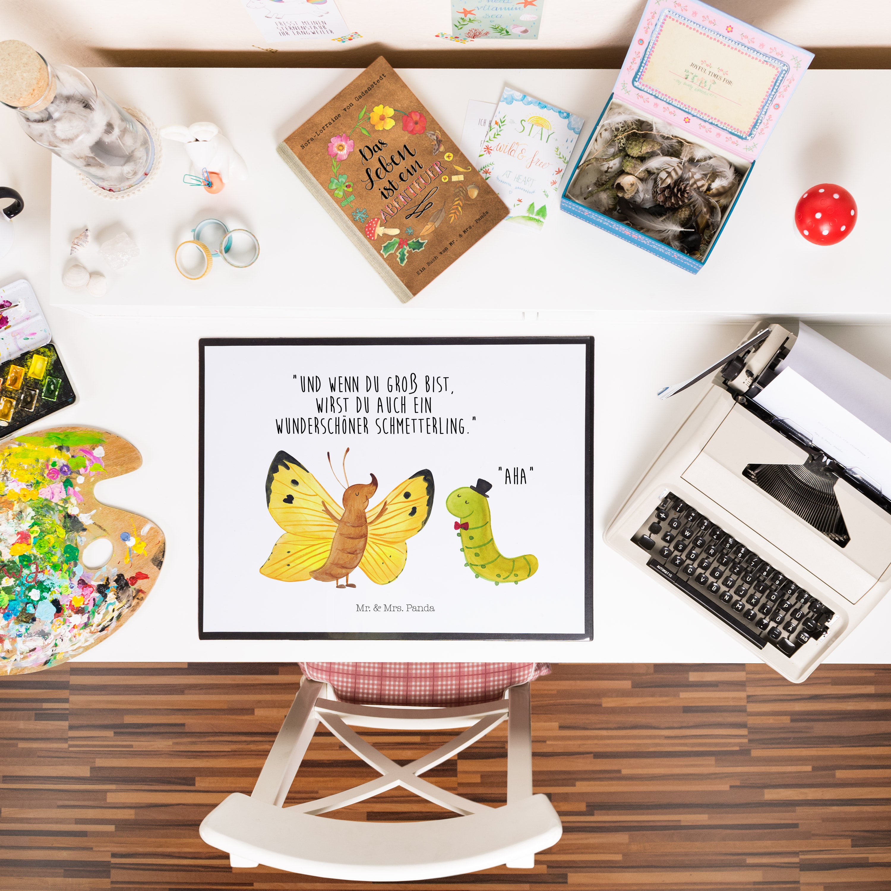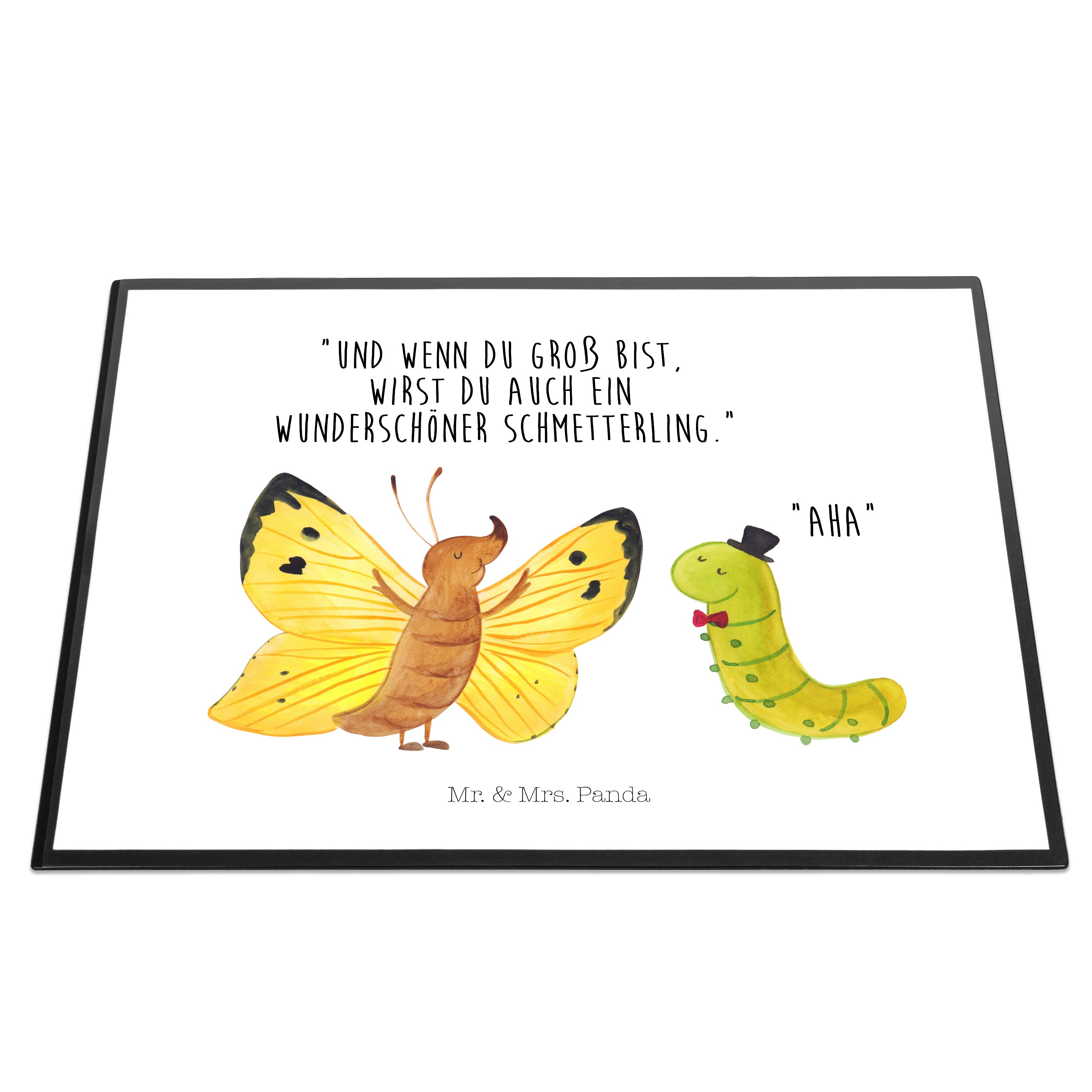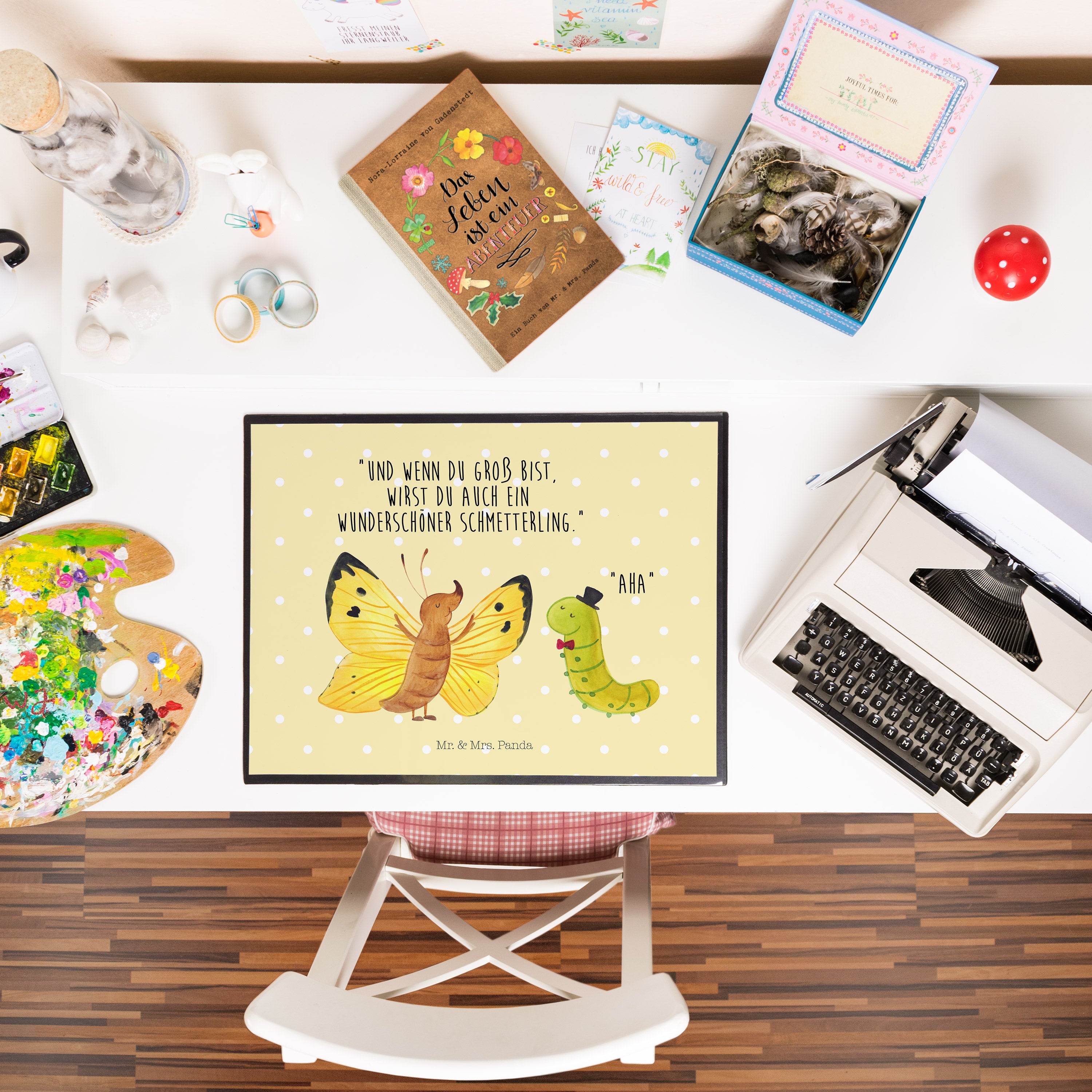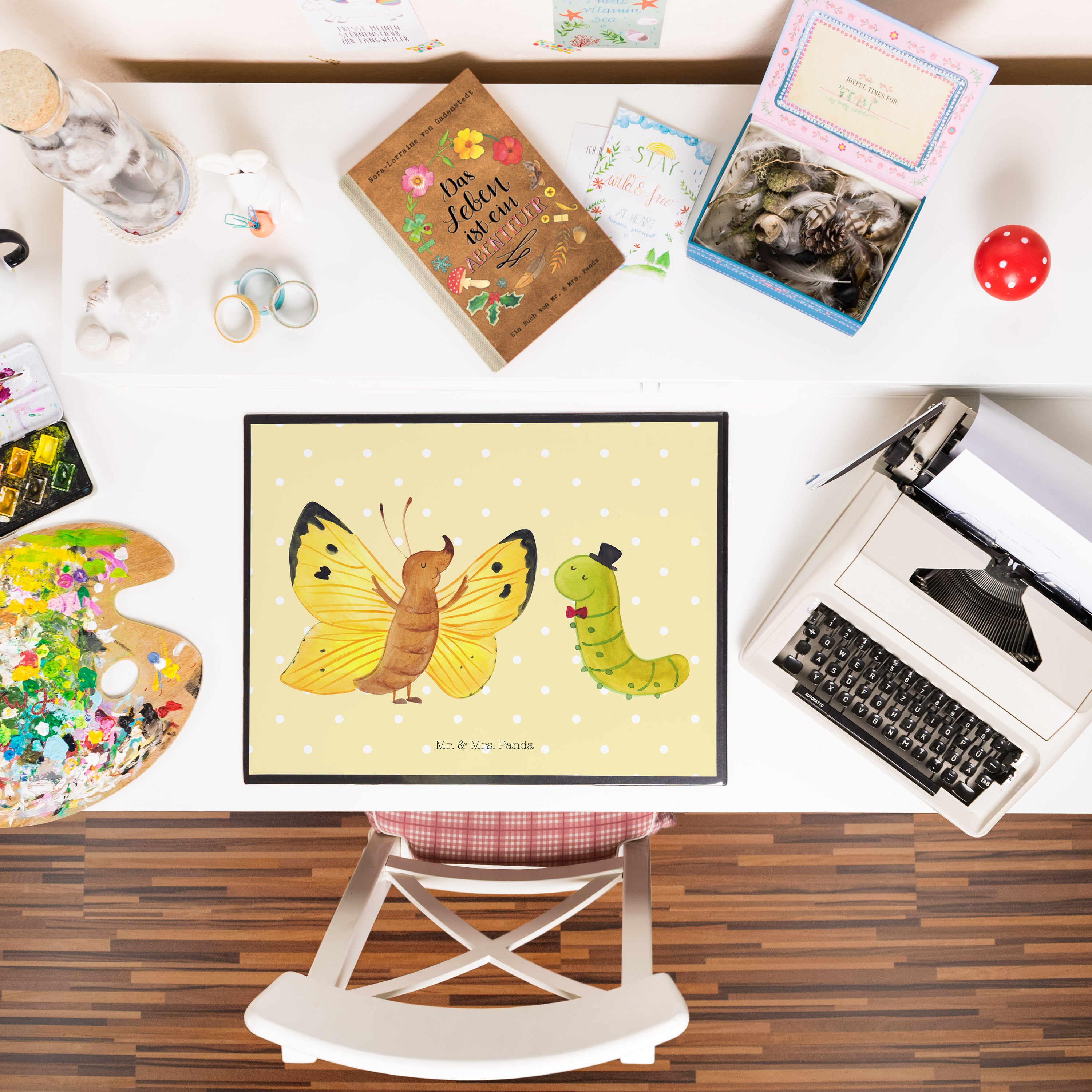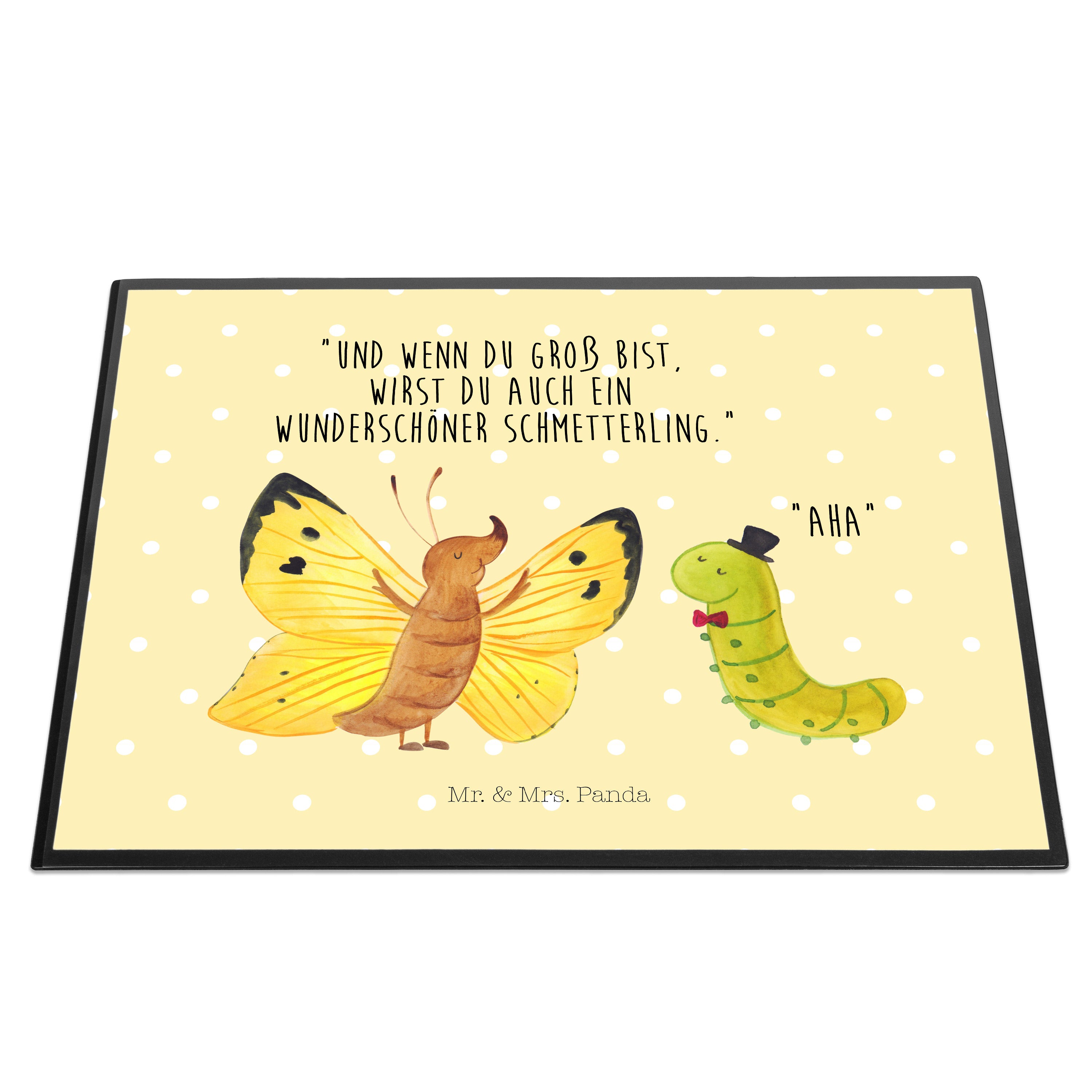 Schreibtischunterlage Raupe & Schmetterling - mit Spruch - Gelb Pastell