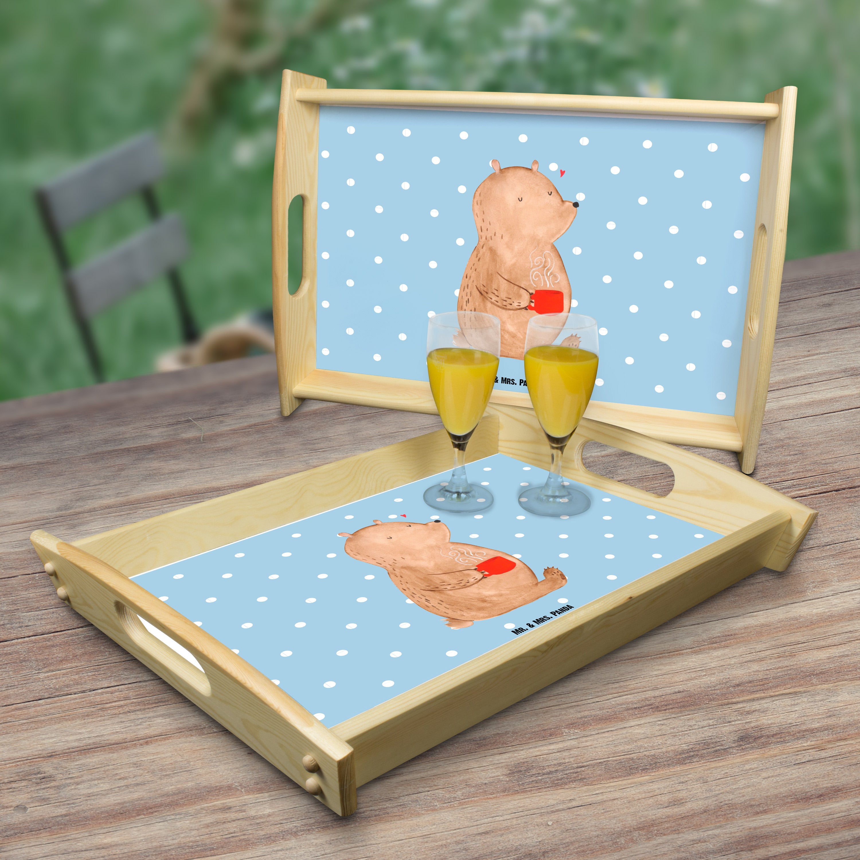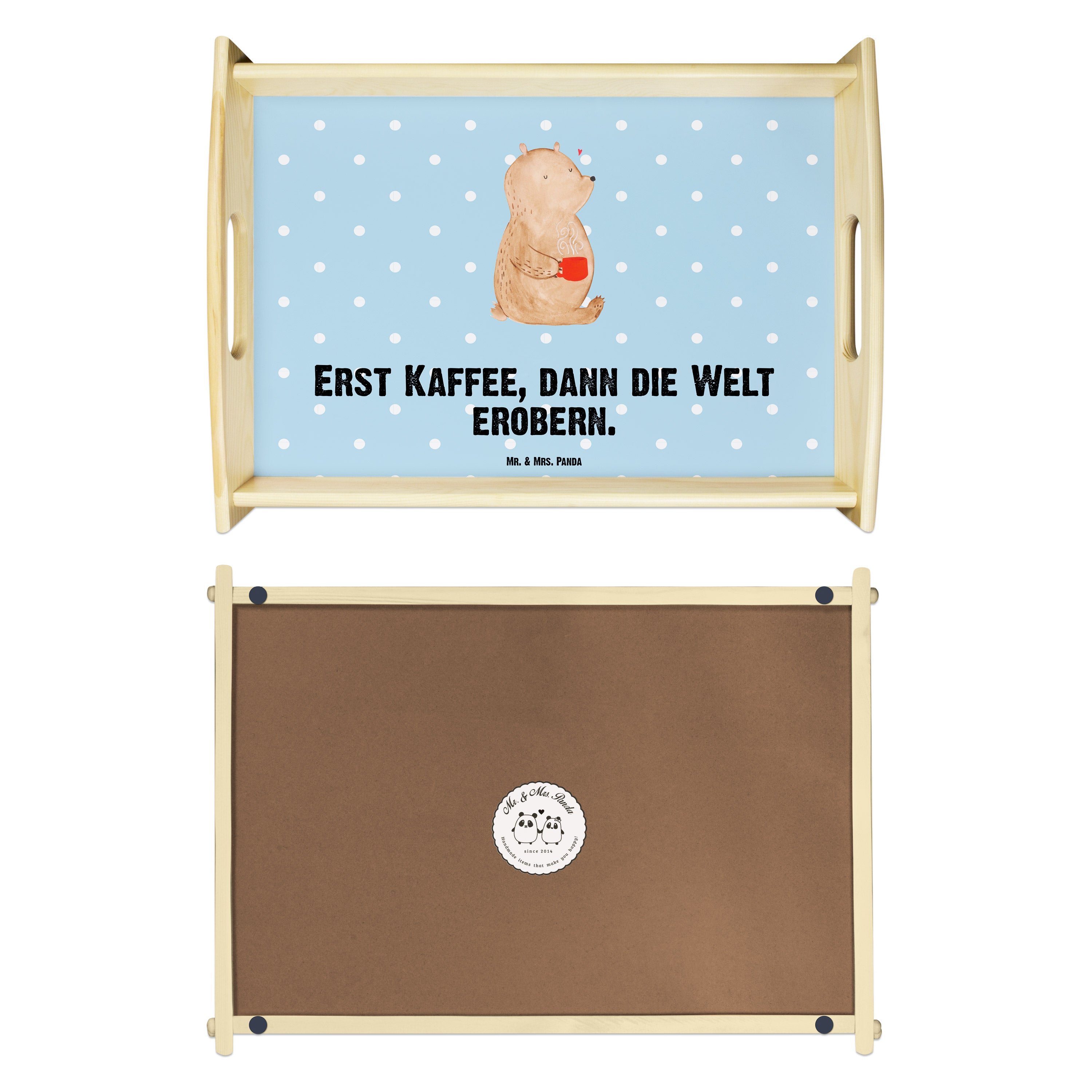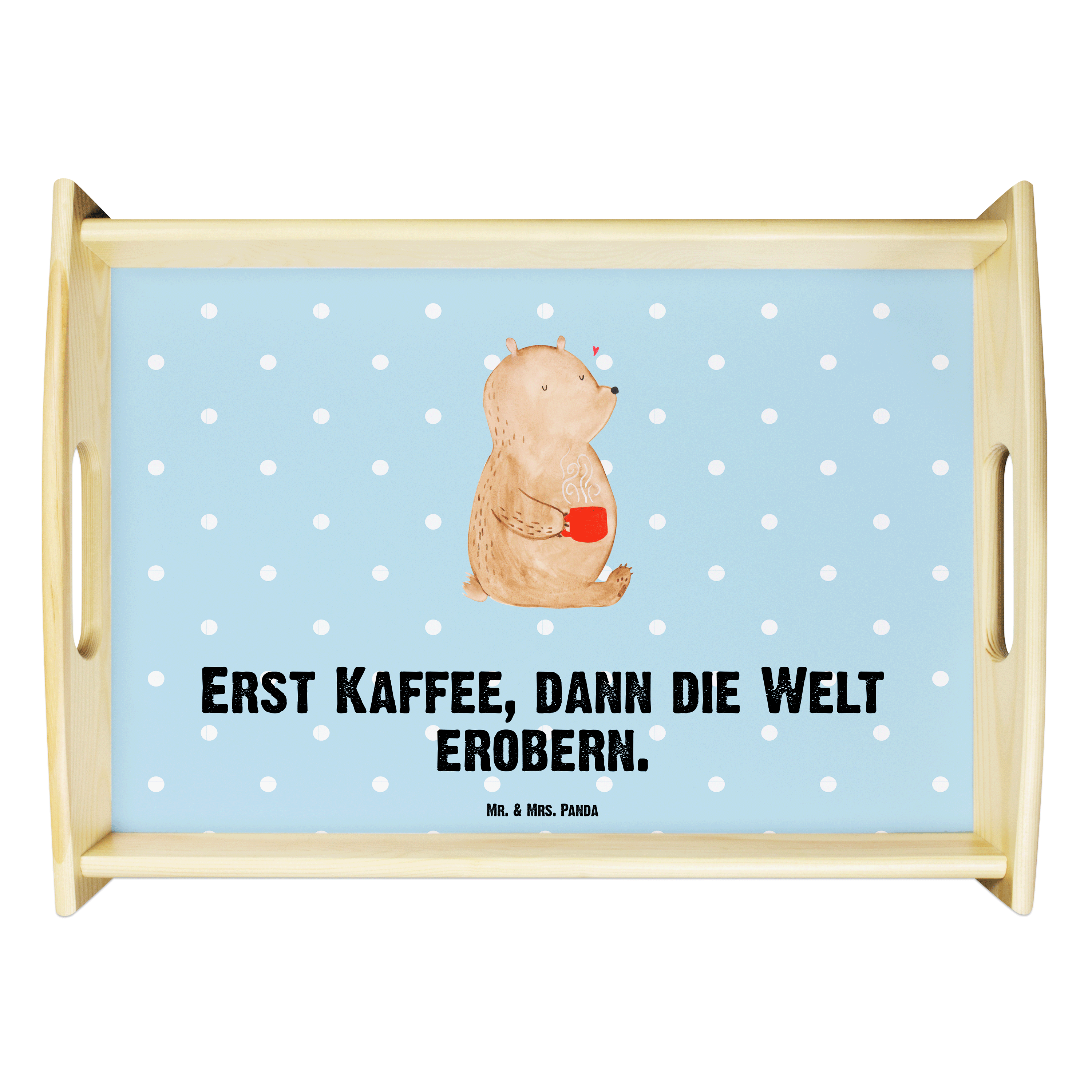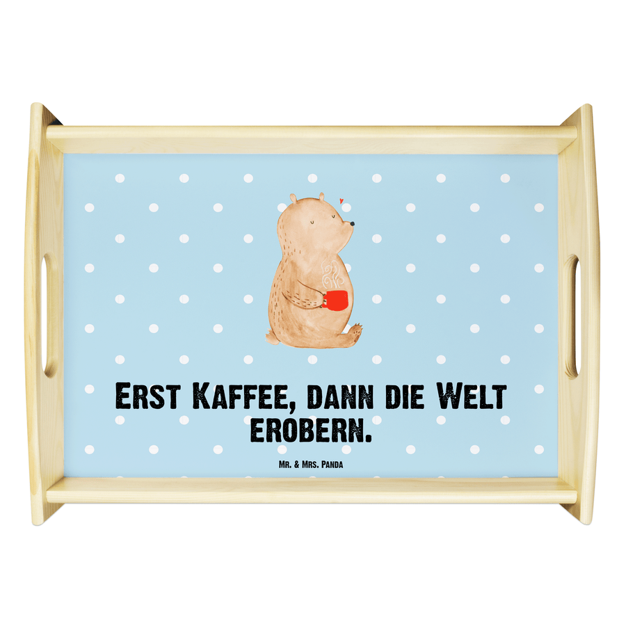 Serviertablett Bär Kaffee - mit Spruch - Blau Pastell