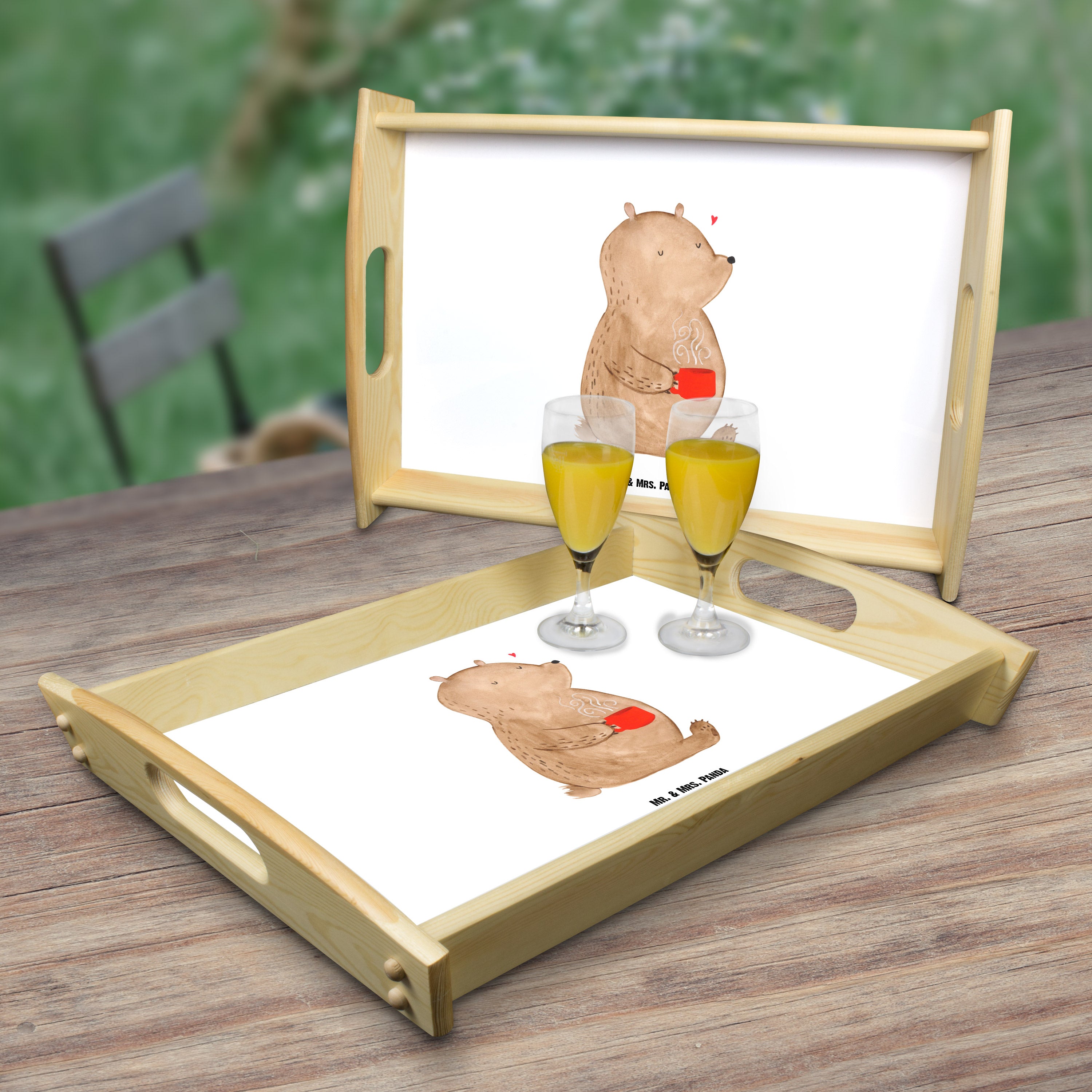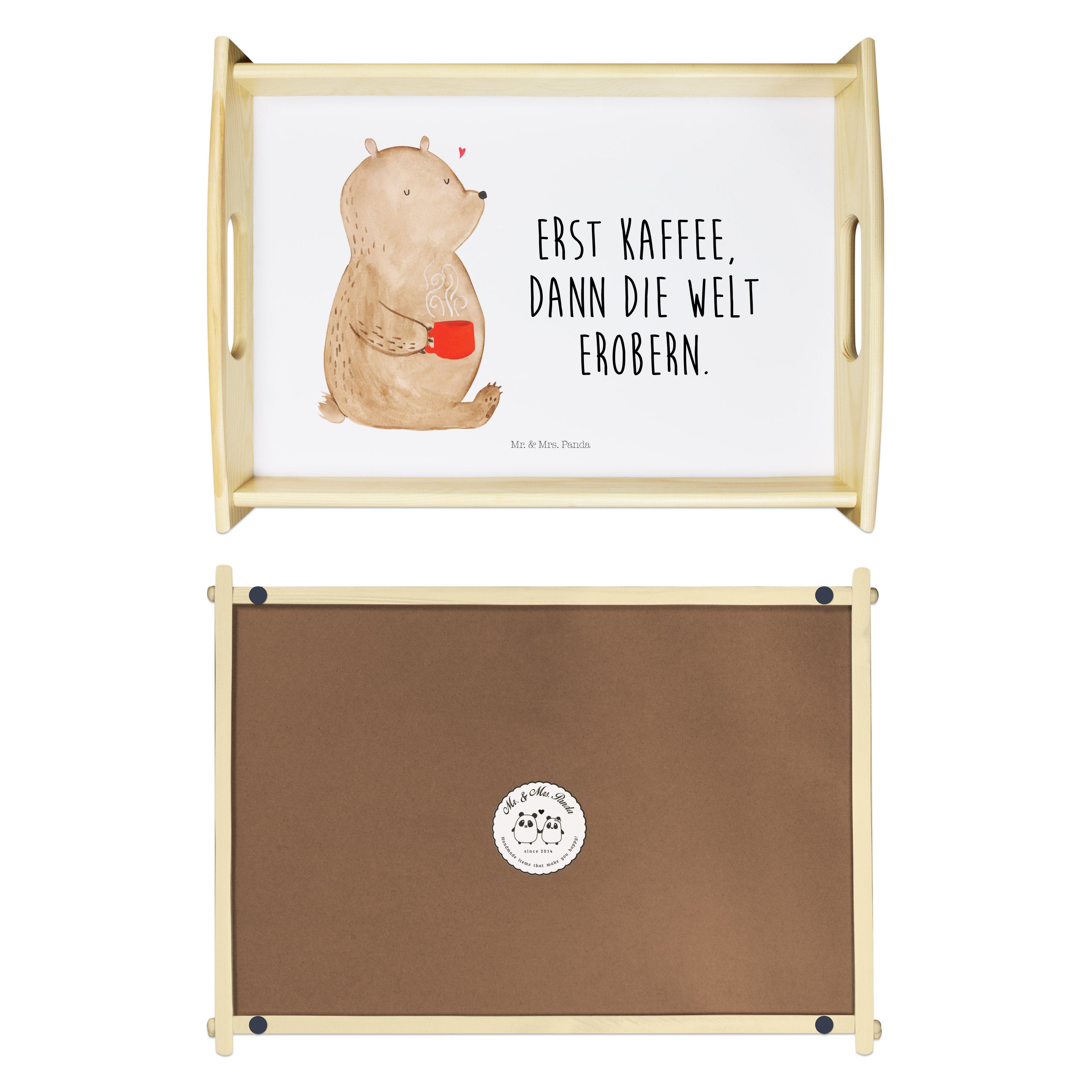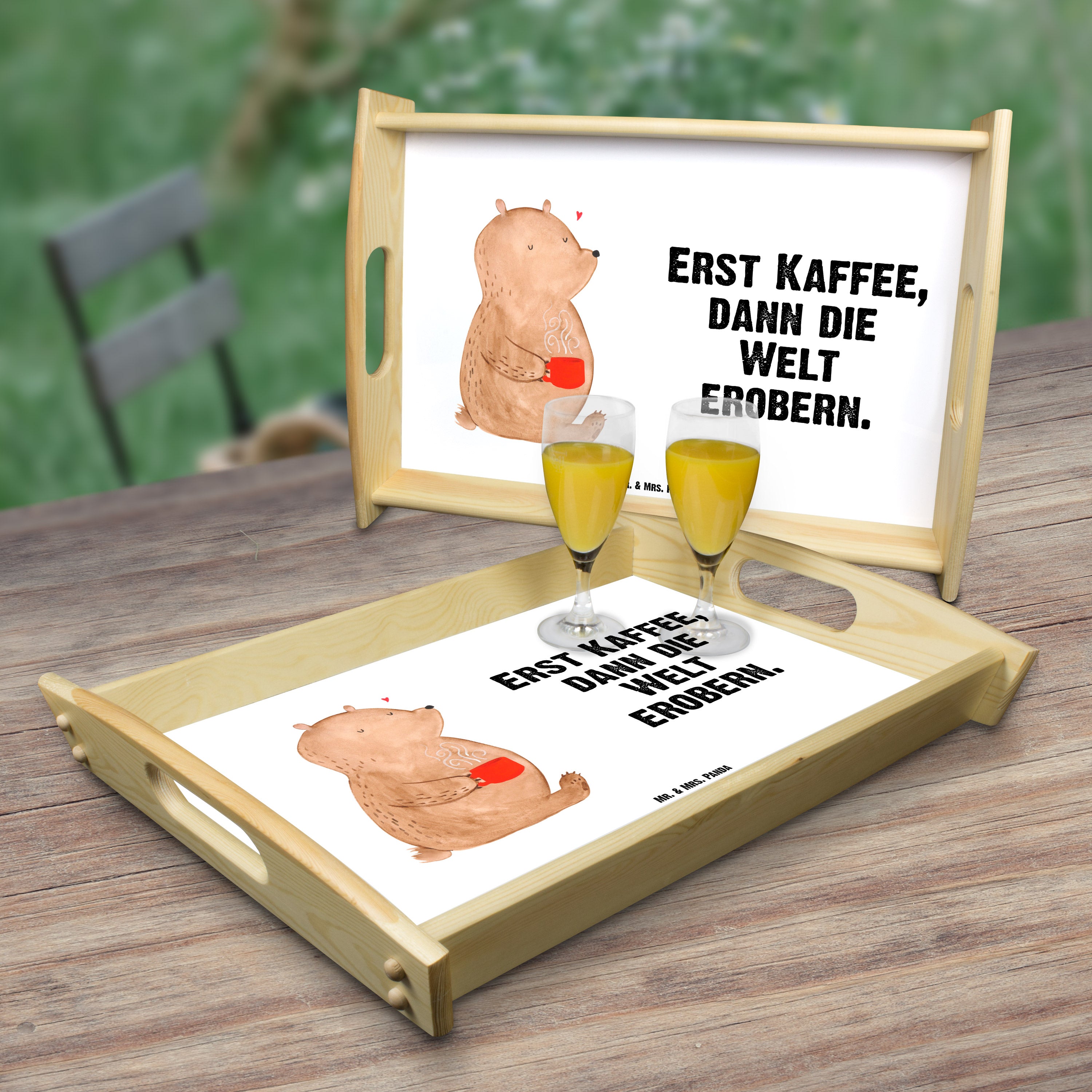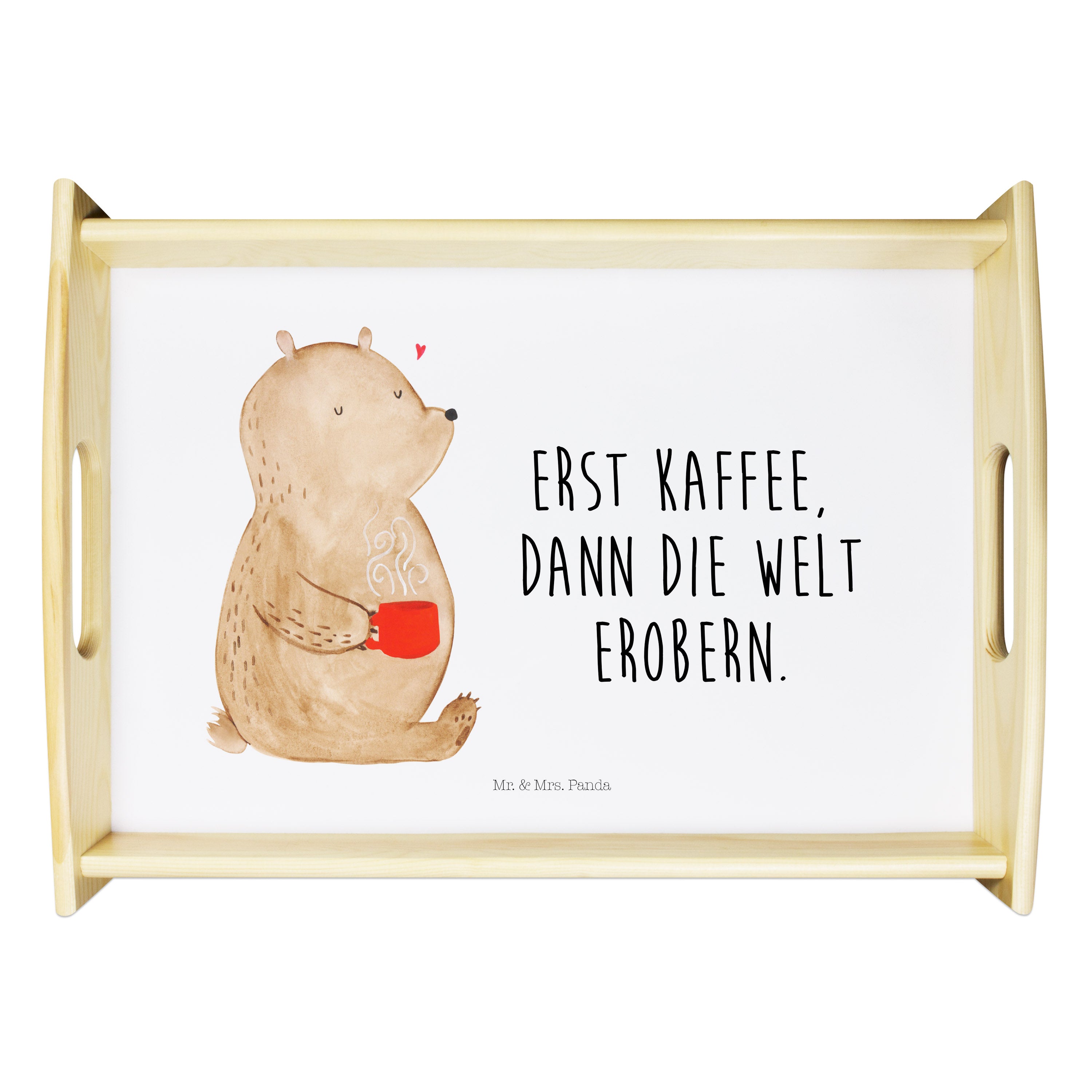 Serviertablett Bär Kaffee - mit Spruch - Blau Pastell