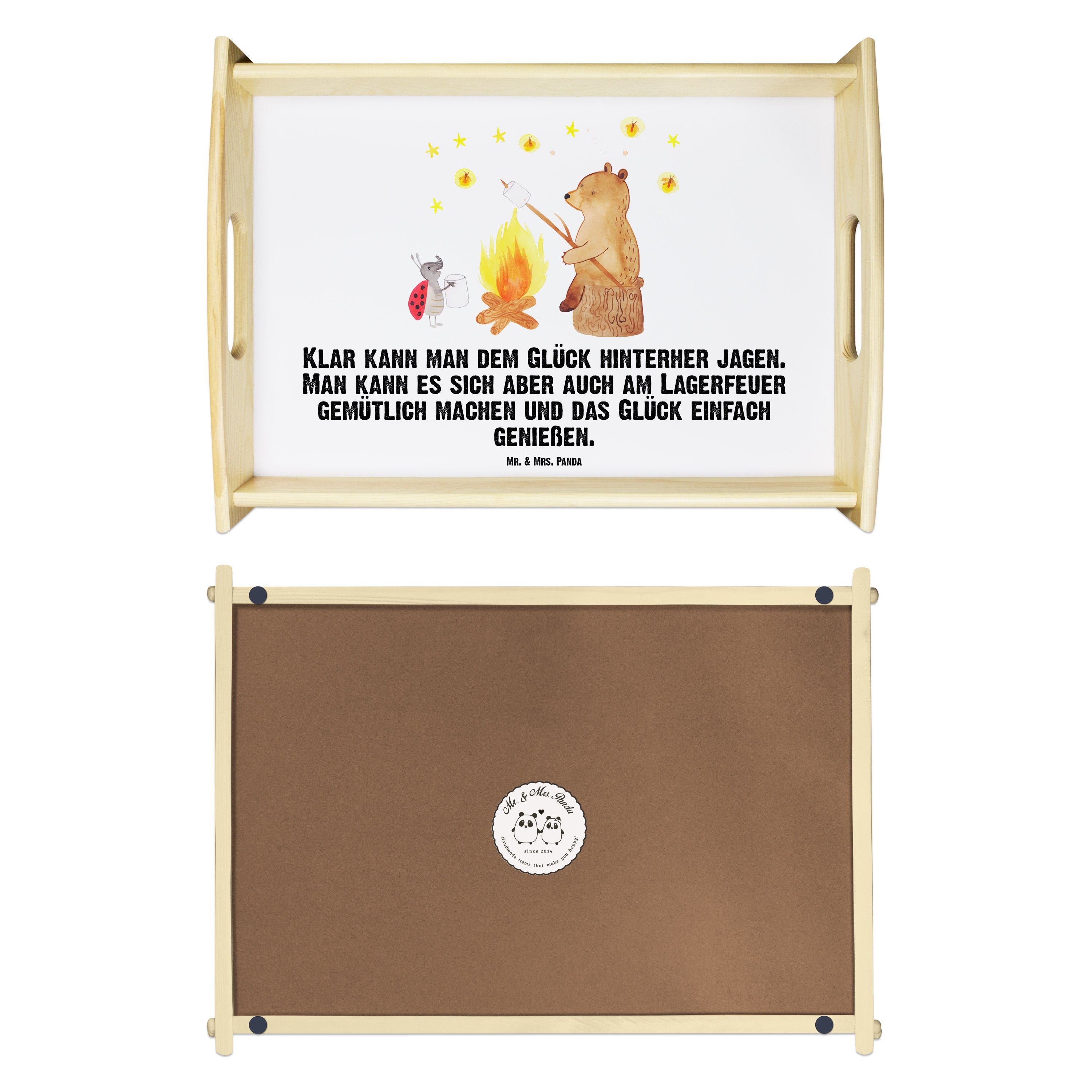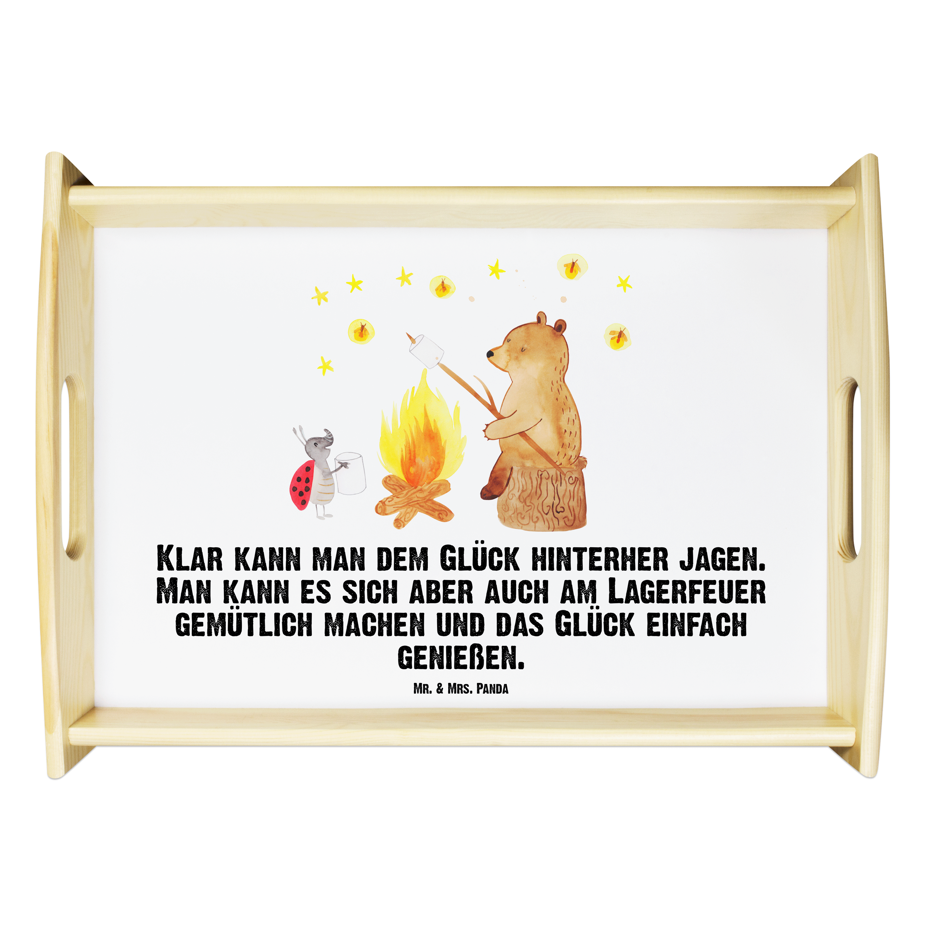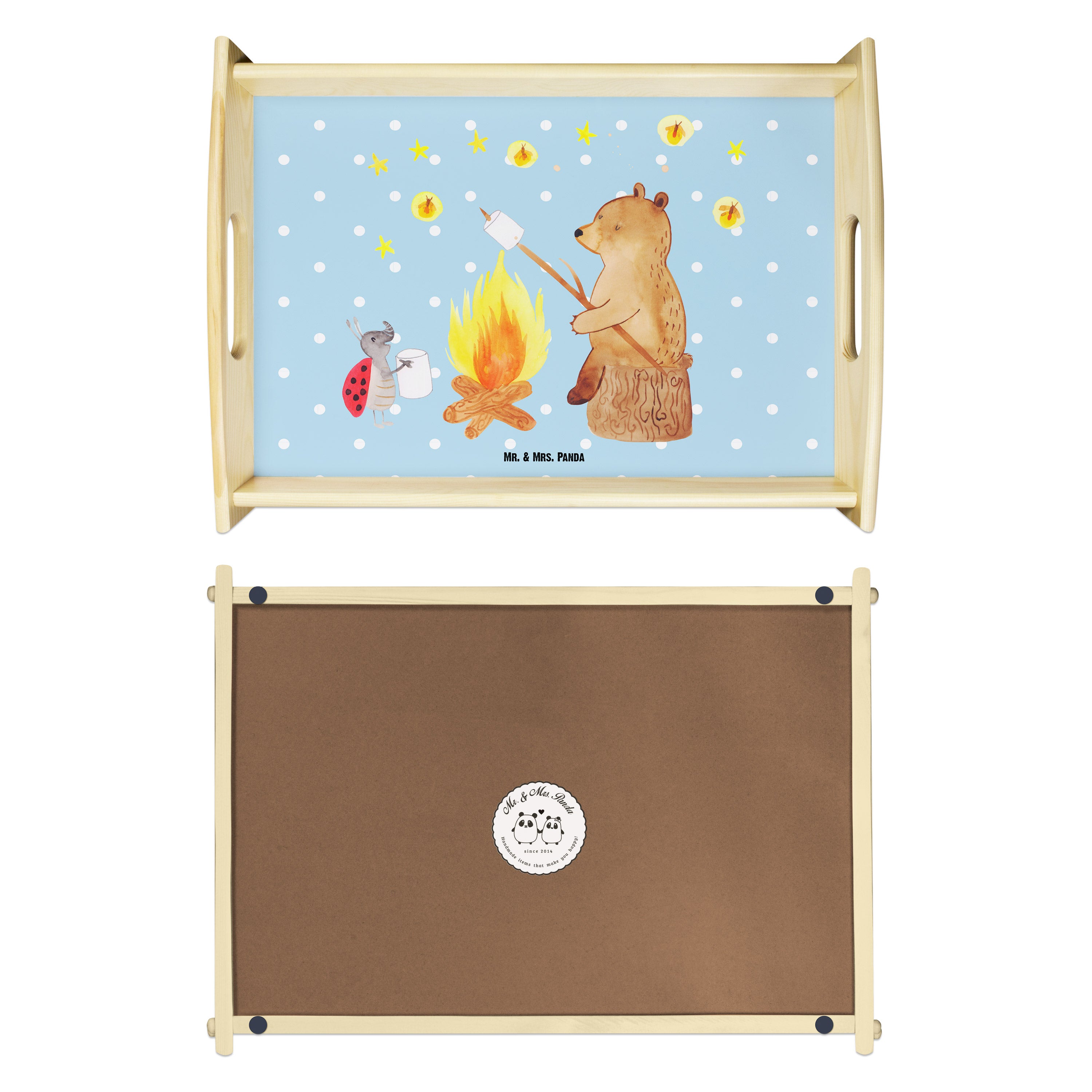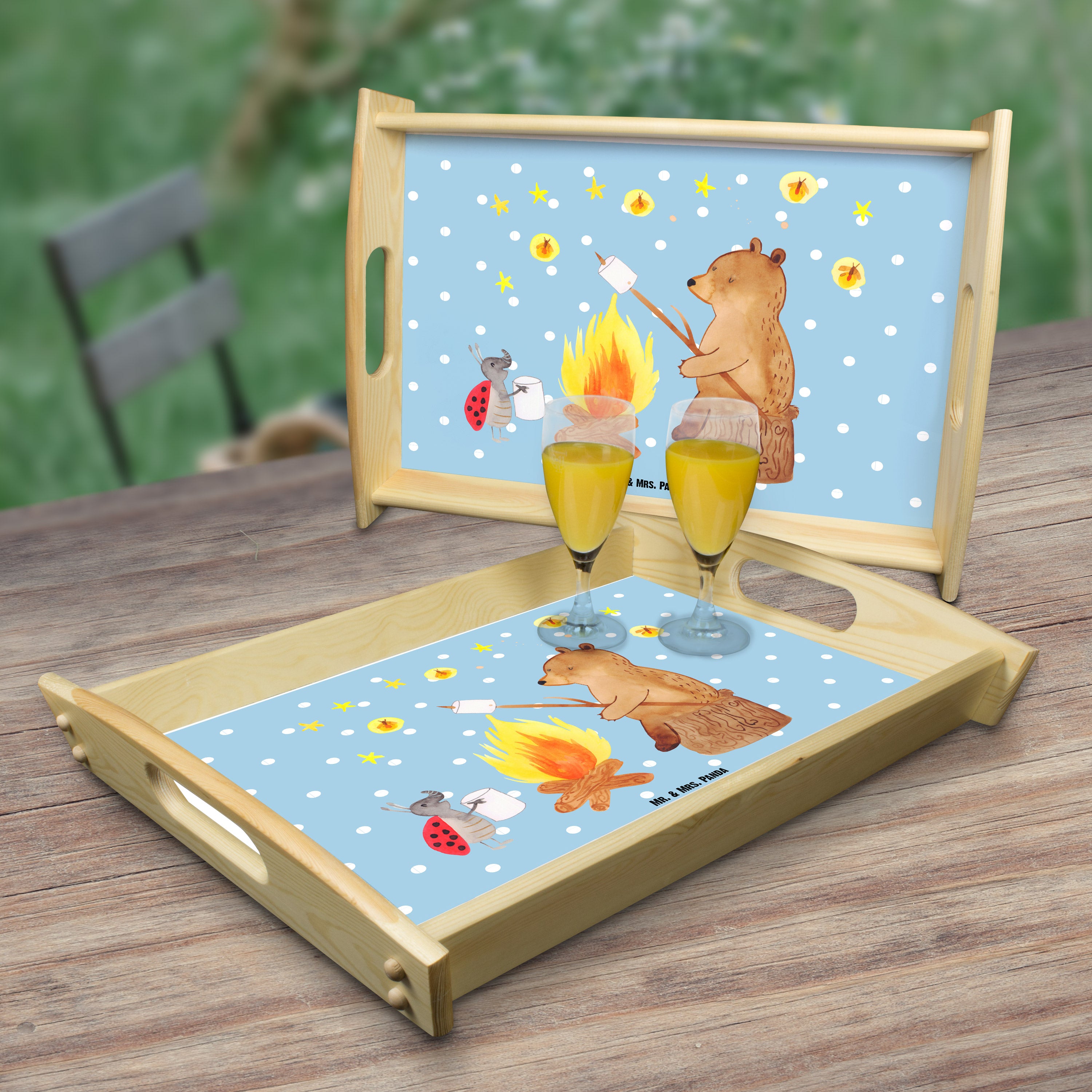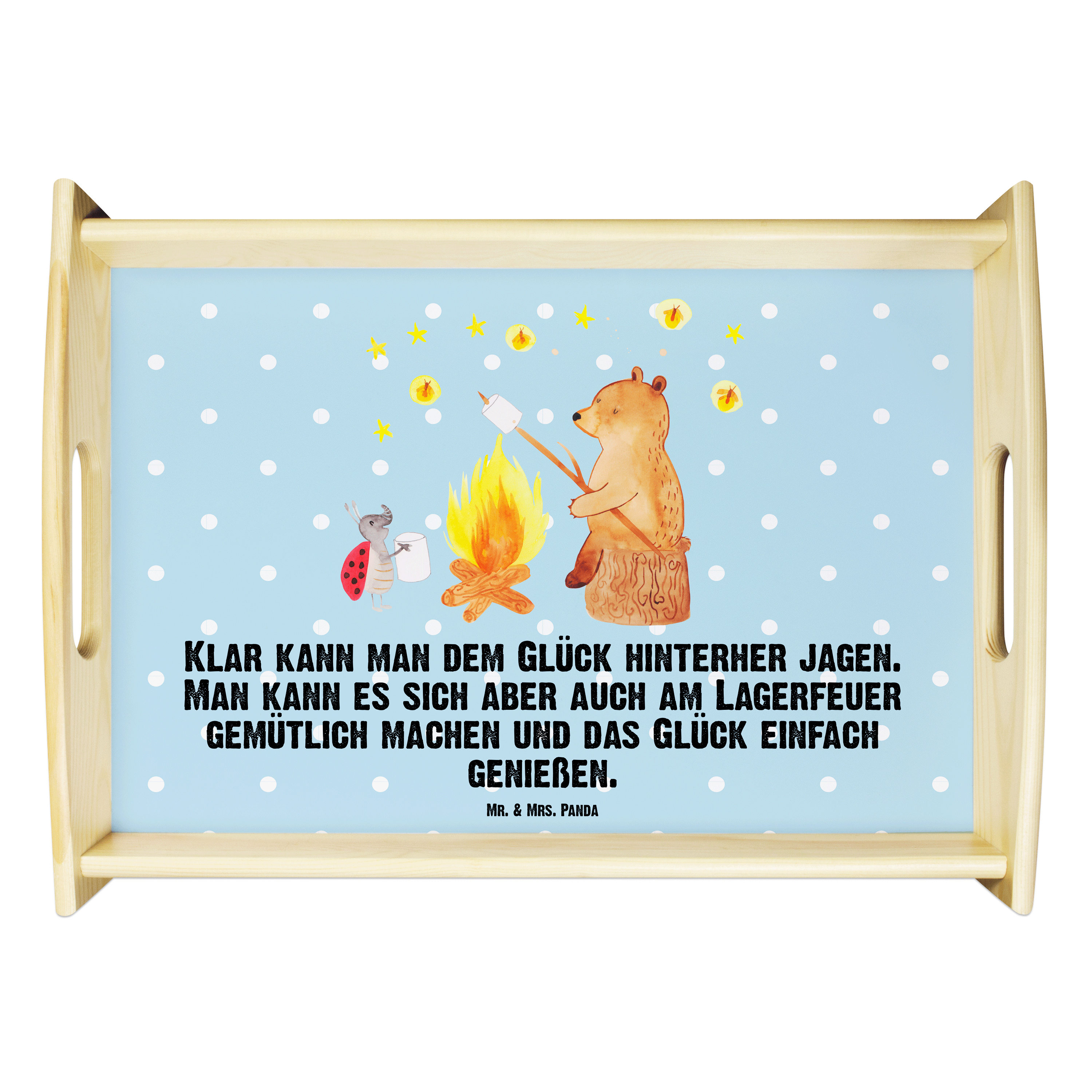 Serviertablett Bär & Marienkäfer Lagerfeuer - mit Spruch - Blau Pastell