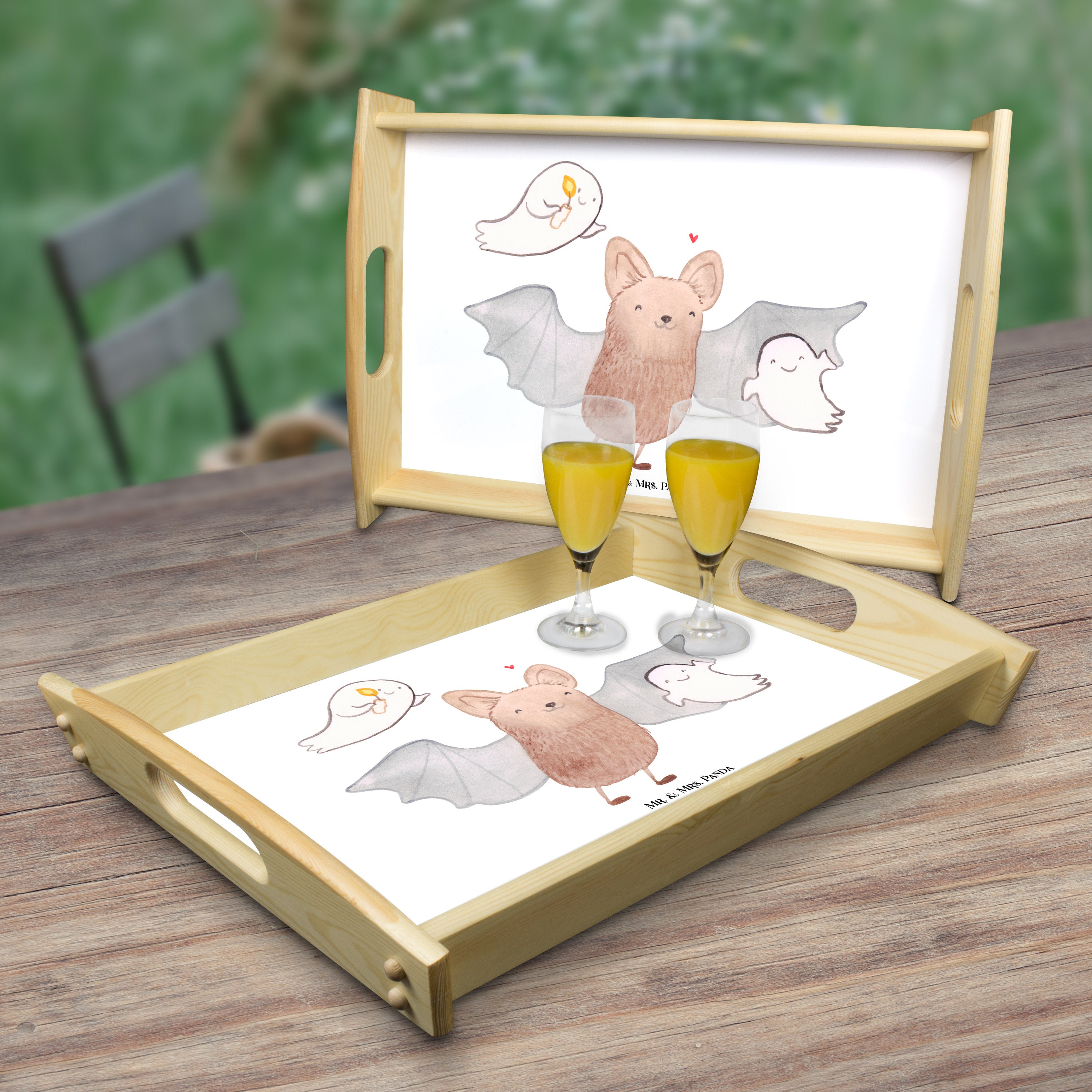 Serviertablett Fledermaus Gespenster - mit Spruch