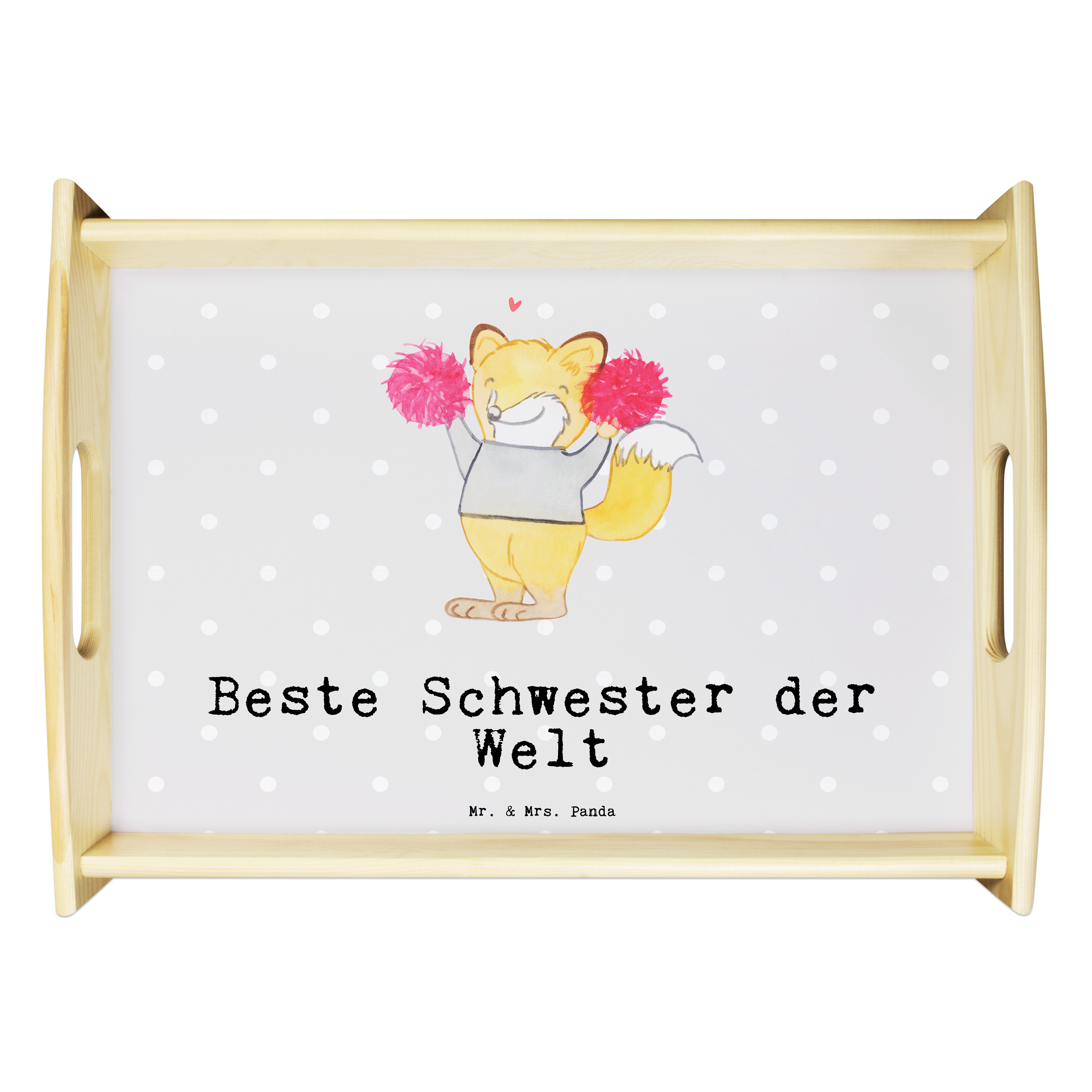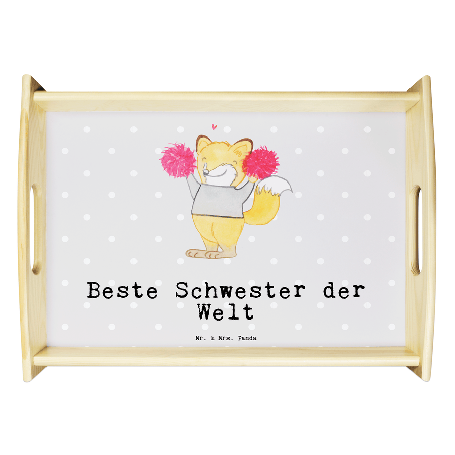 Serviertablett Fuchs Beste Schwester der Welt - Grau Pastell