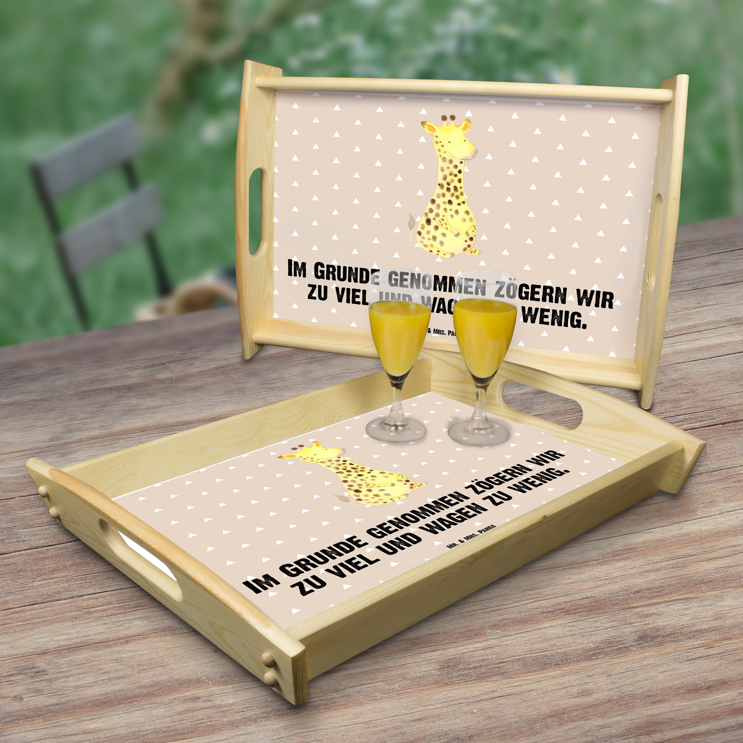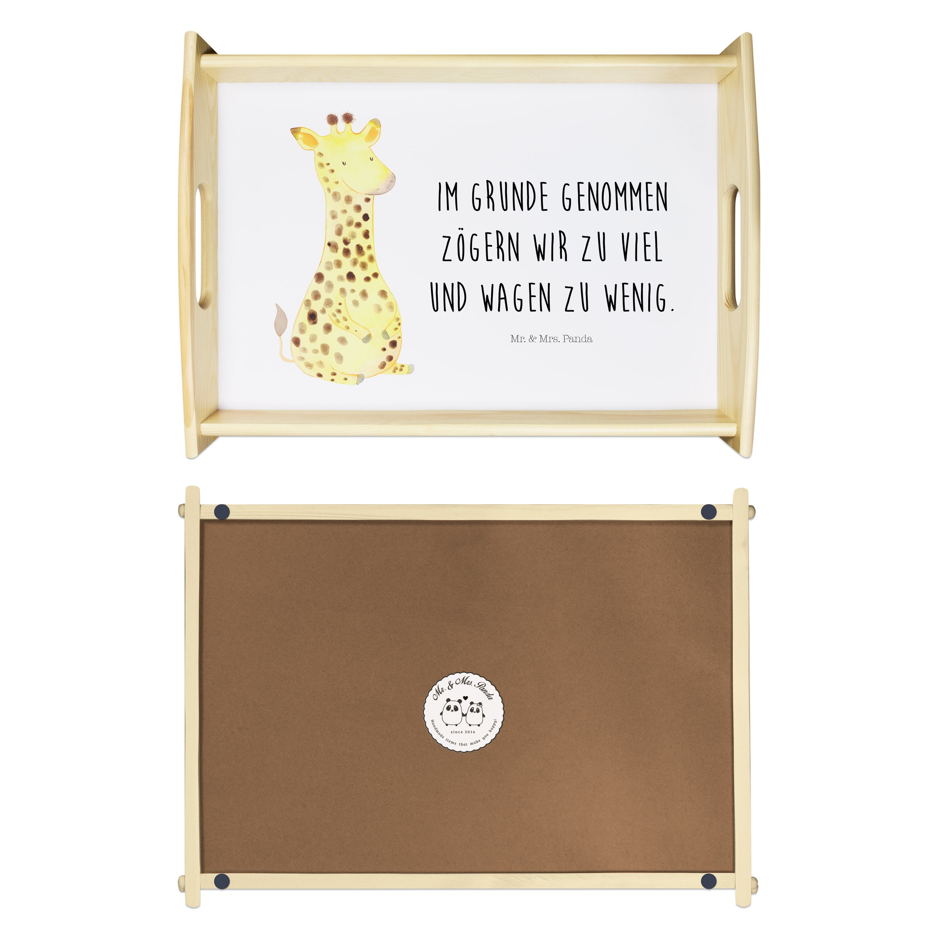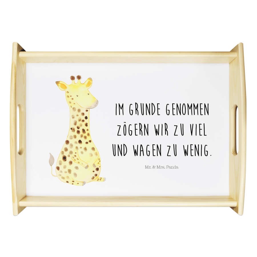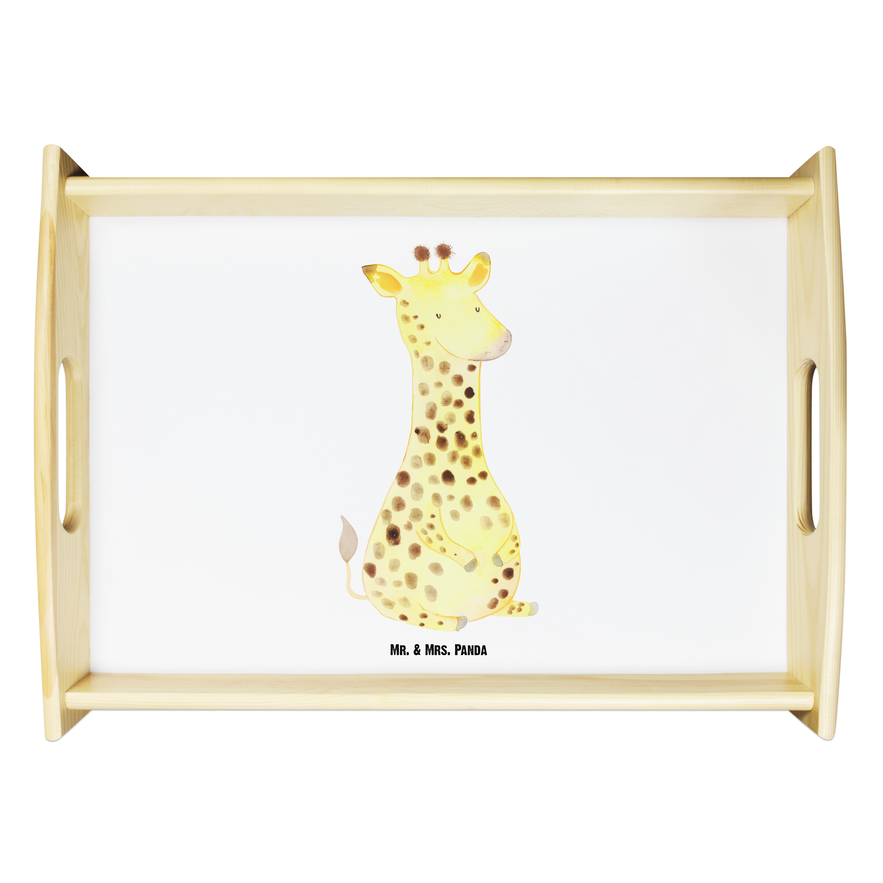 Serviertablett Giraffe Zufrieden - mit Spruch - Weiß