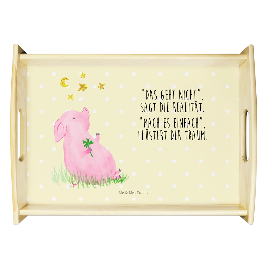 Serviertablett Glücksschwein - mit Spruch - Gelb Pastell