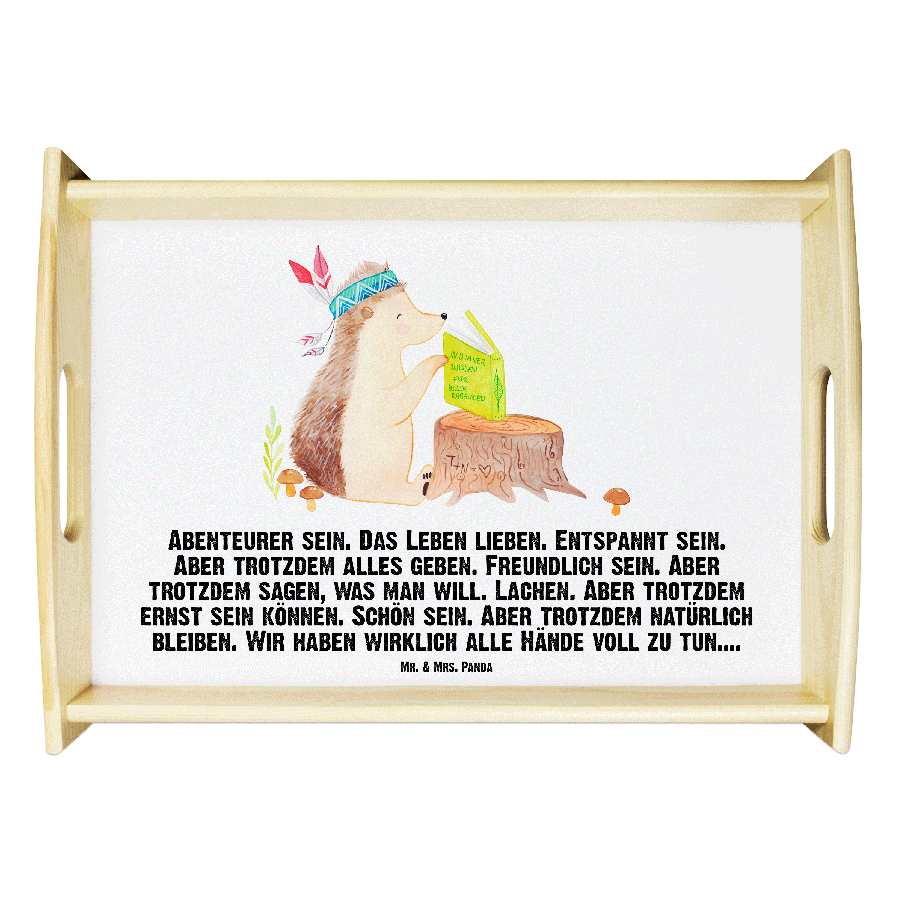 Serviertablett Igel Indianer - mit Spruch - Weiß