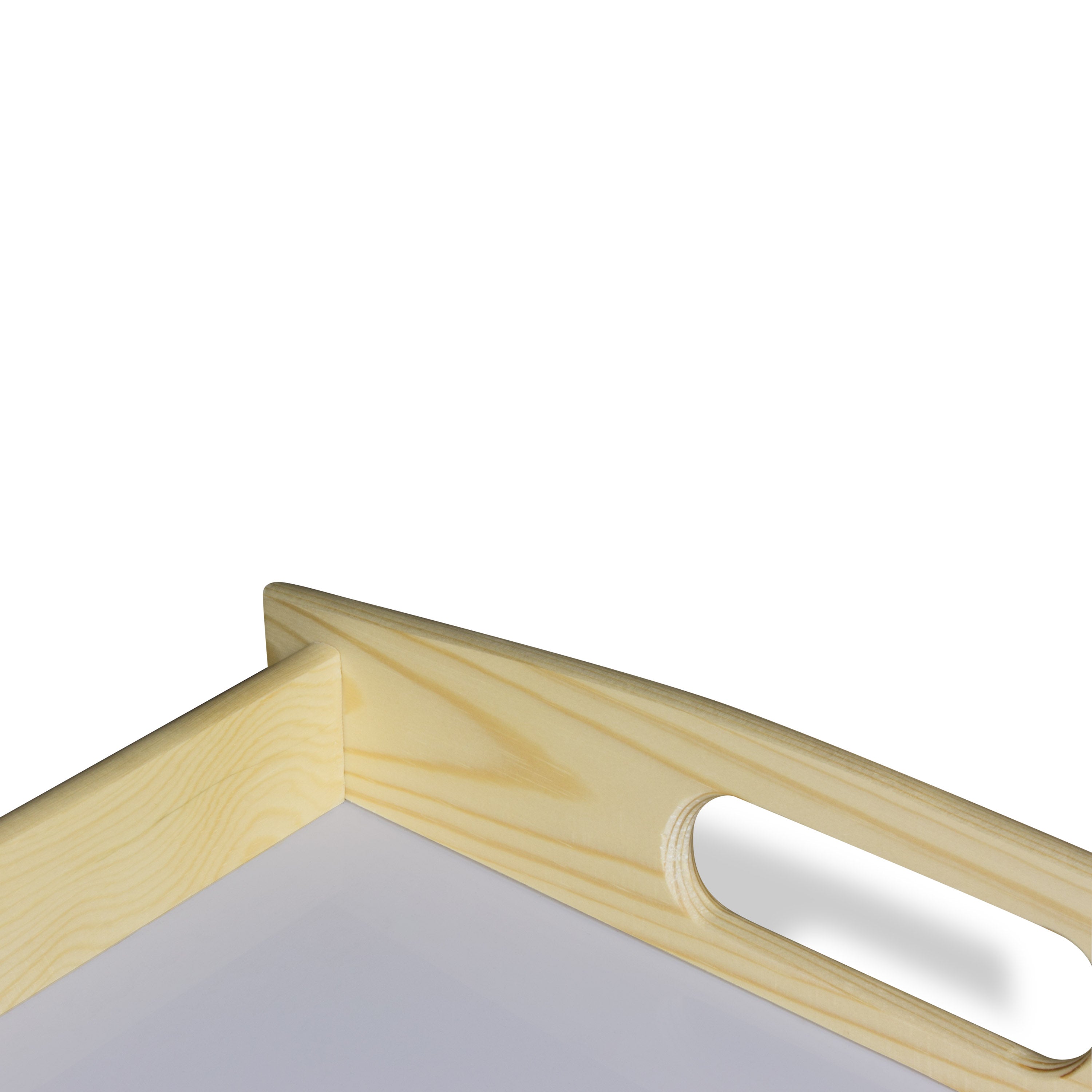 Das Tablett besteht aus lasiertem Echtholz. 💡 Gut zu wissen: Eine Holzlasur versiegelt das Holz und bildet einen schützenden Film an der Oberfläche. 💡 So kannst du das Tablett ohne Bedenken mit einem feuchten Tuch abwischen. Außerdem findest du an beiden Seiten Griffmulden für ein sicheres Transportieren. Zudem befinden sich bei dem Holztablett Anti-Rutsch Pads auf der Unterseite. Das Frühstückstablett kann auch prima als Küchentablett oder Betttablett verwendet werden.