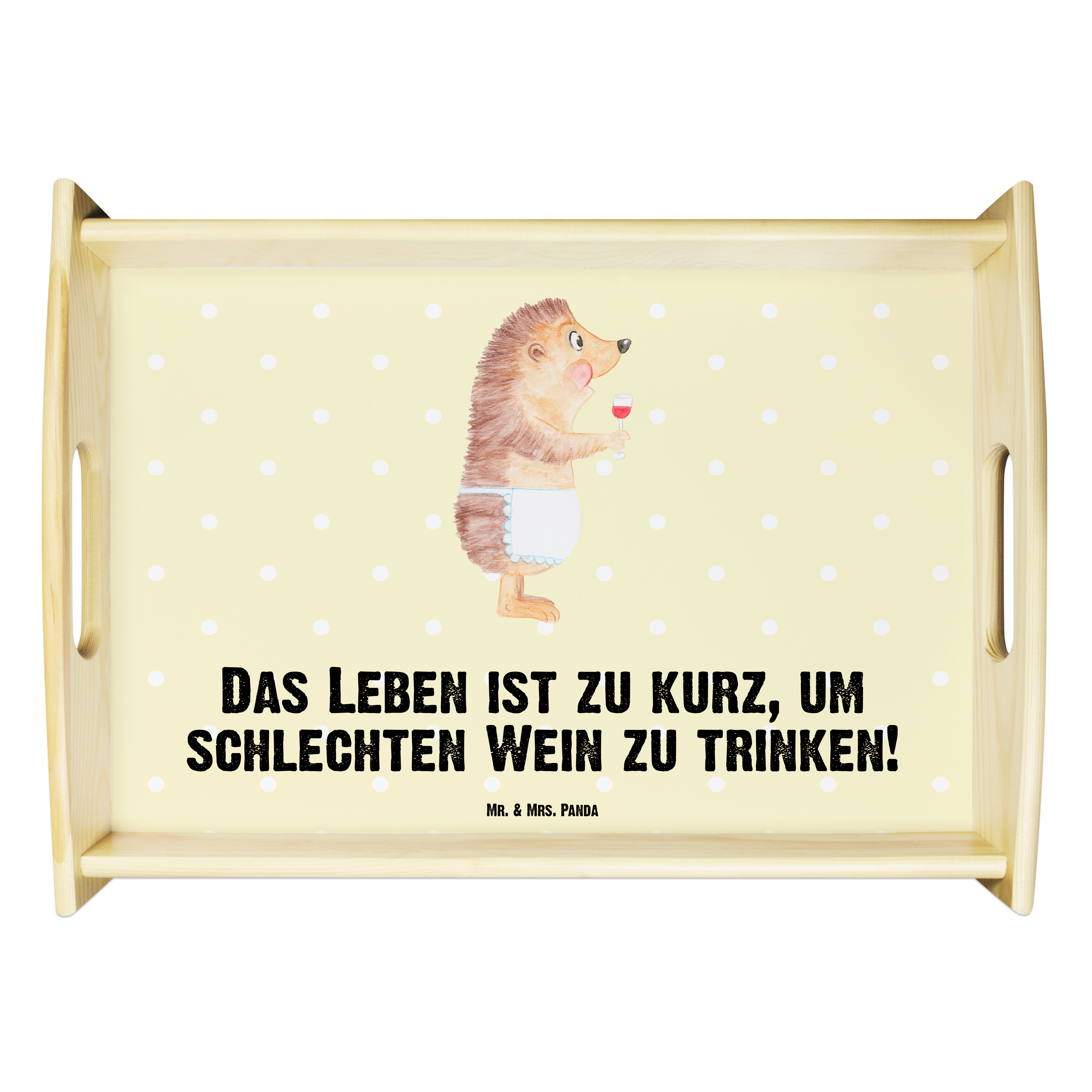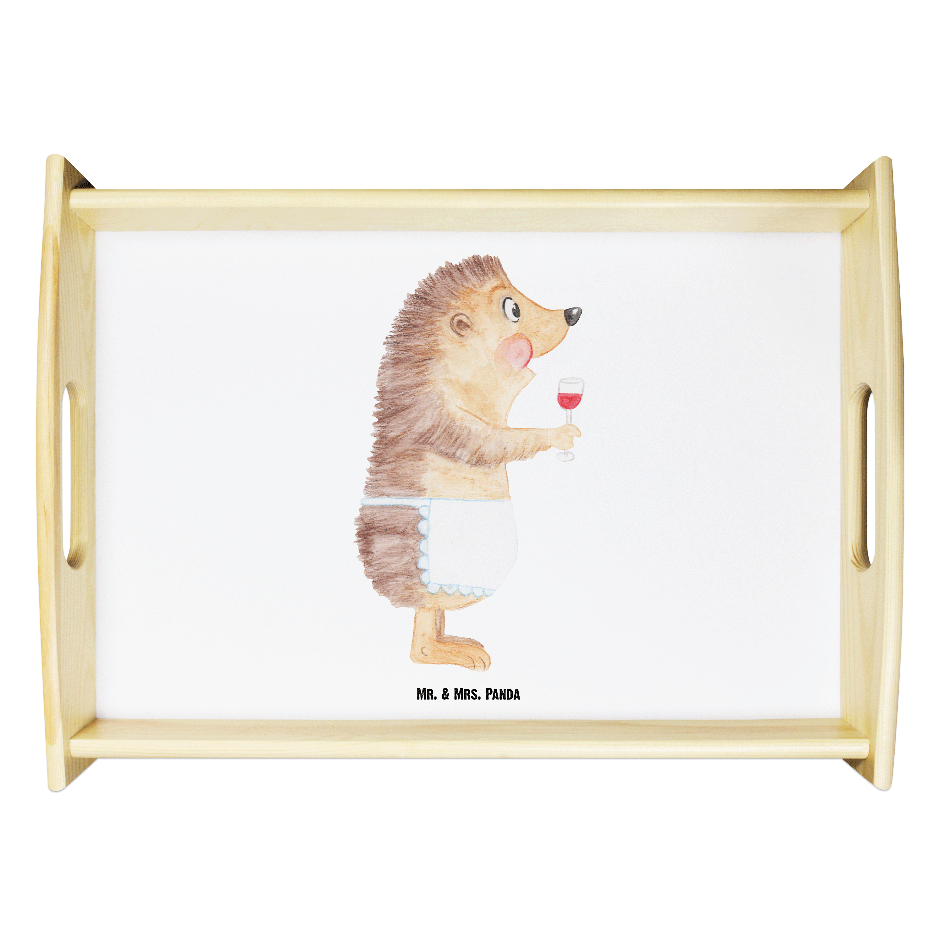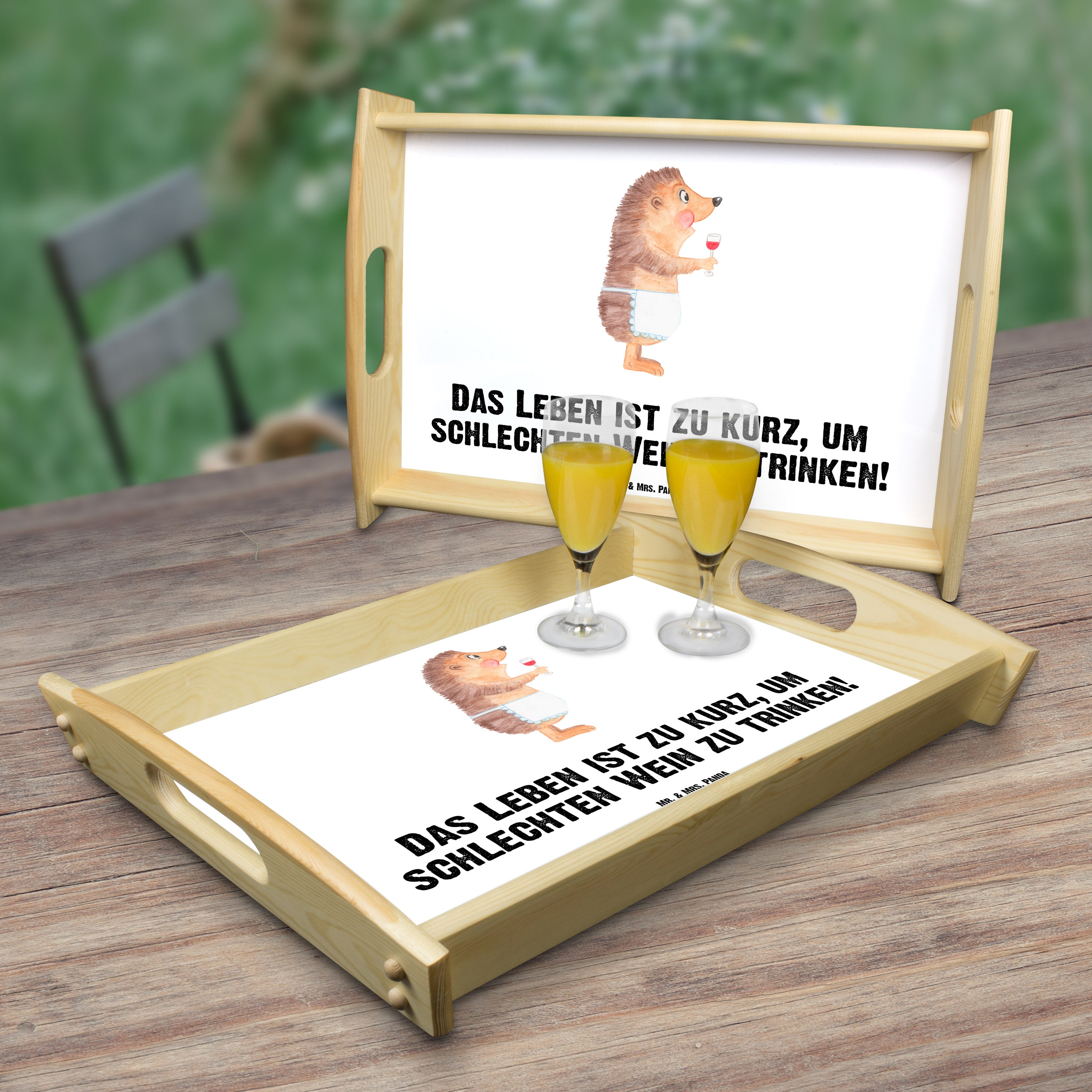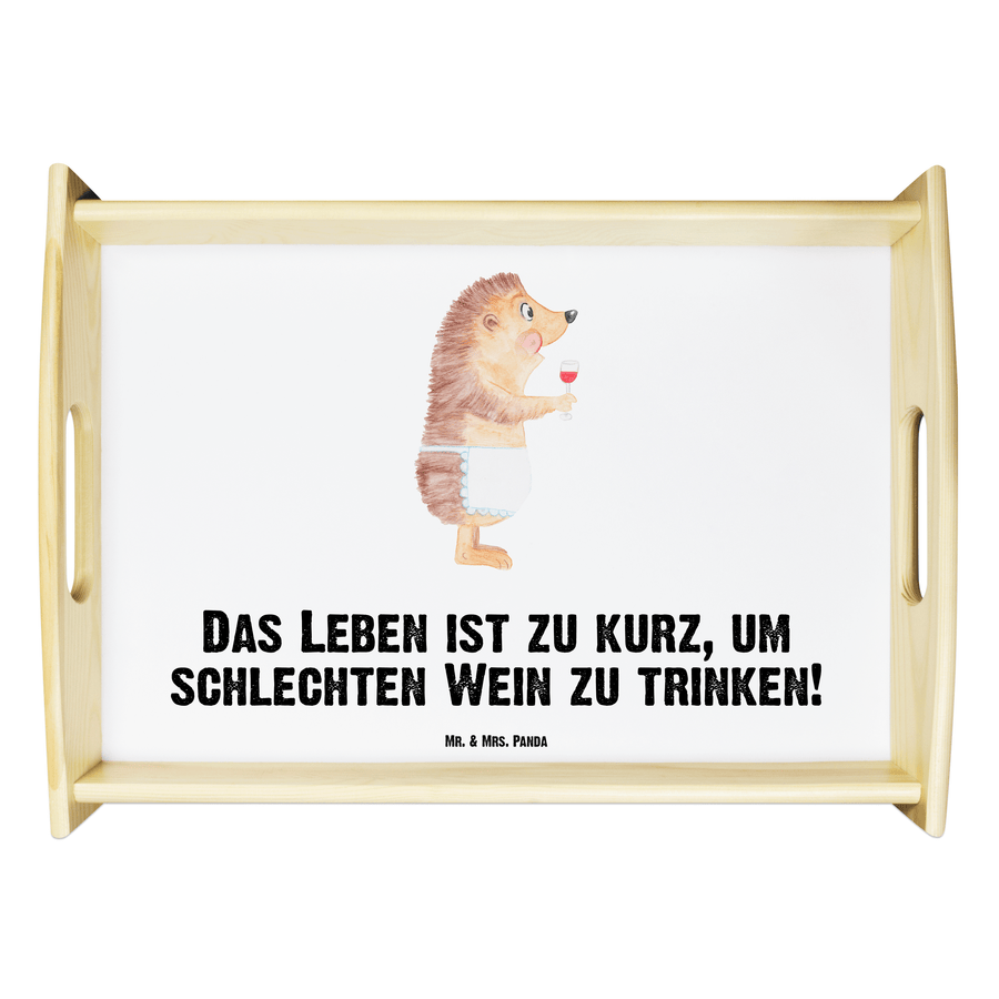 Serviertablett Igel mit Wein - mit Spruch - Weiß
