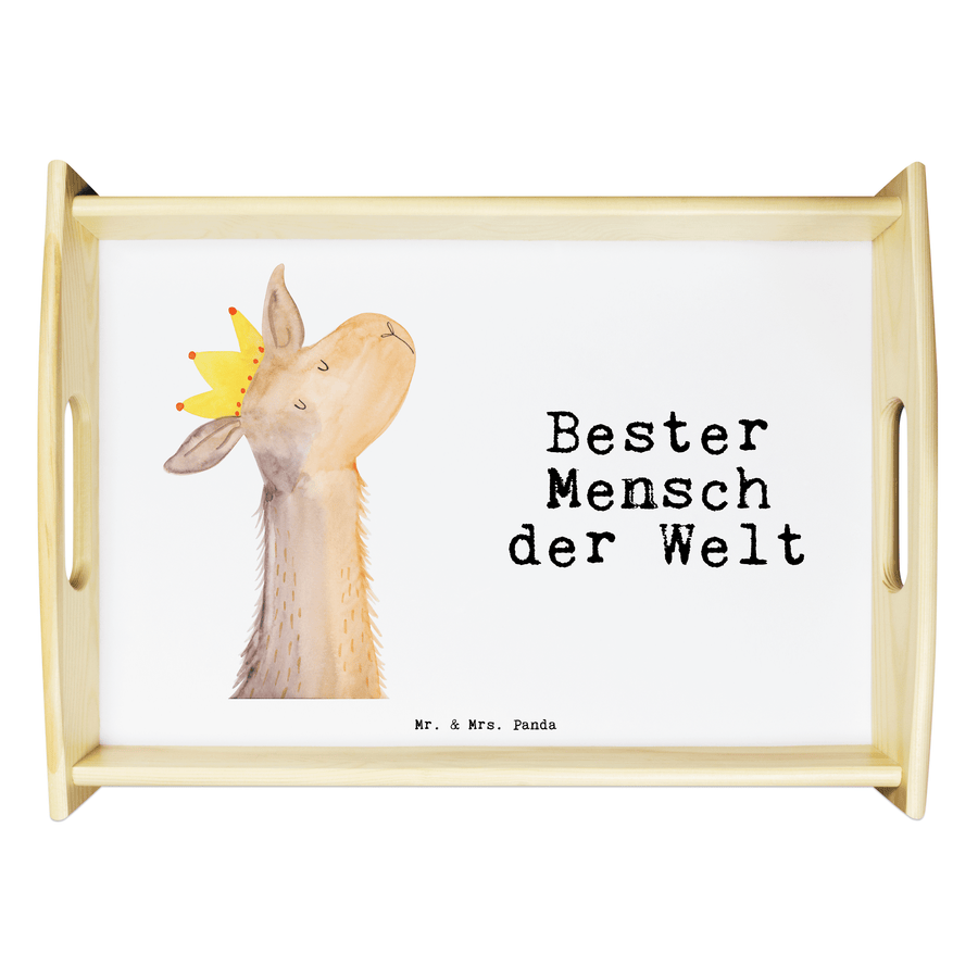 Serviertablett Lama Bester Mensch der Welt - Weiß