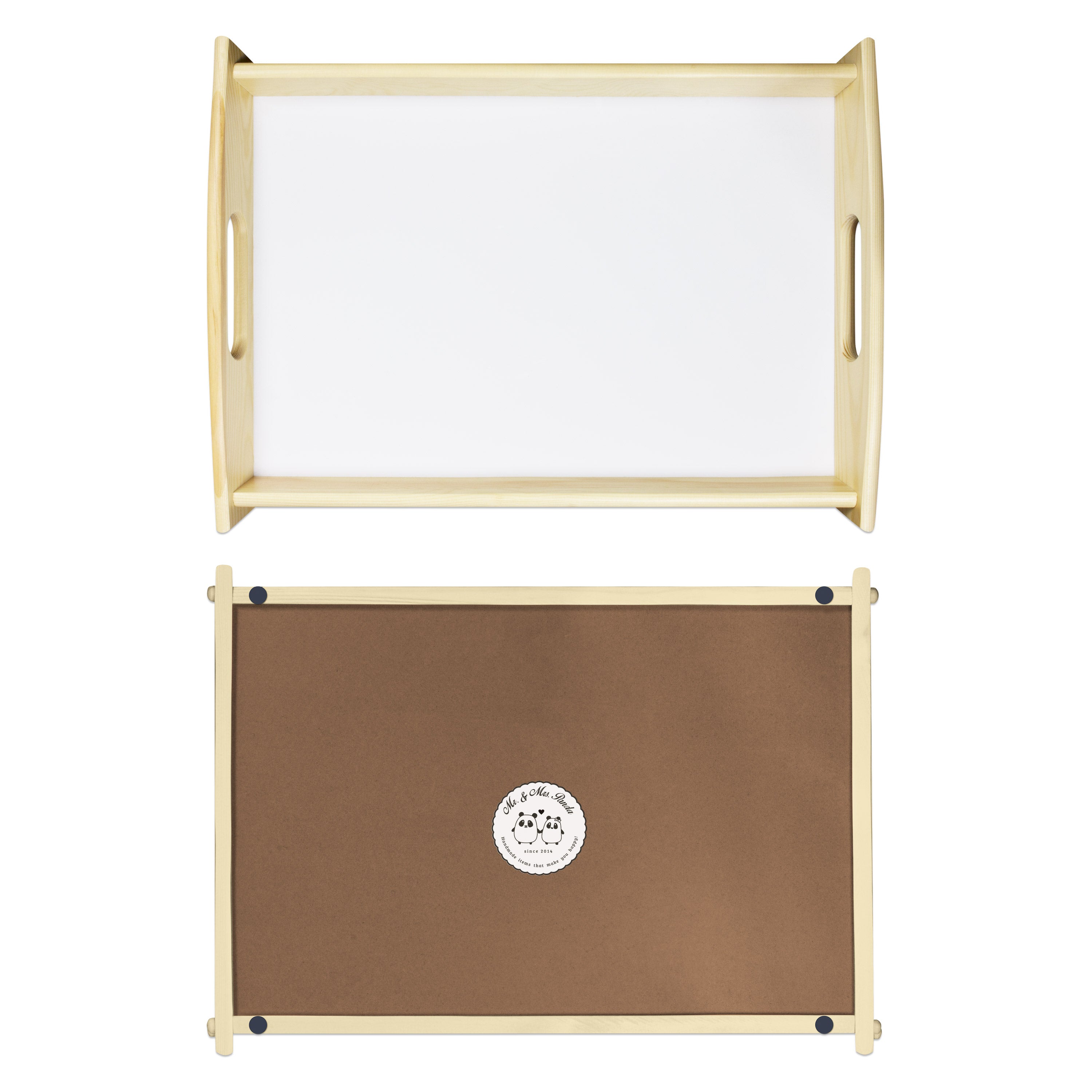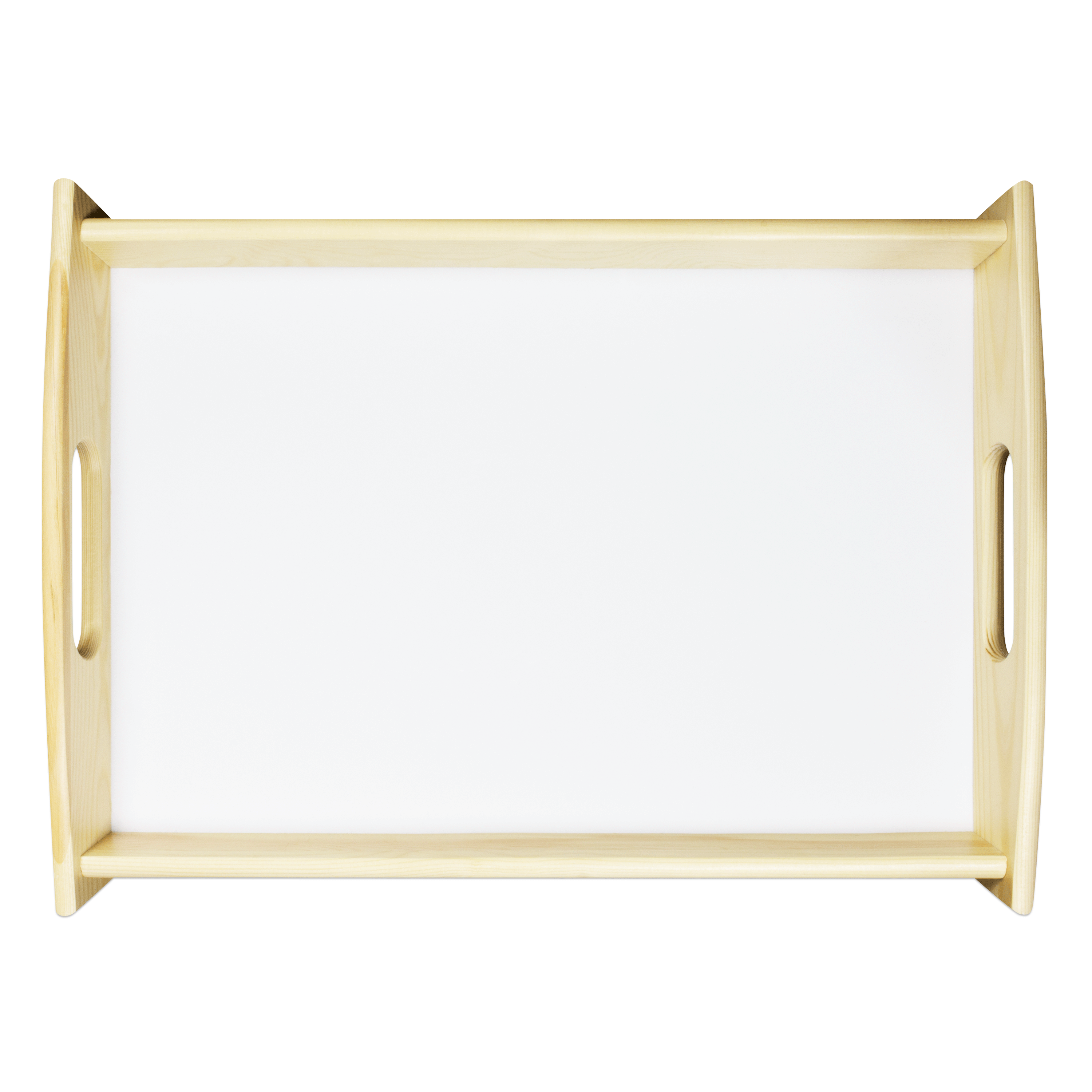 Das Tablett besteht aus lasiertem Echtholz. 💡 Gut zu wissen: Eine Holzlasur versiegelt das Holz und bildet einen schützenden Film an der Oberfläche. 💡 So kannst du das Tablett ohne Bedenken mit einem feuchten Tuch abwischen. Außerdem findest du an beiden Seiten Griffmulden für ein sicheres Transportieren. Zudem befinden sich bei dem Holztablett Anti-Rutsch Pads auf der Unterseite. Das Frühstückstablett kann auch prima als Küchentablett oder Betttablett verwendet werden.