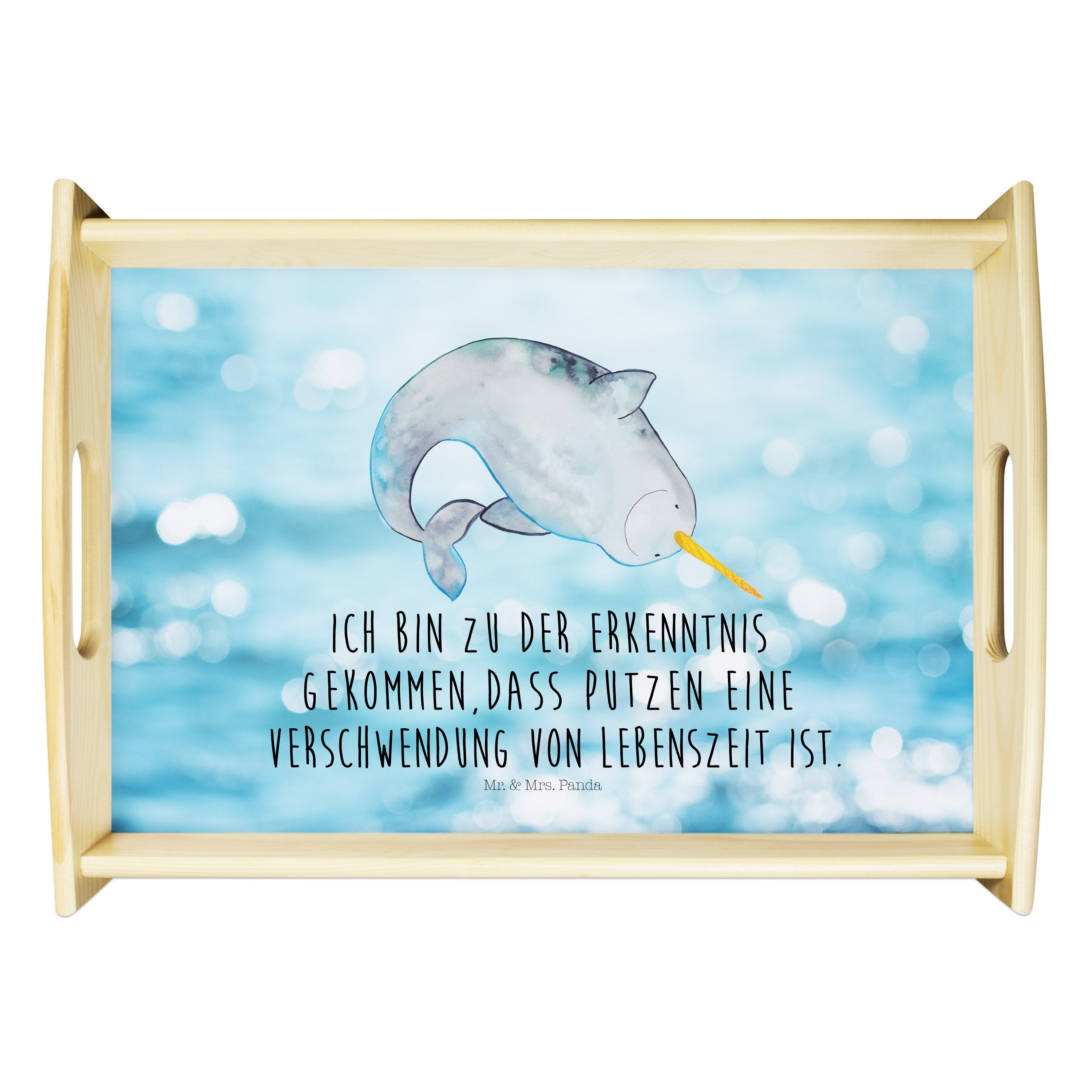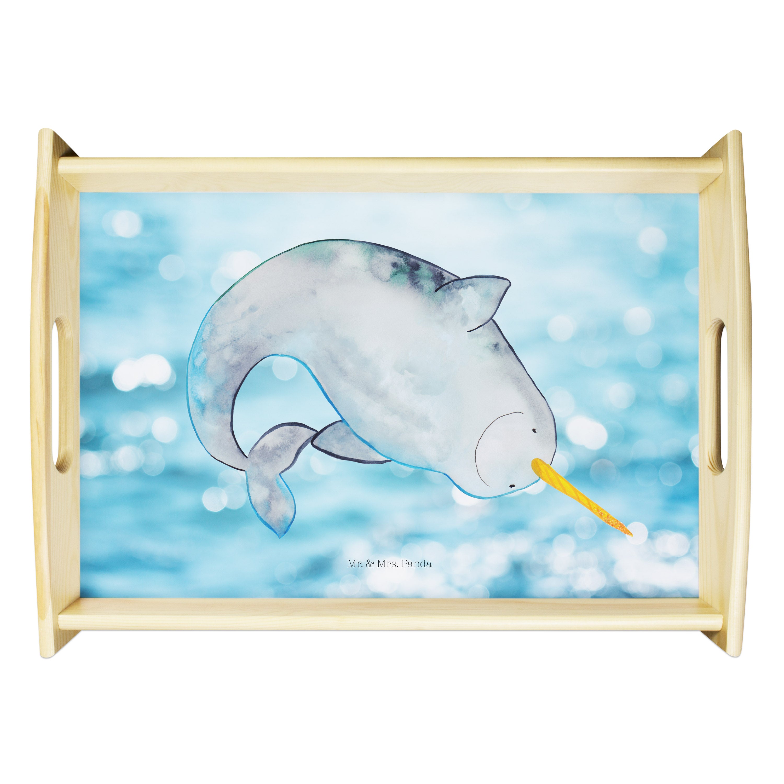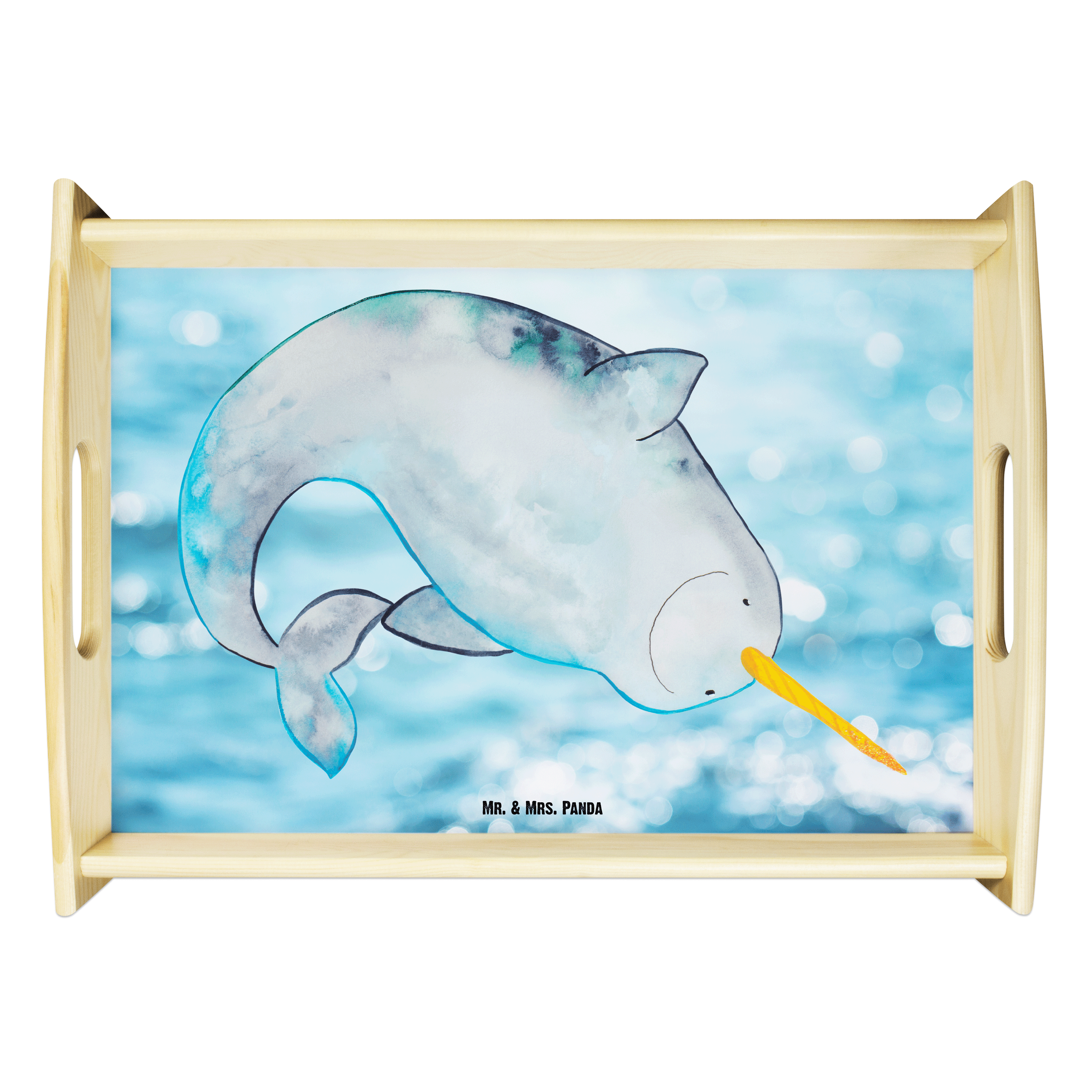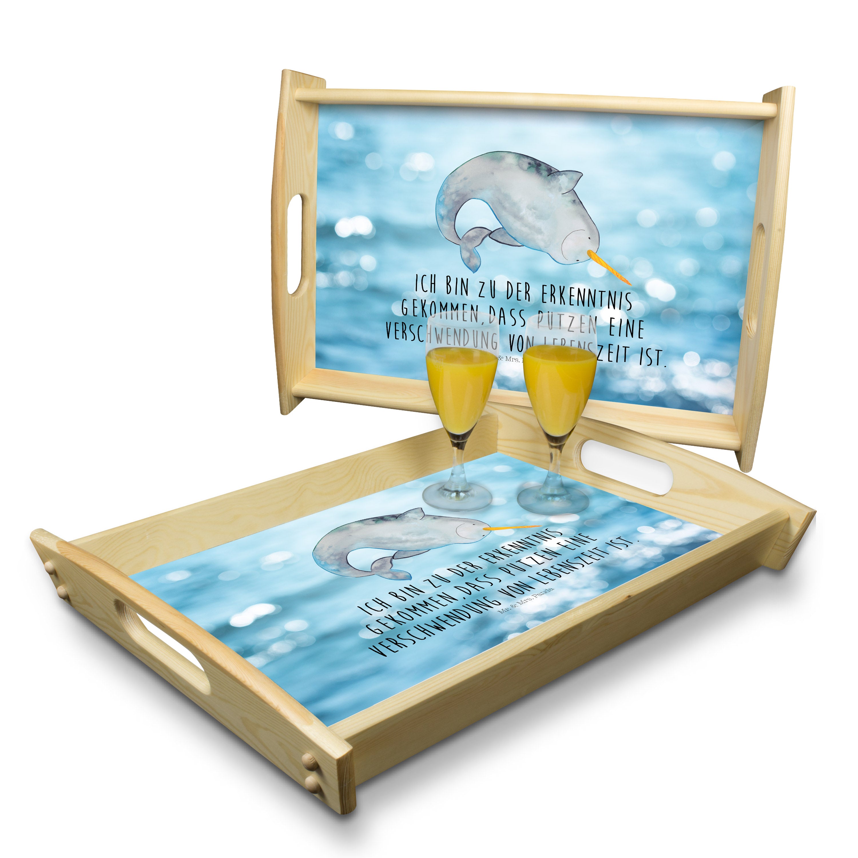 Serviertablett Narwal Tablett, Holztablett, Küchentablett, Dekotablett, Frühstückstablett, Meerestiere, Meer, Urlaub, Narwal, Wal, Putzen, Hausfrau, Junggesellin, aufräumen, Kinderzimmer