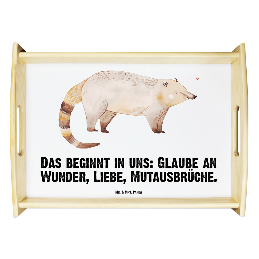 Serviertablett Nasenbaer - mit Spruch - Weiß