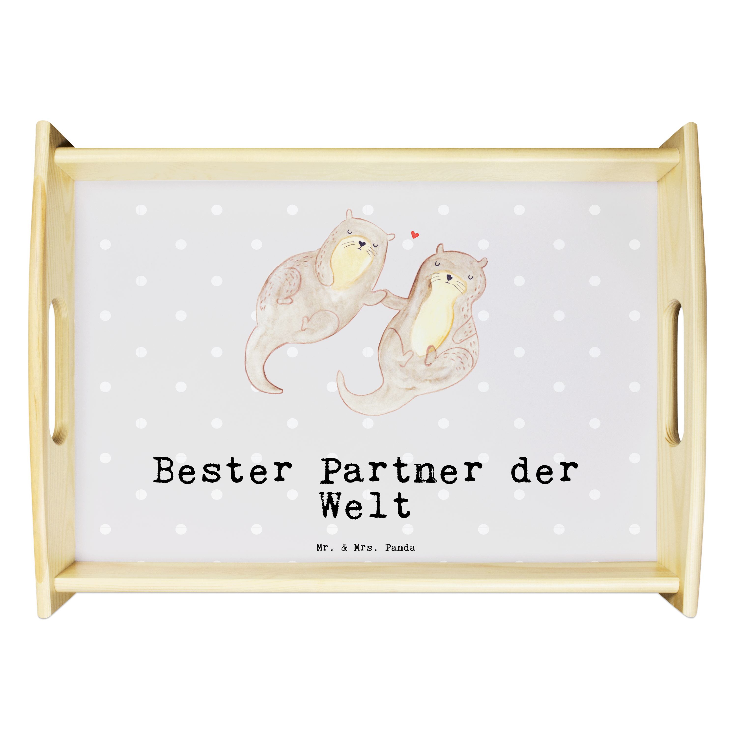 Serviertablett Otter Bester Partner der Welt - Grau Pastell