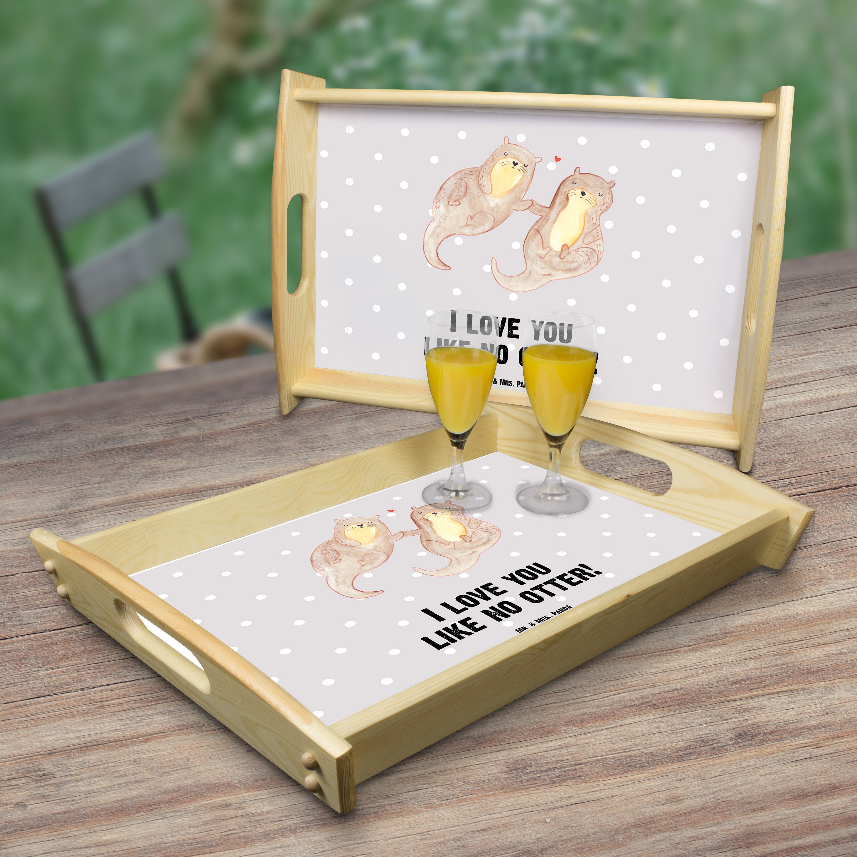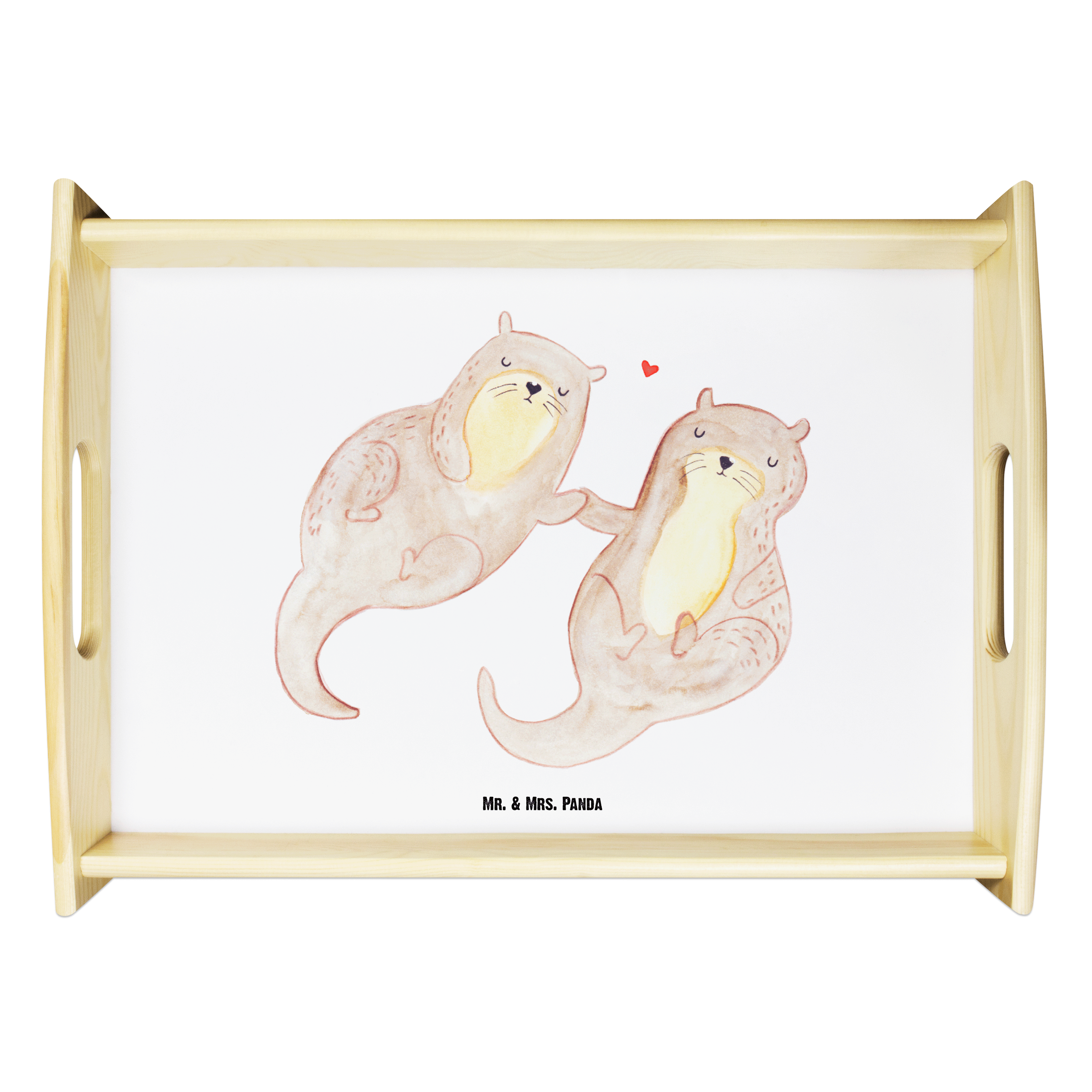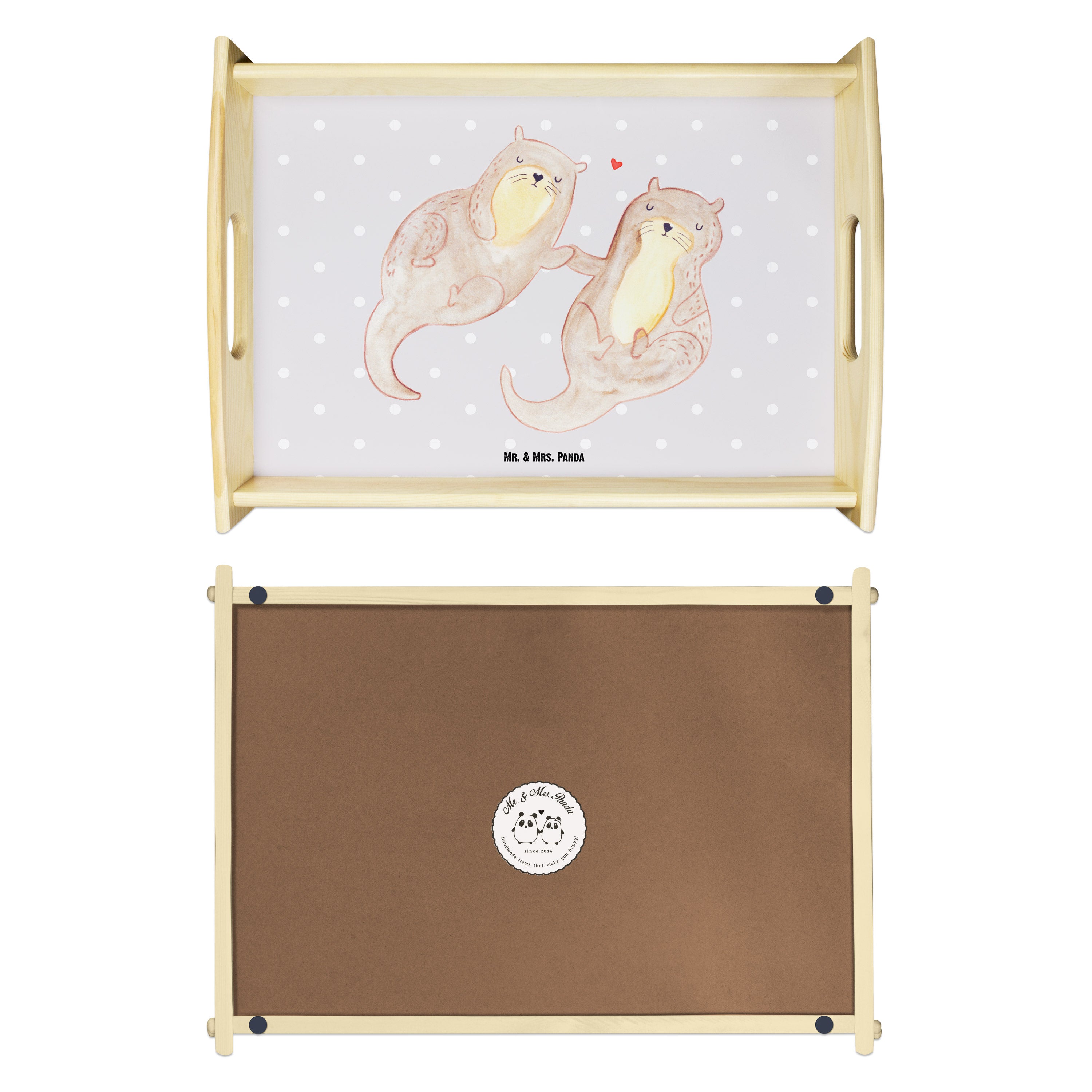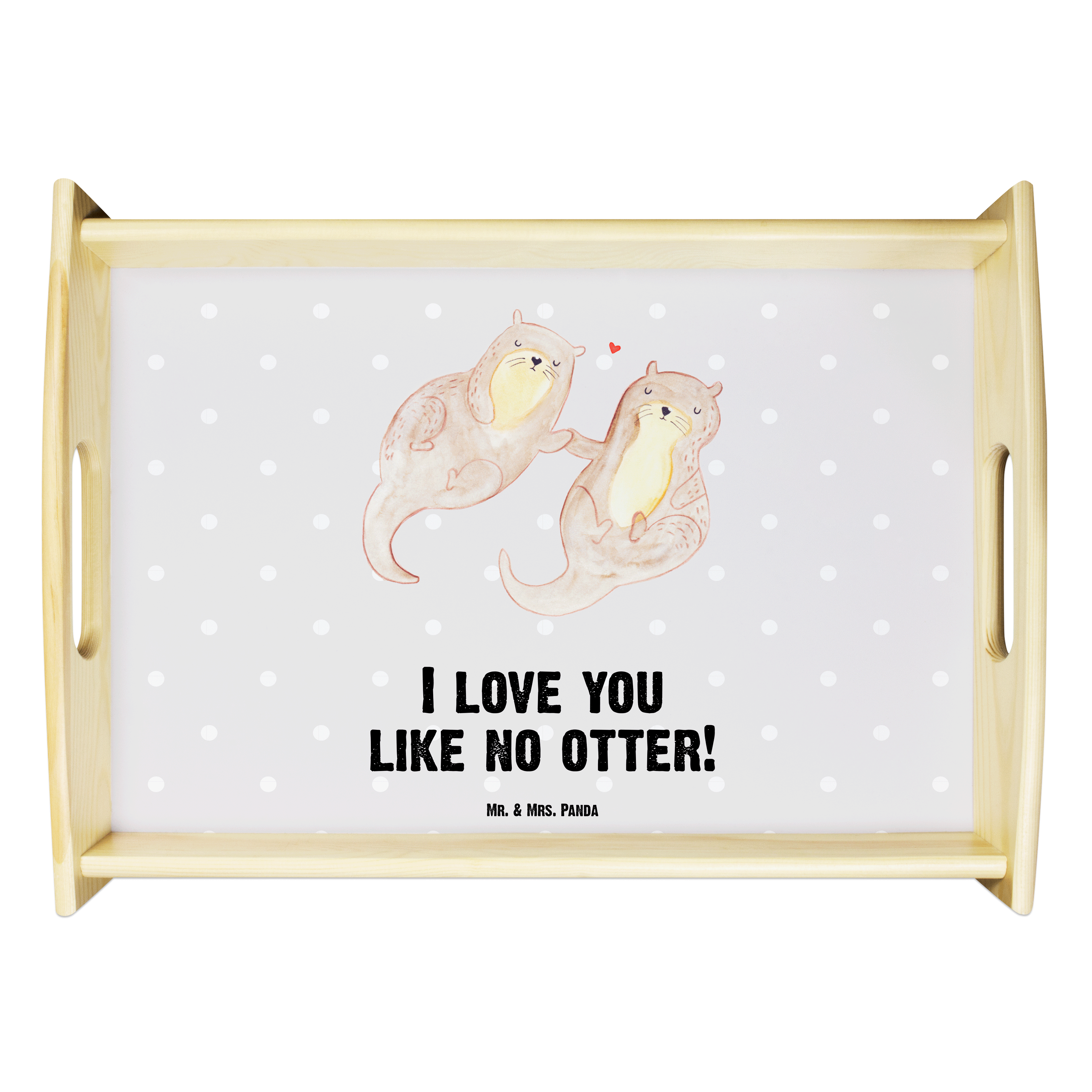 Serviertablett Otter händchenhaltend - mit Spruch - Grau Pastell