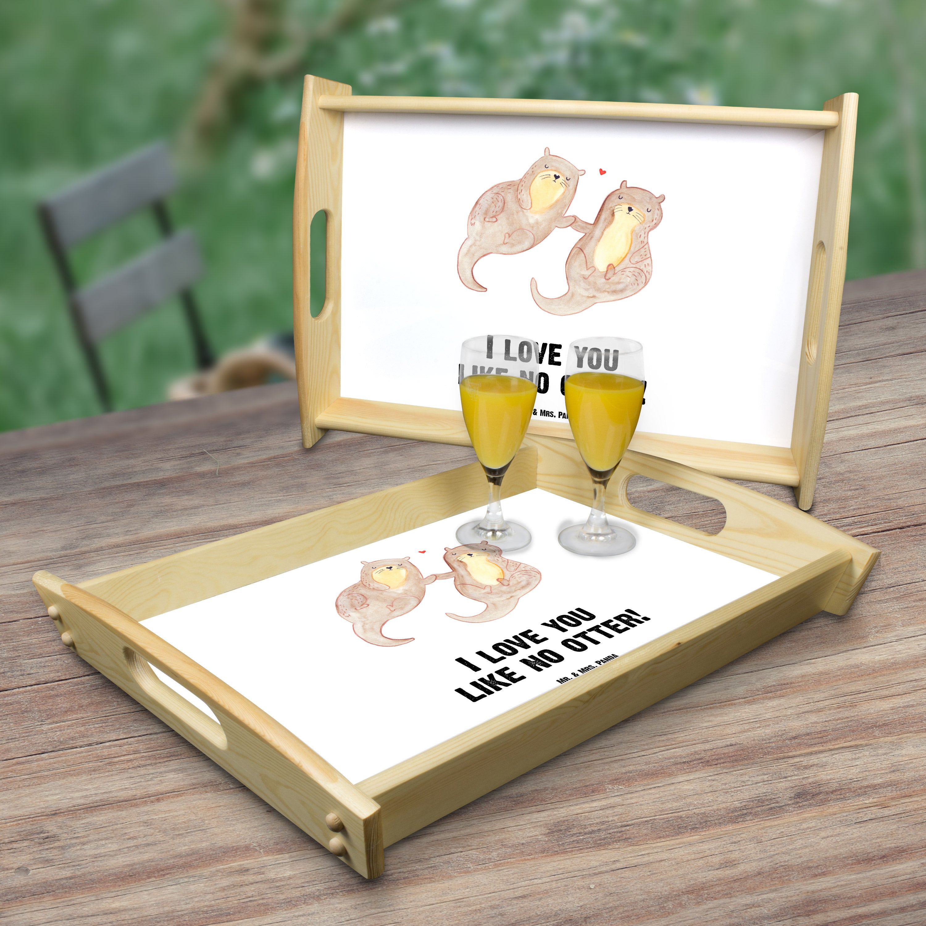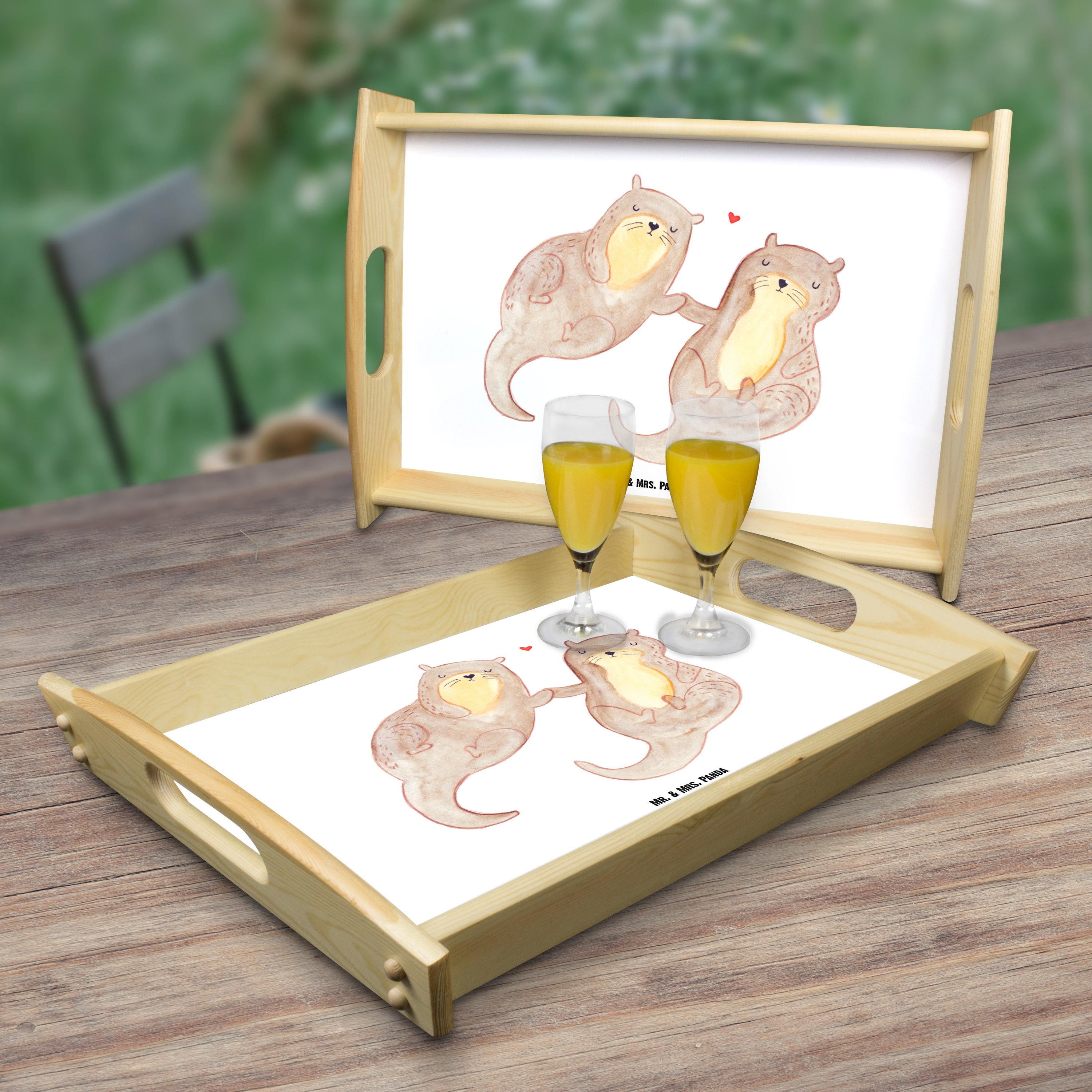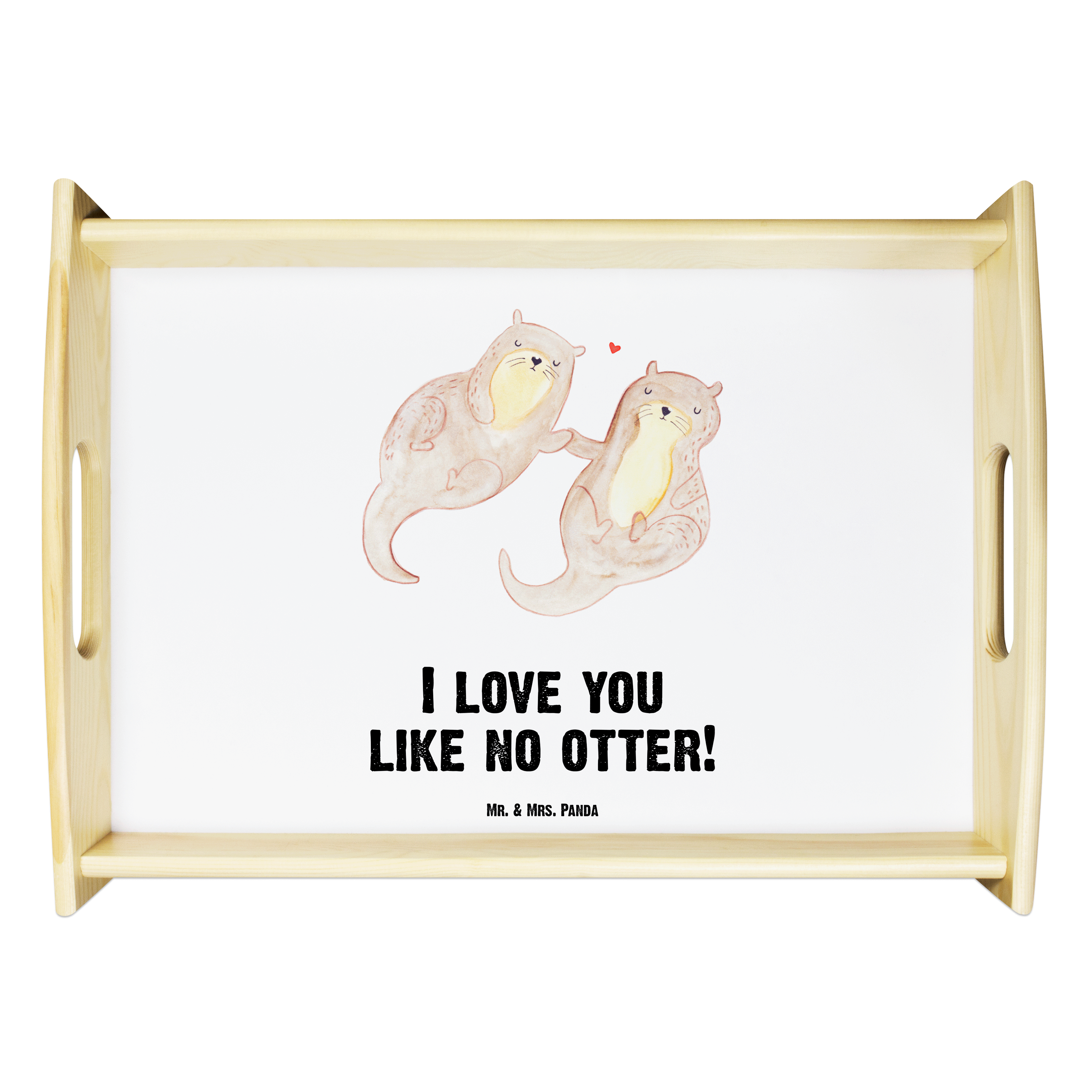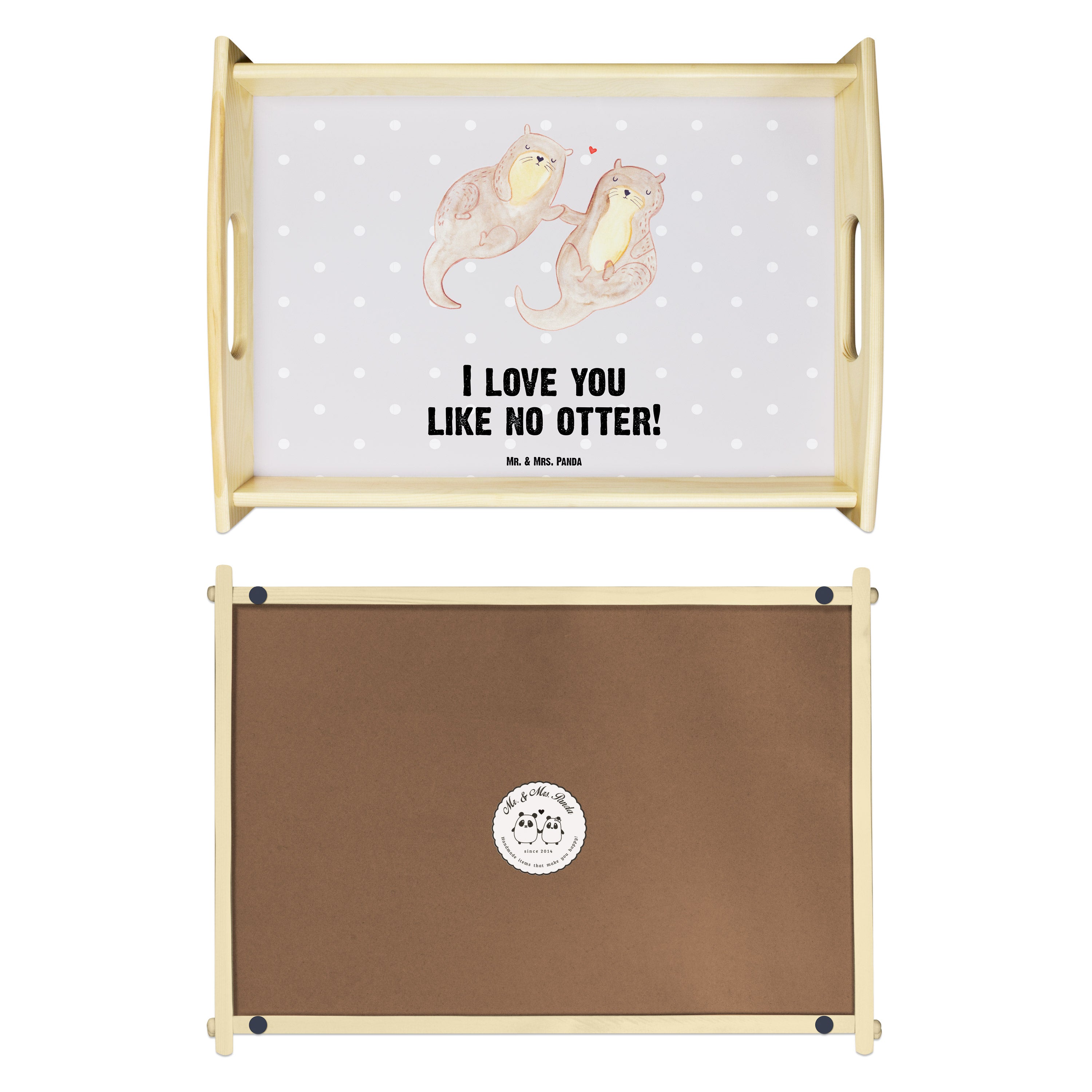 Serviertablett Otter händchenhaltend - mit Spruch - Grau Pastell