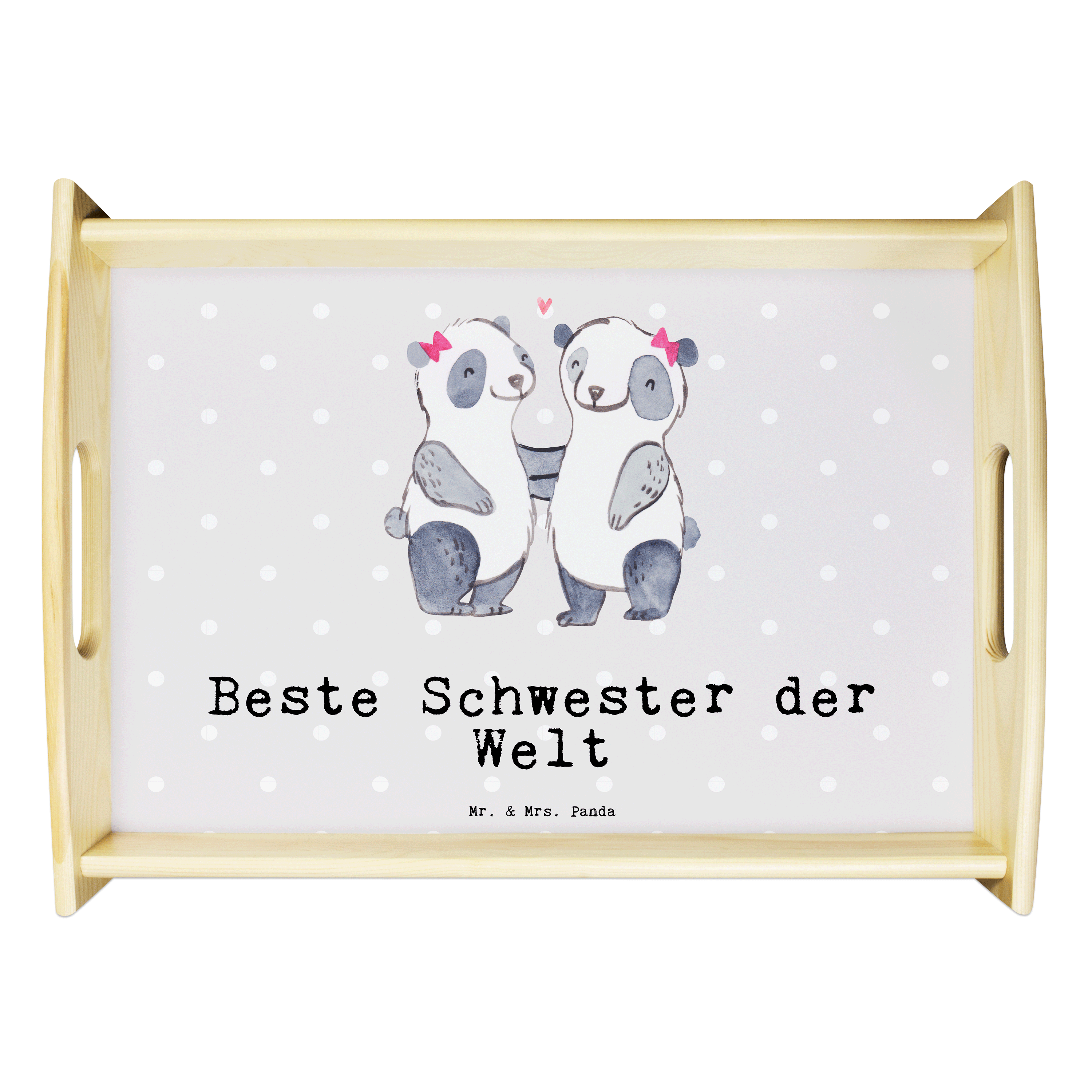 Serviertablett Panda Beste Schwester der Welt - Grau Pastell