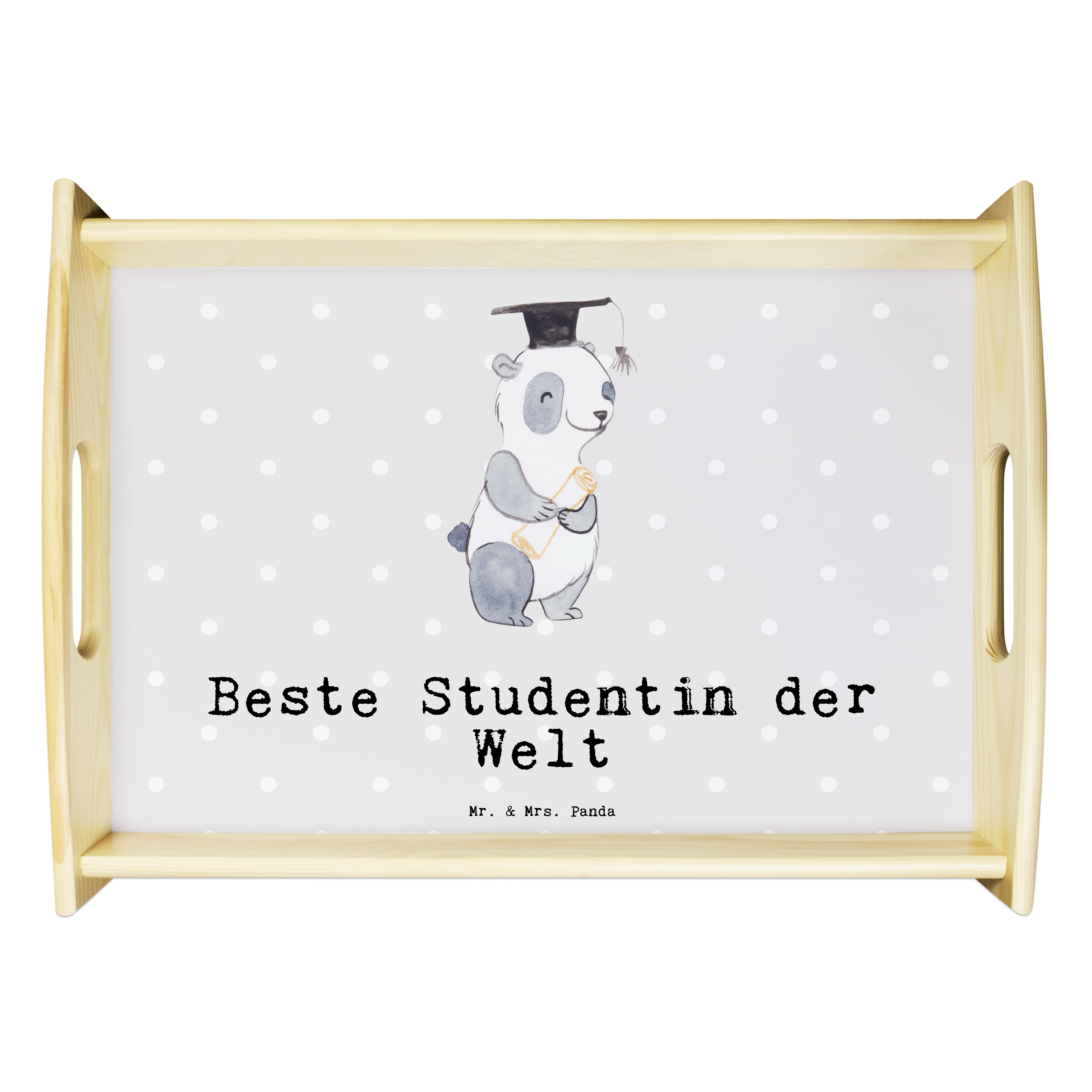 Serviertablett Panda Beste Studentin der Welt - Grau Pastell