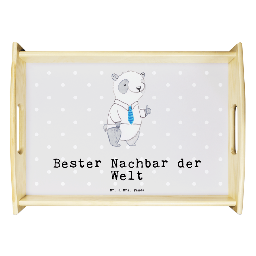 Serviertablett Panda Bester Nachbar der Welt - Grau Pastell