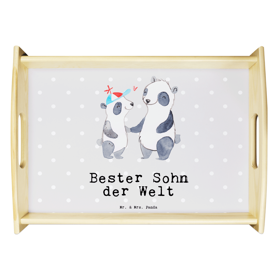 Serviertablett Panda Bester Sohn der Welt - Grau Pastell