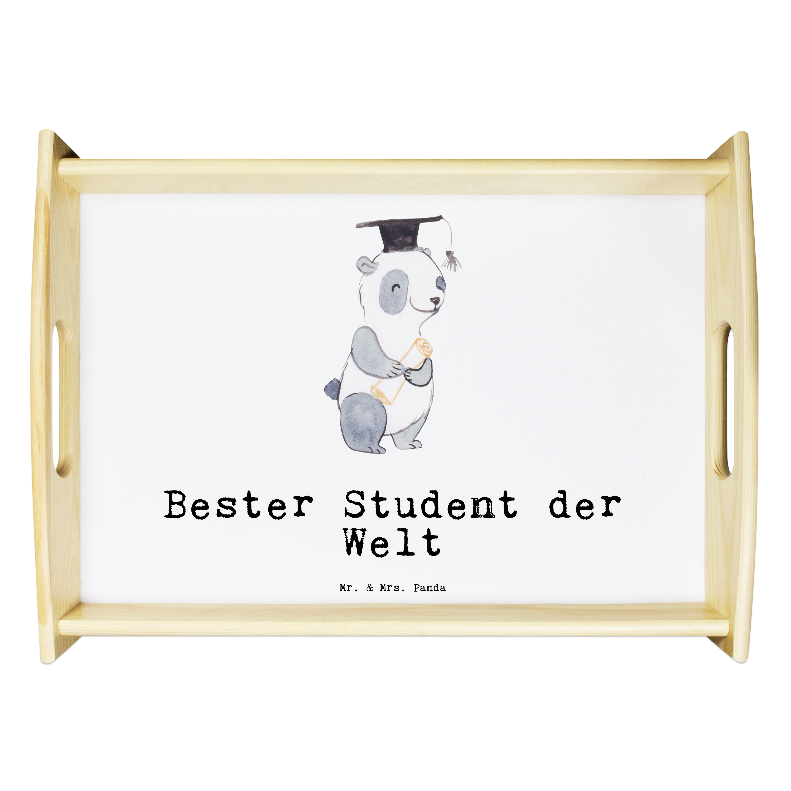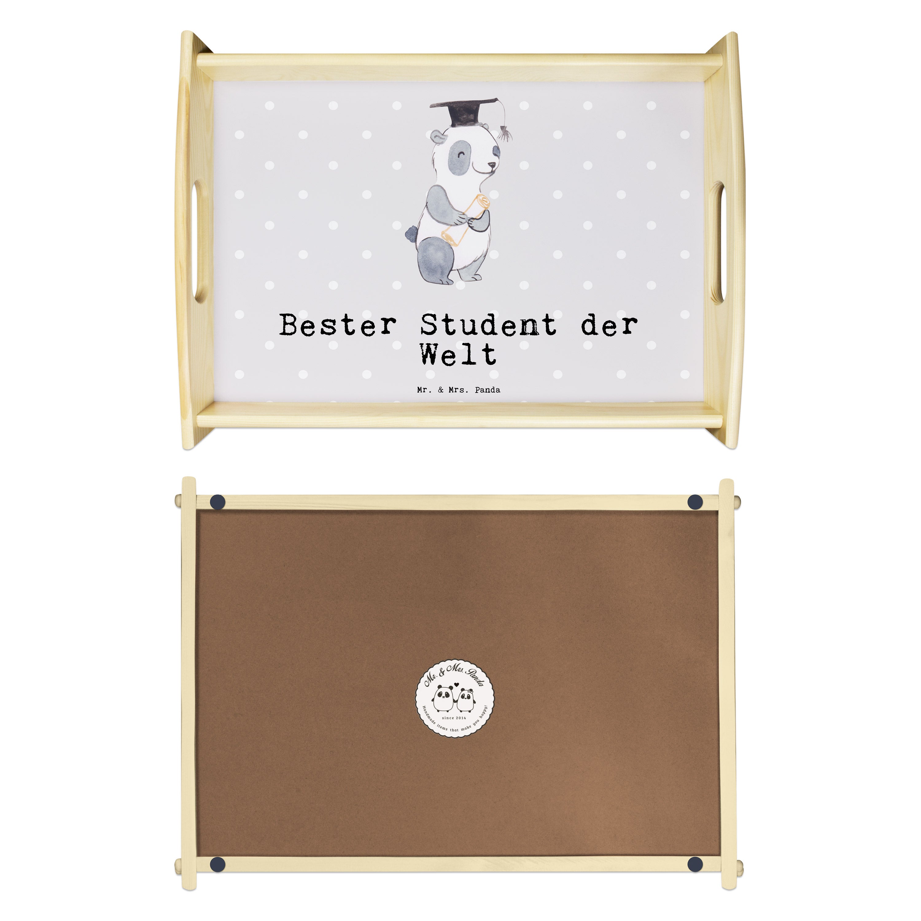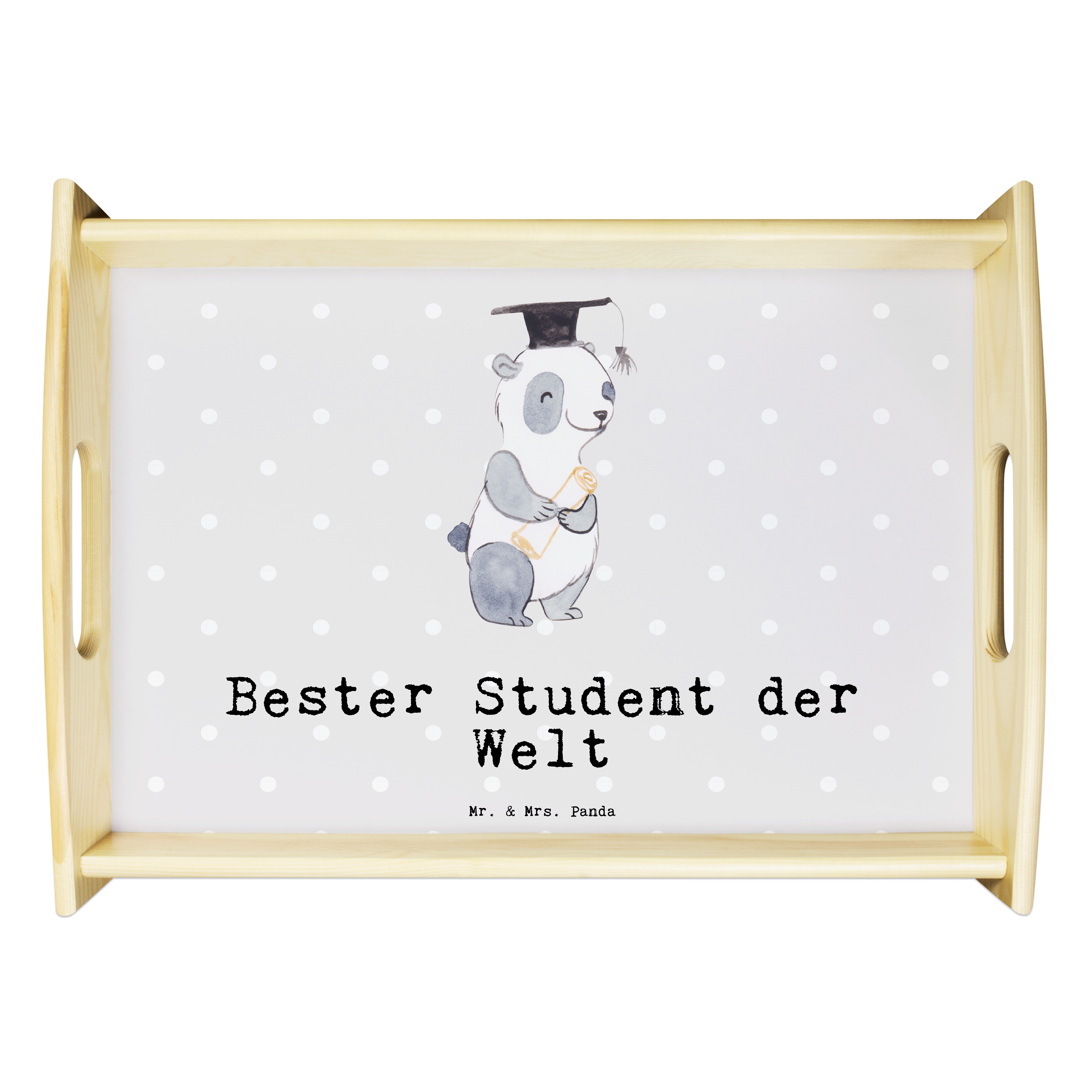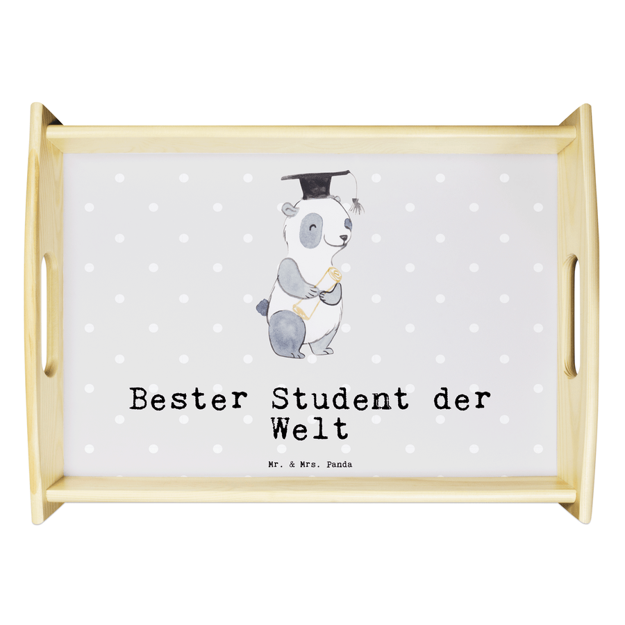 Serviertablett Panda Bester Student der Welt - Grau Pastell